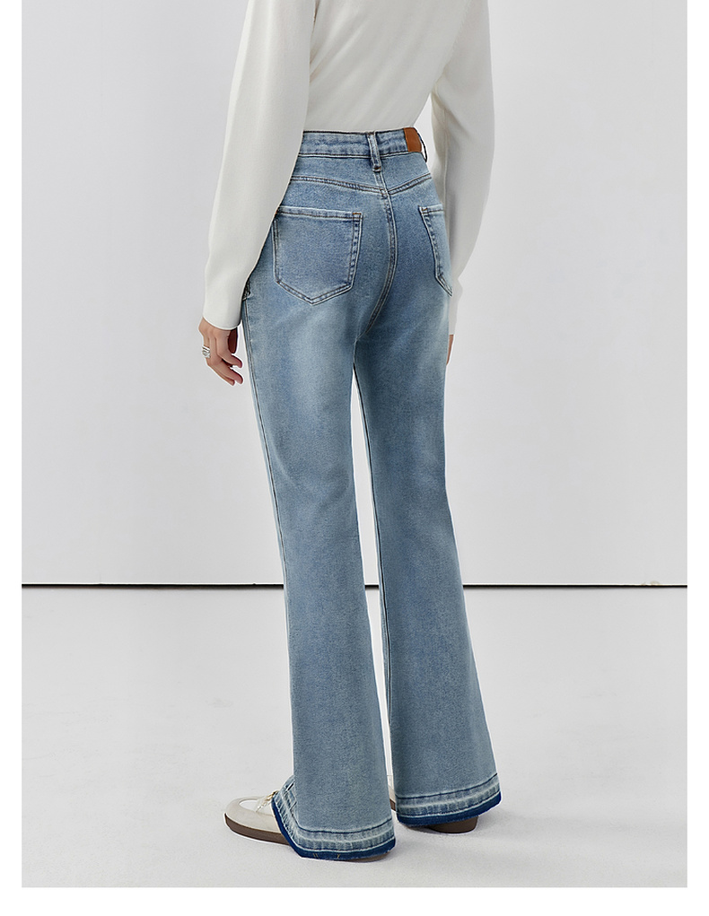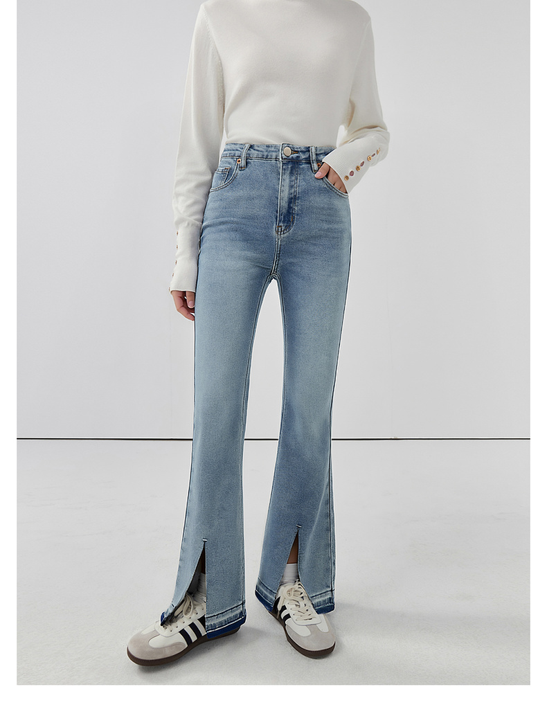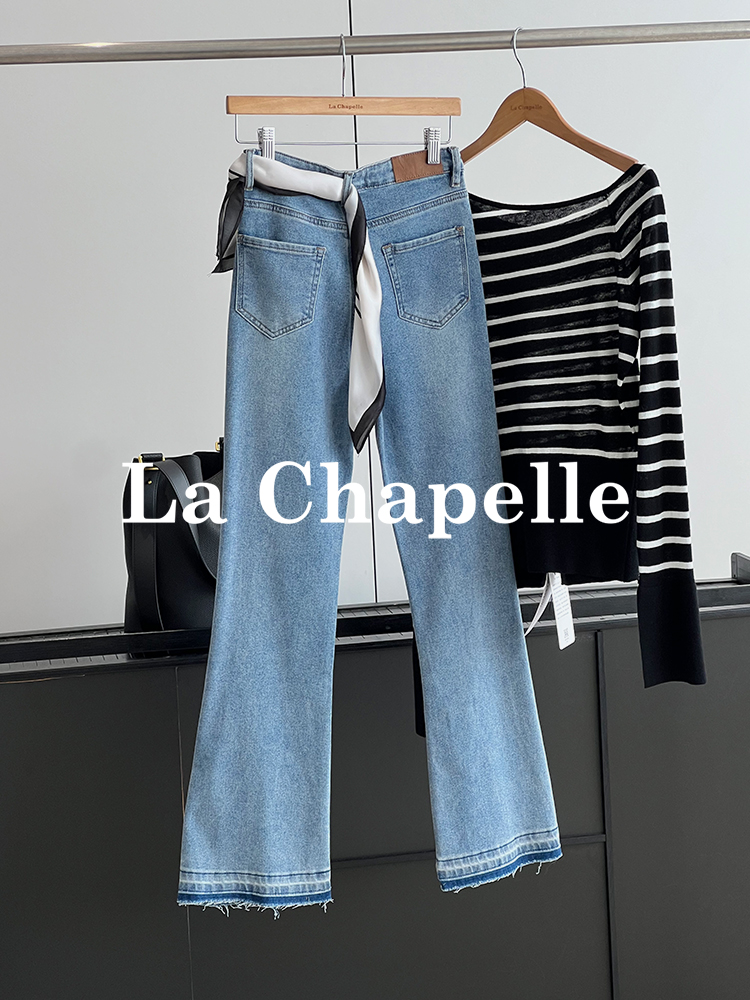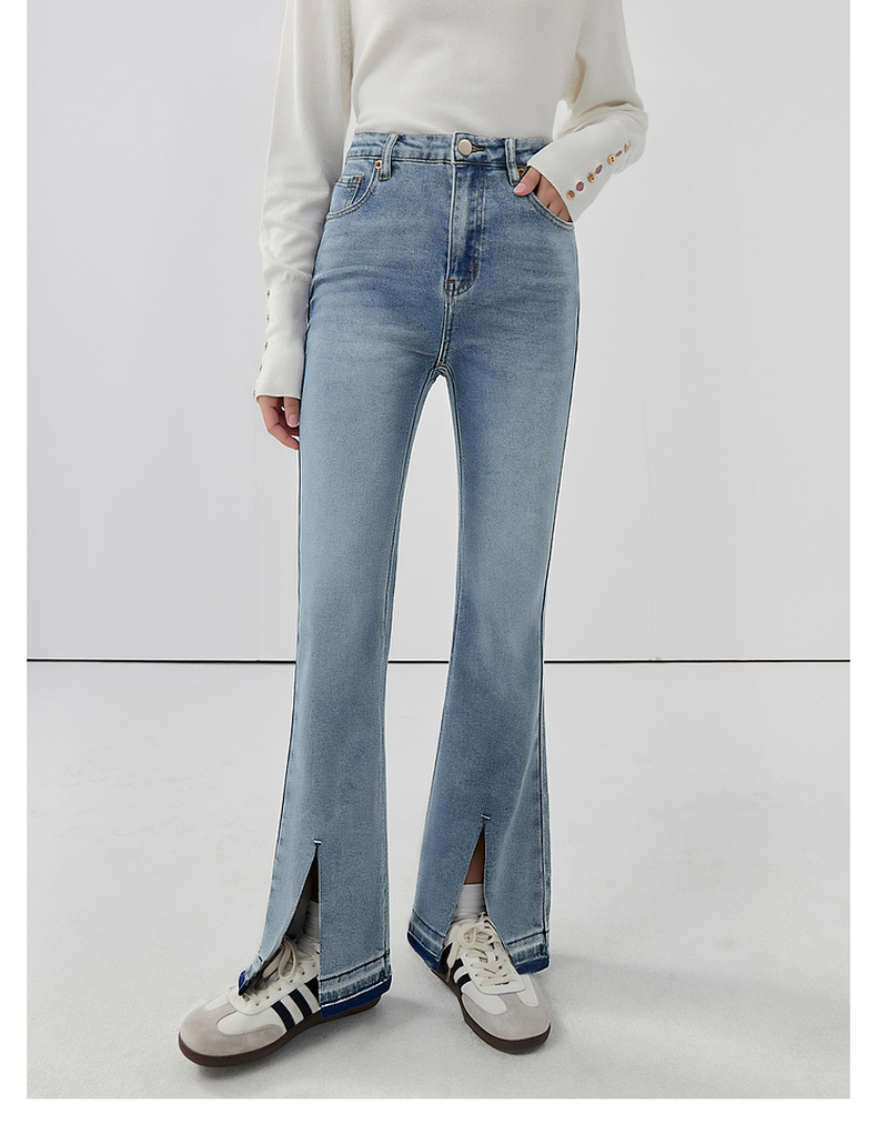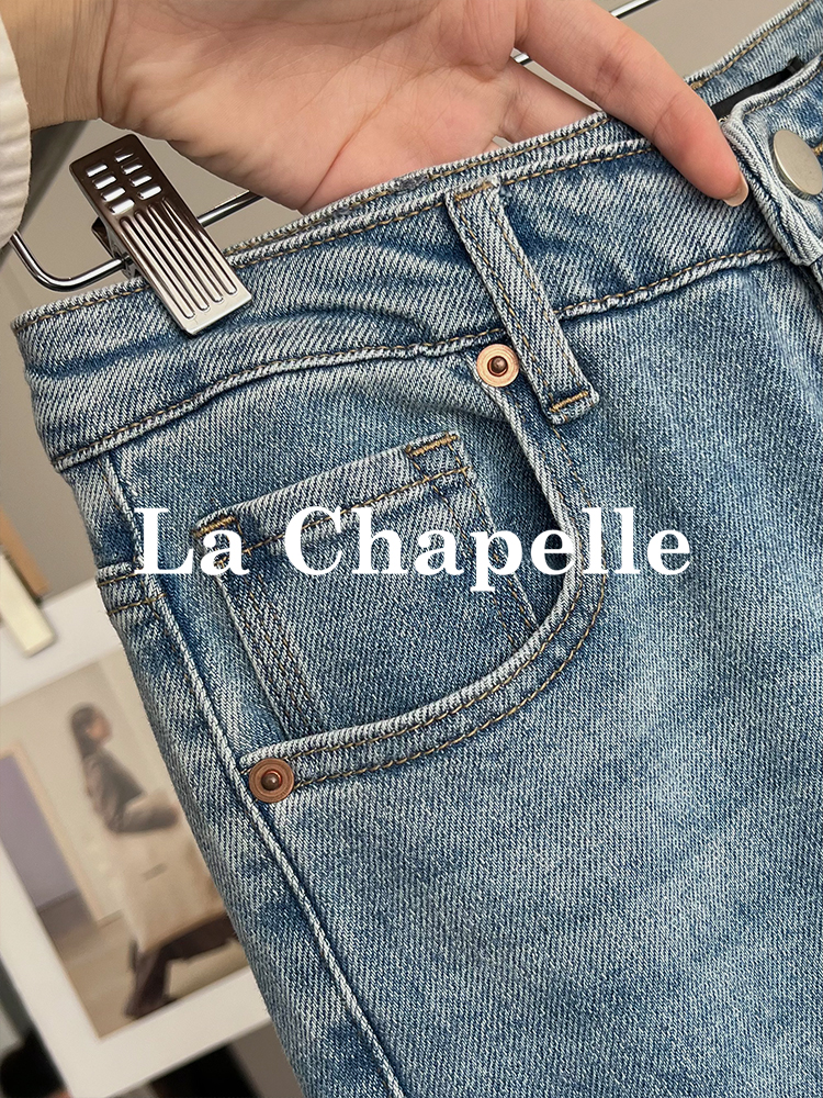 会员福利【造型感满分!时髦开叉】拉夏贝尔/La Chapelle高腰显瘦修身长裤弹力前开叉微喇牛仔裤