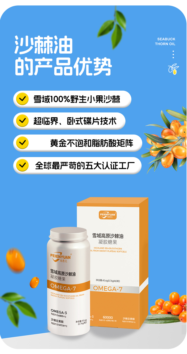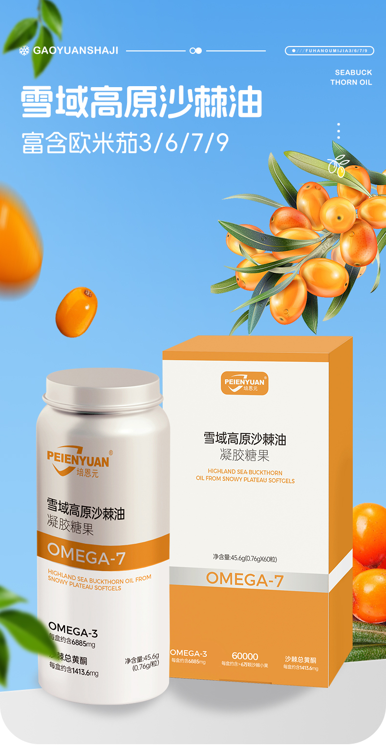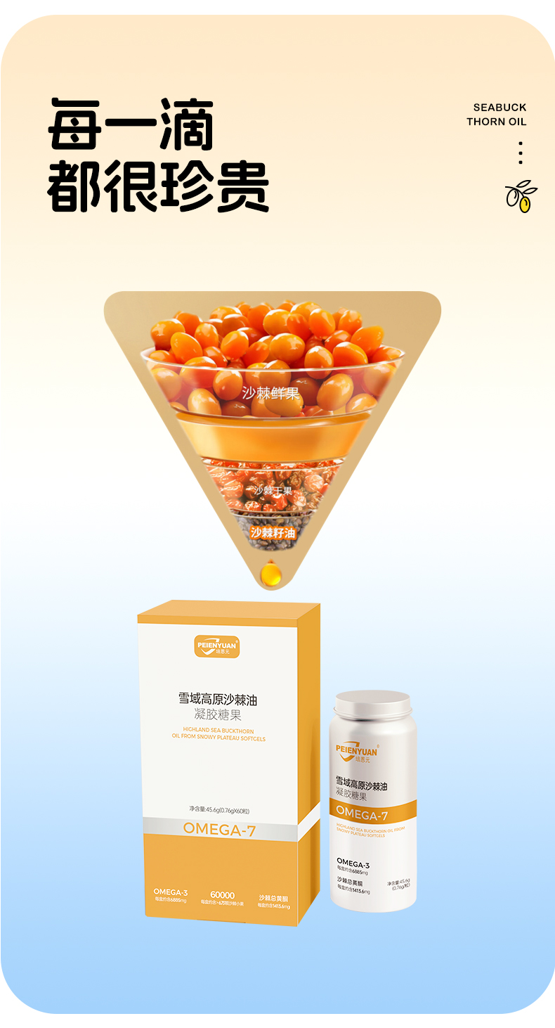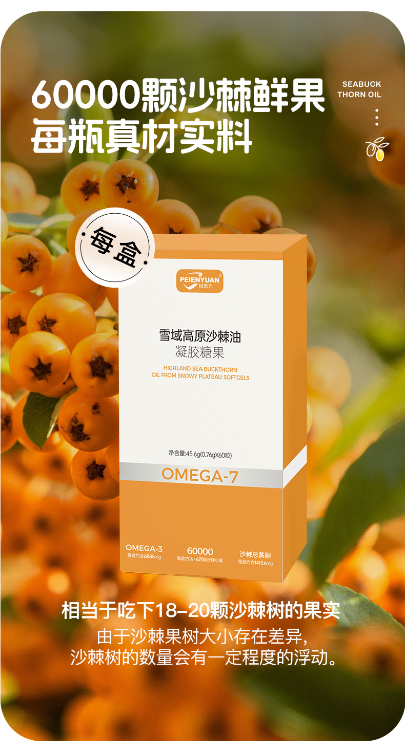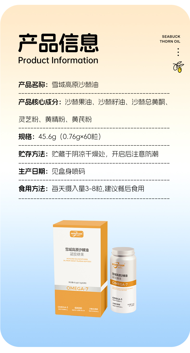 培恩元雪域高原沙棘油凝胶糖果 45.6g(0.76g*60粒)~