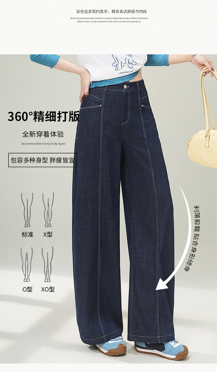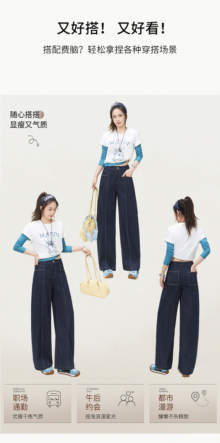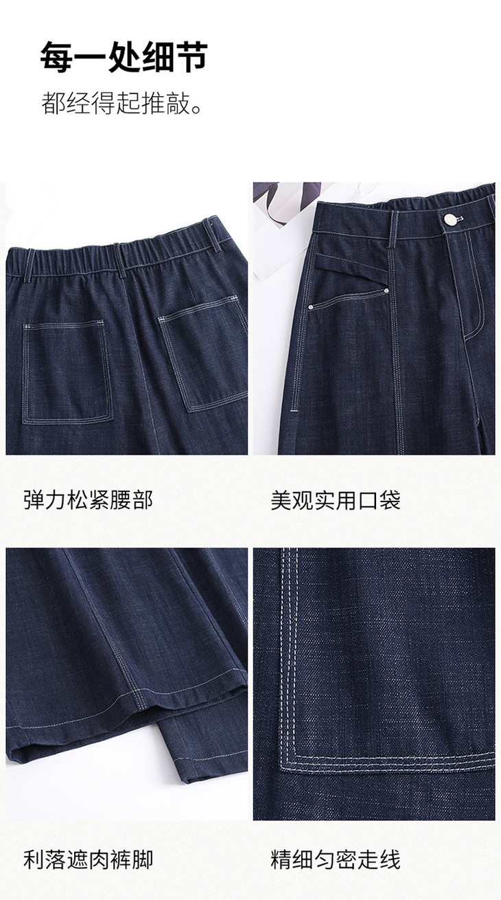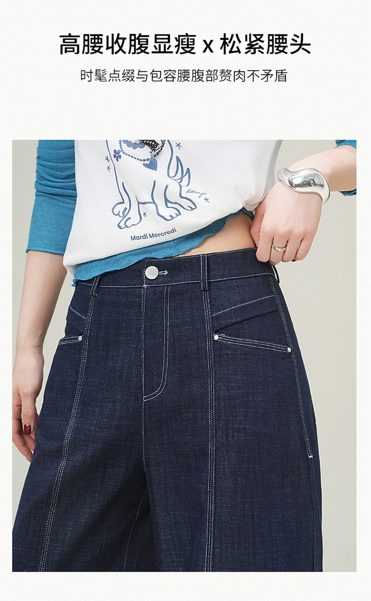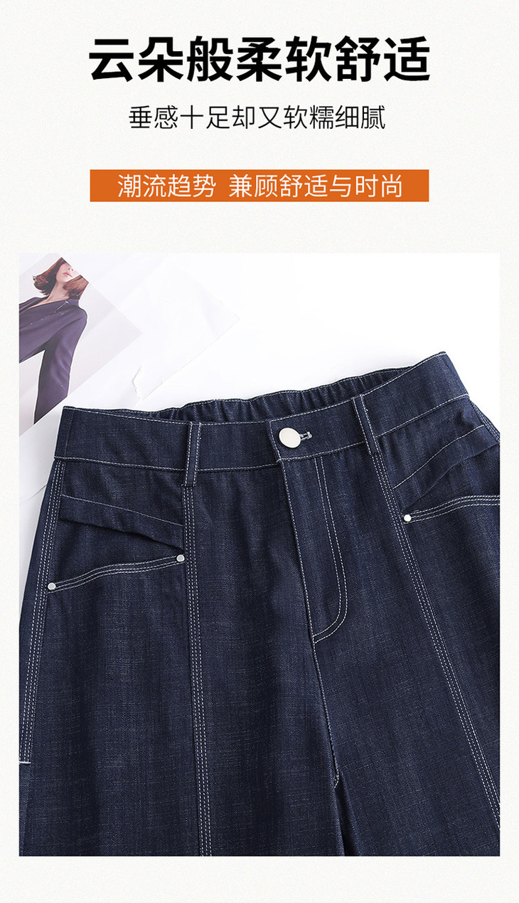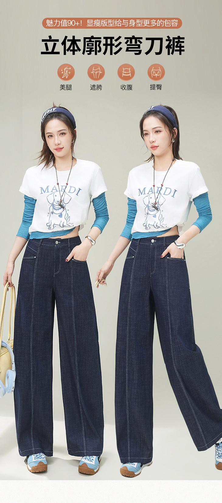 蓝色牛仔弯刀裤阔朋裤,时尚女装宽松直筒裤MYX-XBMY-26-9617-Y