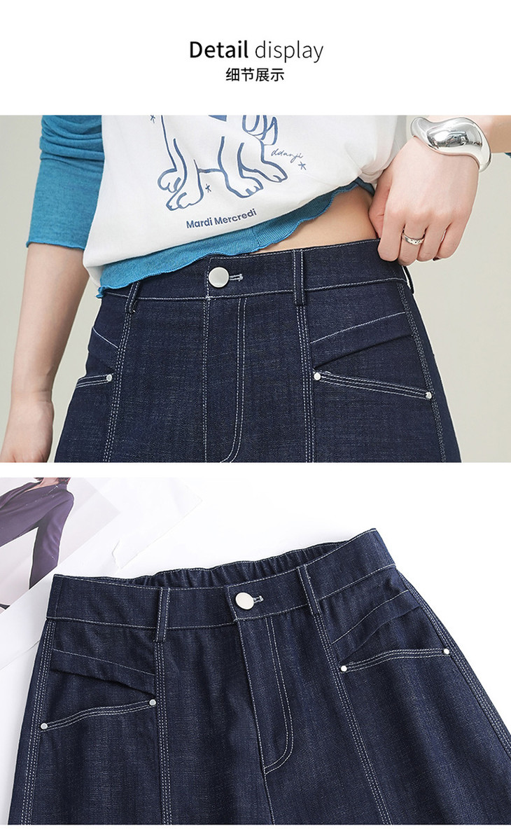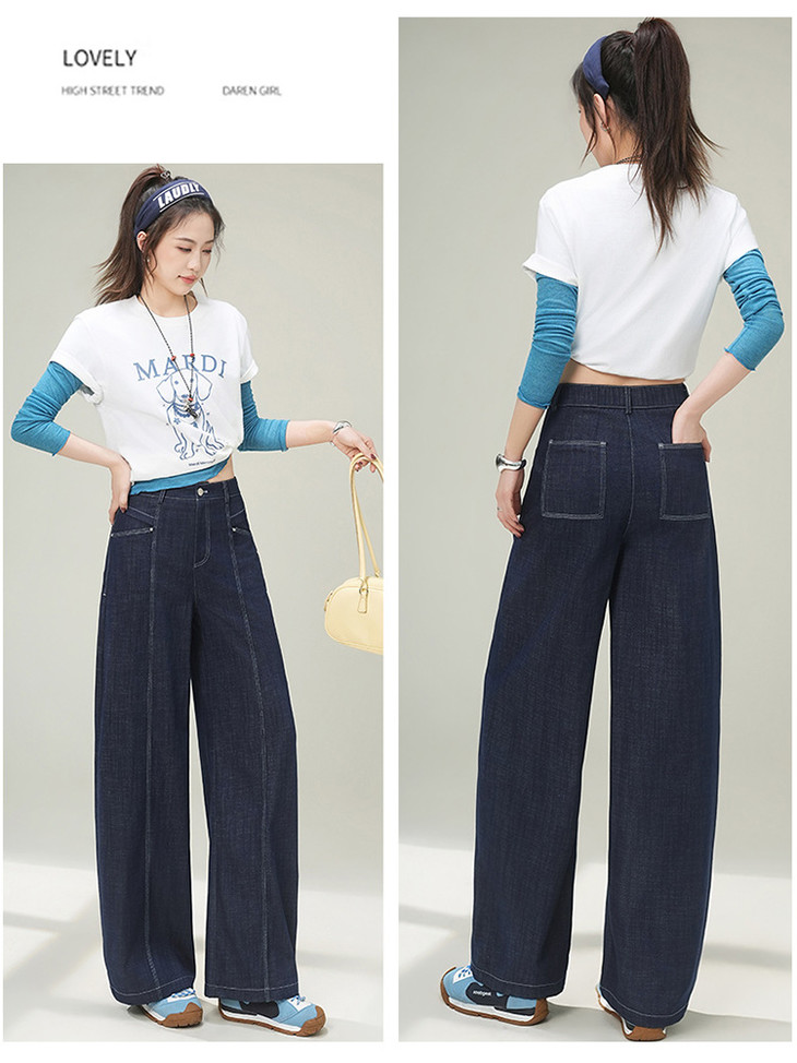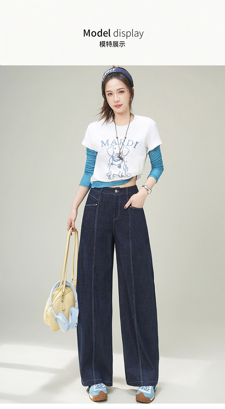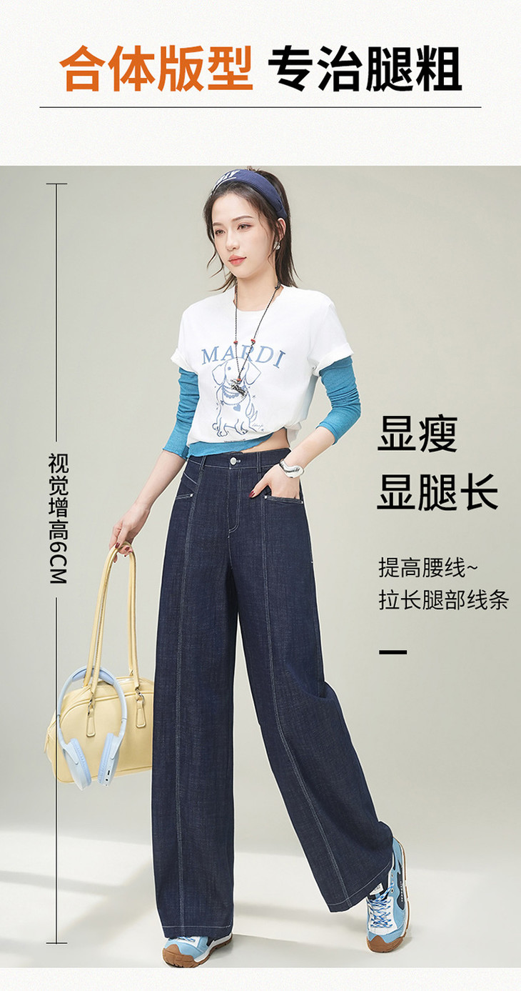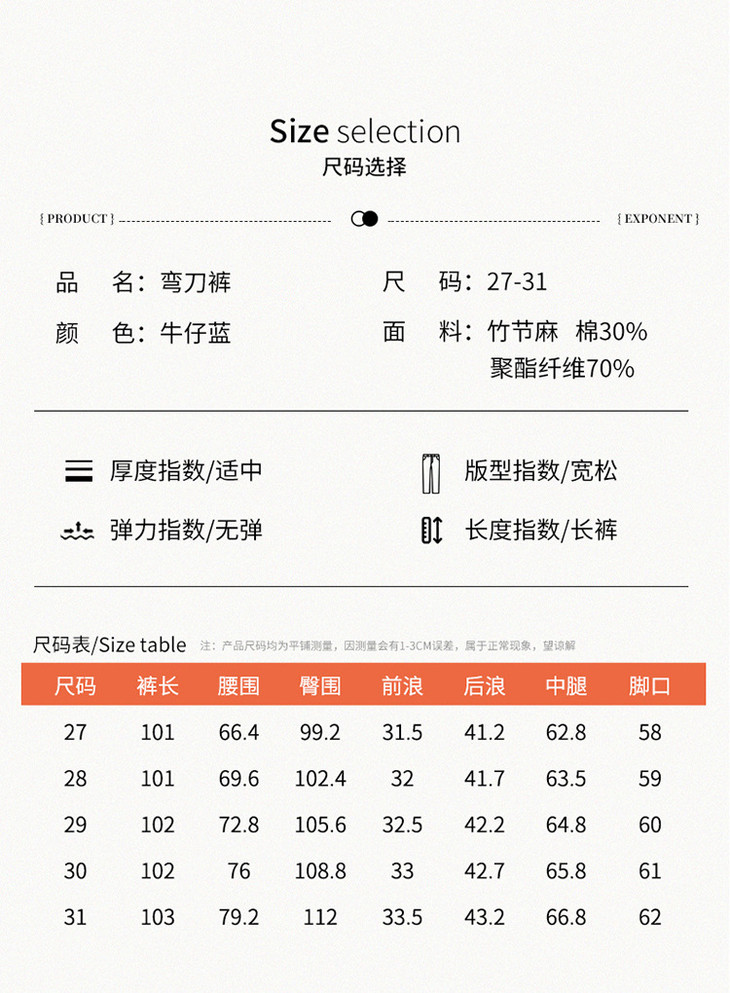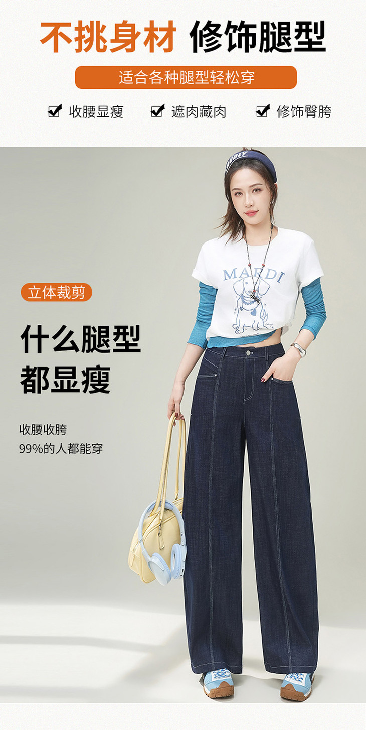 蓝色牛仔弯刀裤阔朋裤,时尚女装宽松直筒裤MYX-XBMY-26-9617-Y