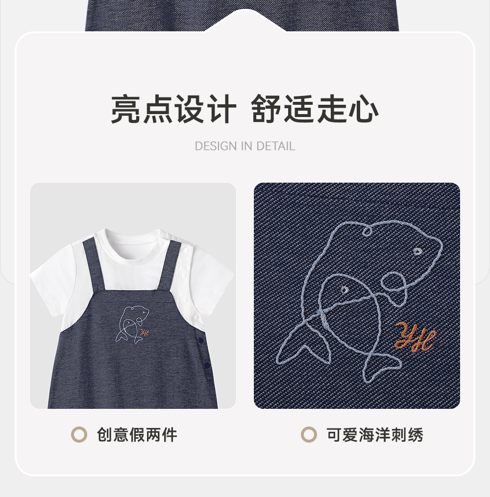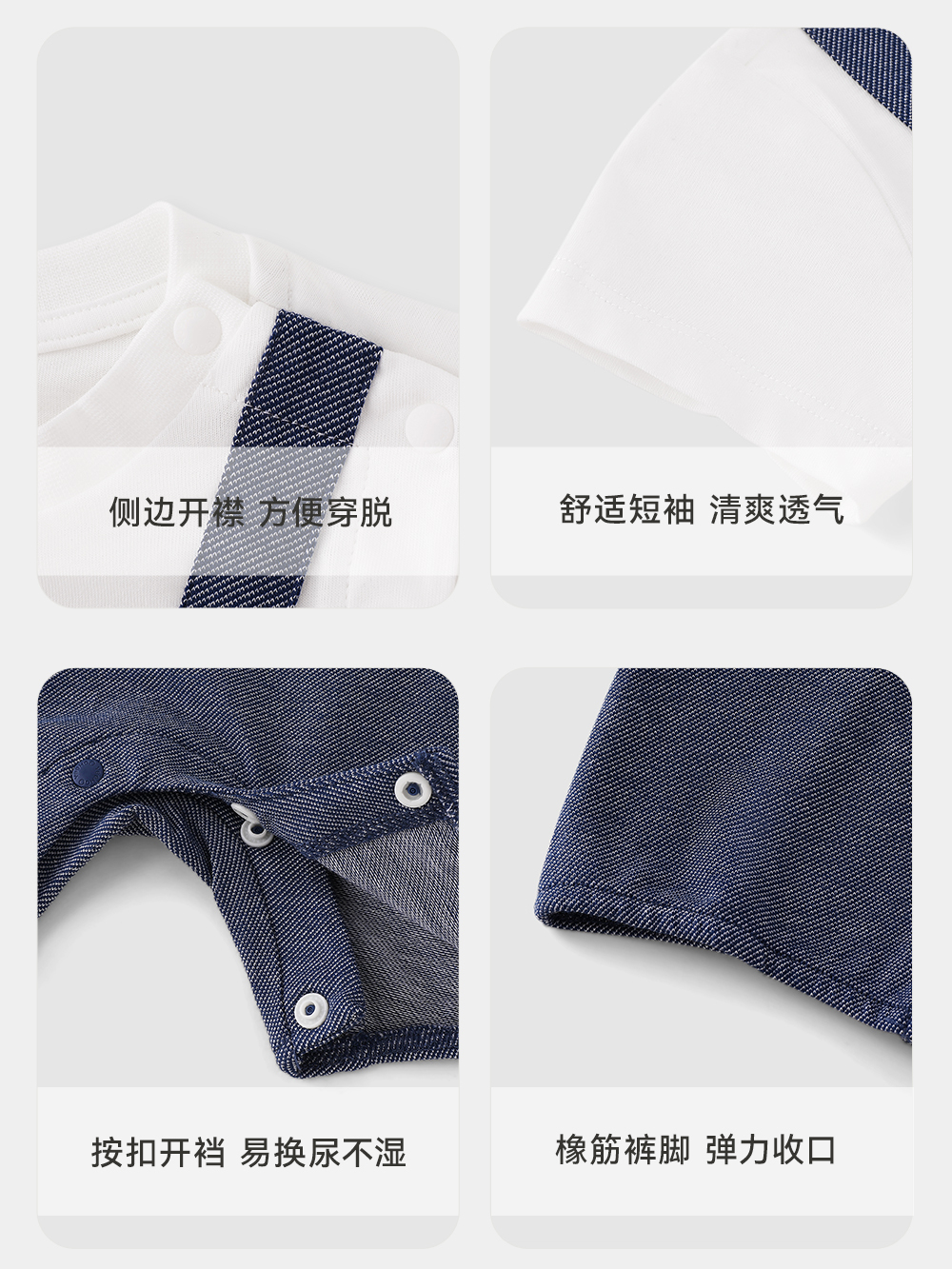 [商场同款]英氏童装连体衣透气短袖男童爬服新款婴儿衣服