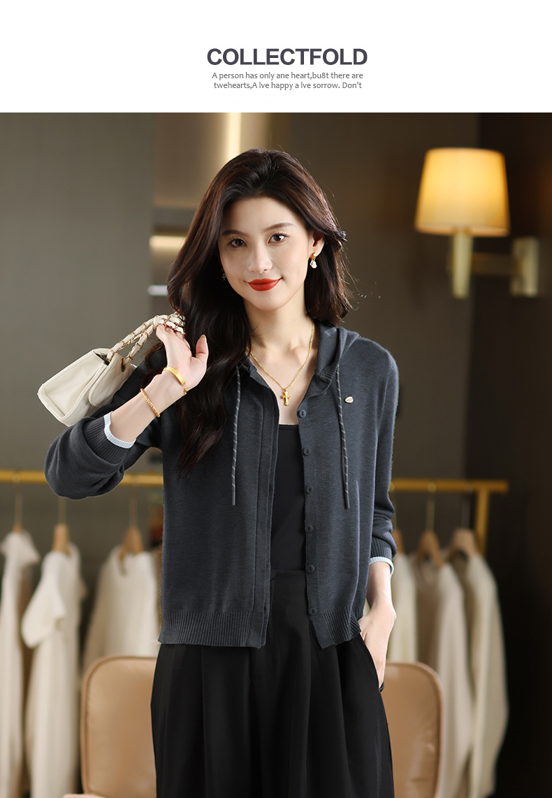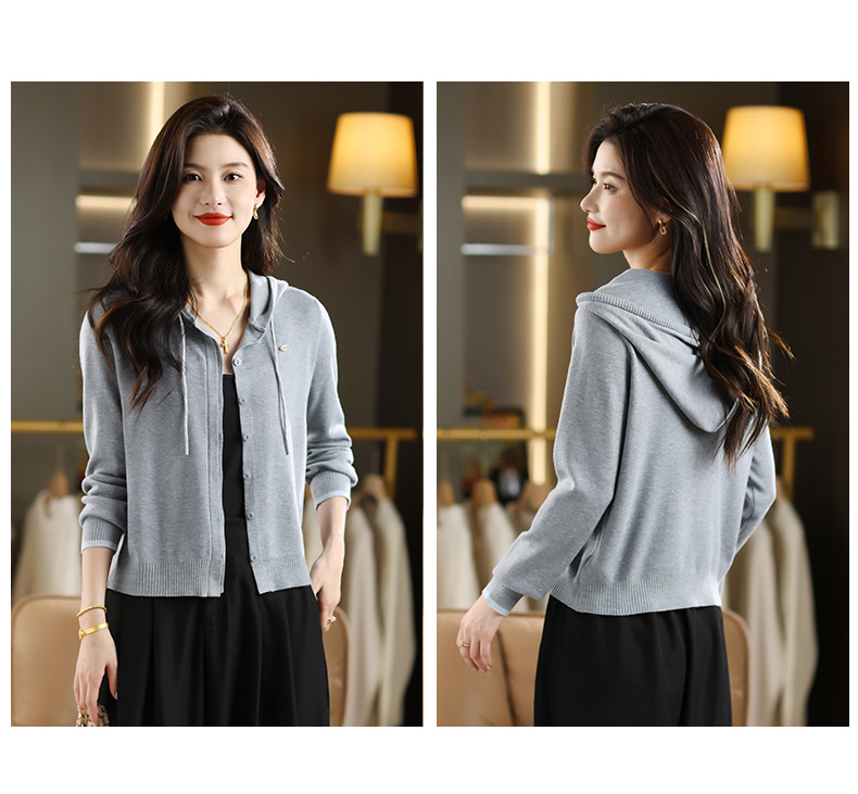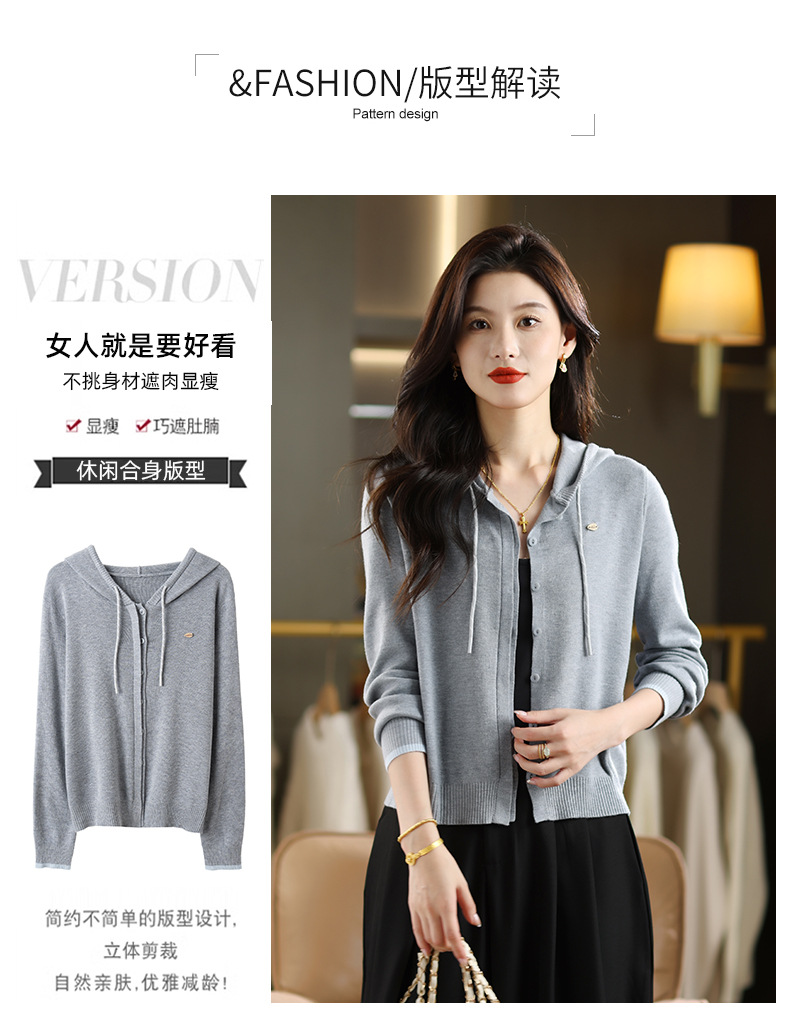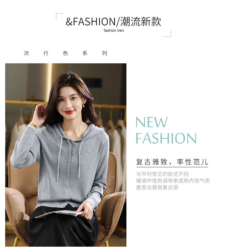 CC 101-9509慵懒风连帽毛衣开衫拉链针织外套