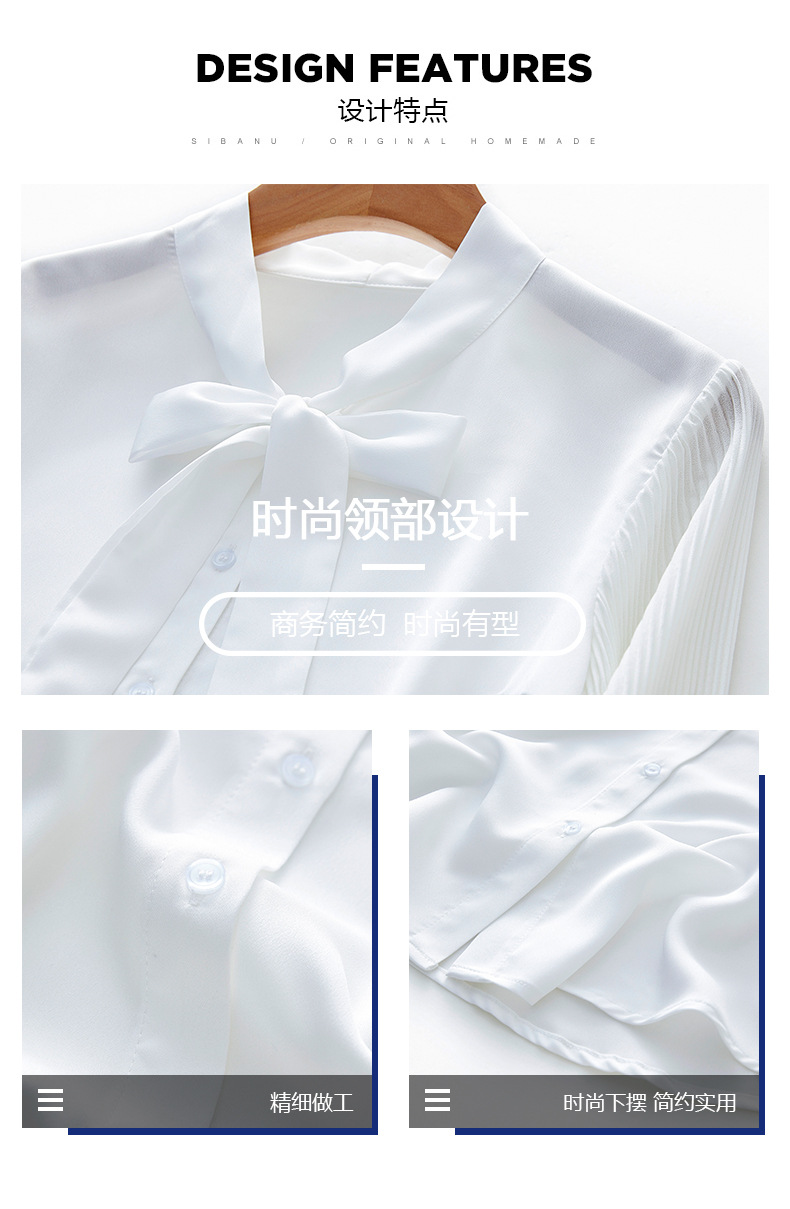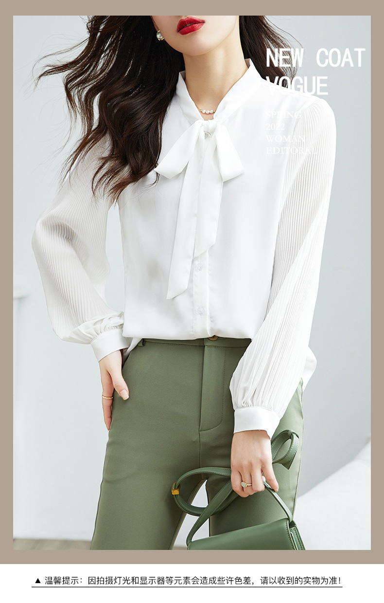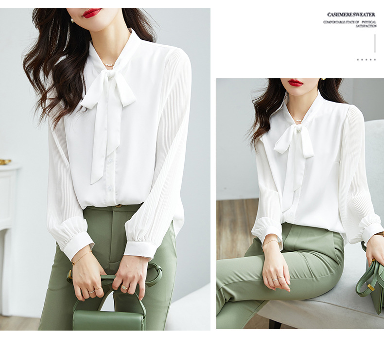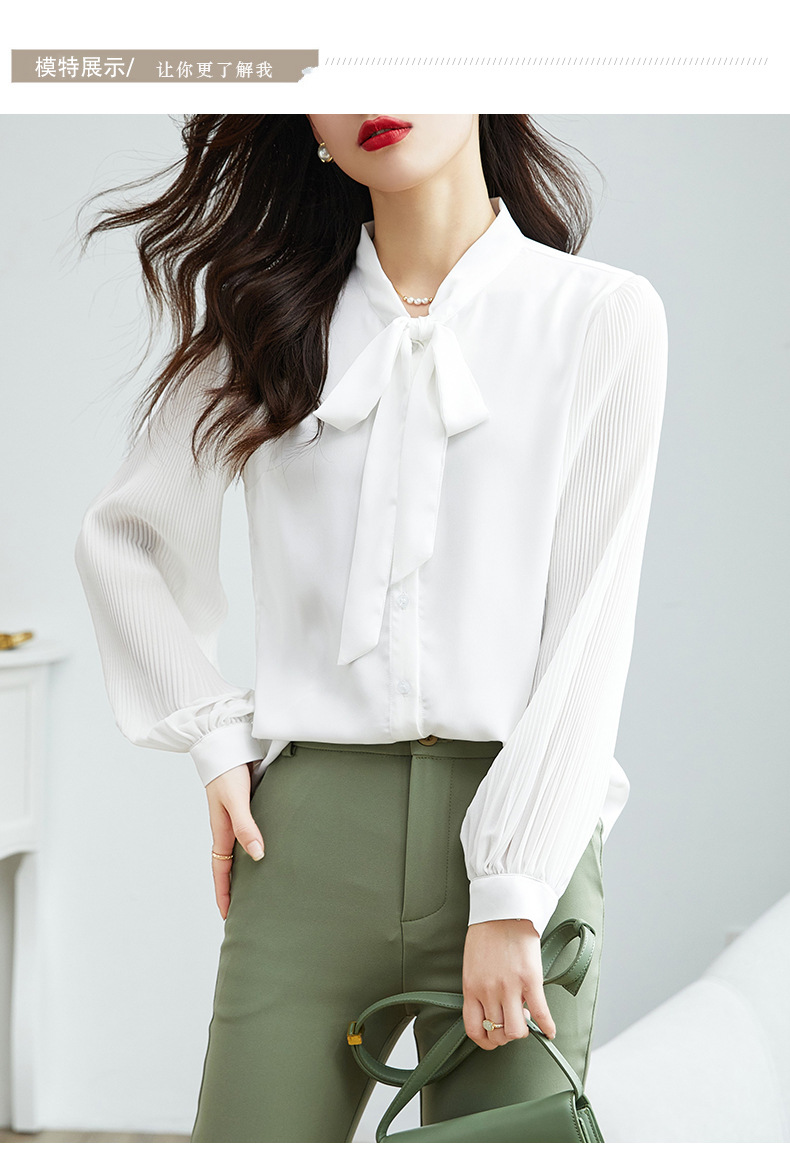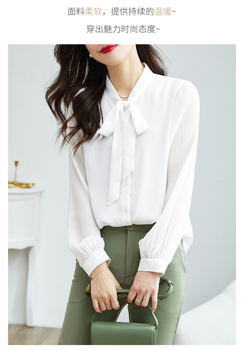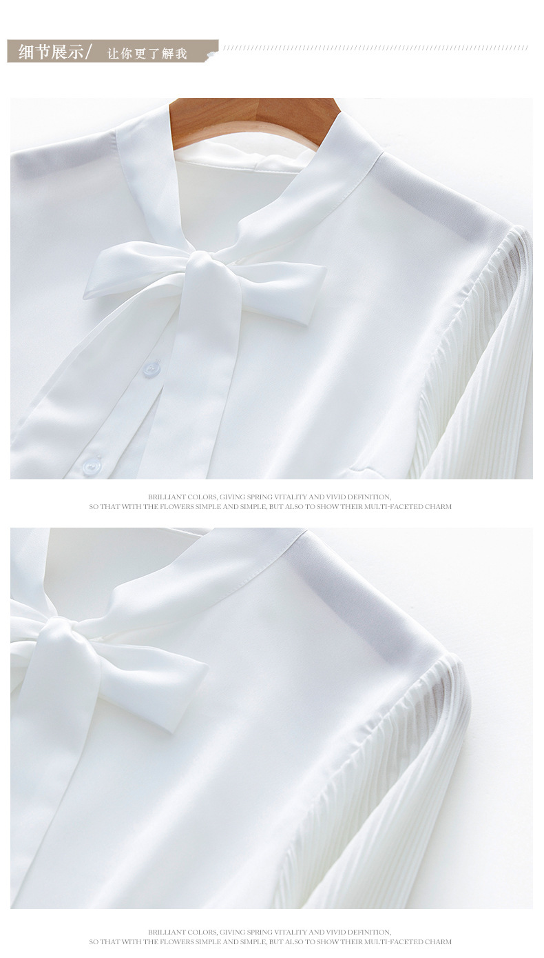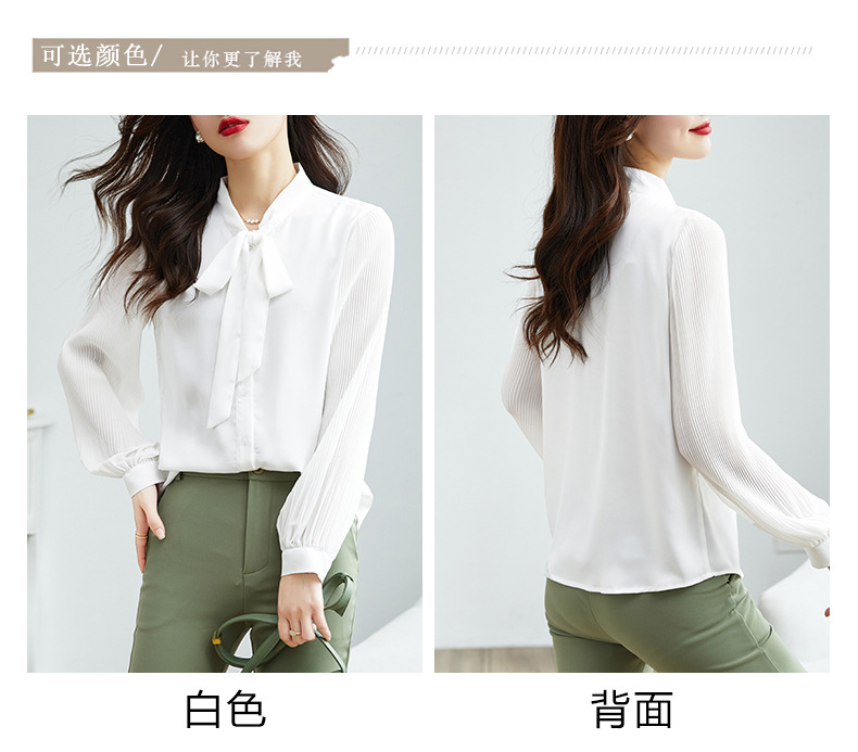 JZYFS109J新款时尚气质休闲蝴蝶结飘带长袖百褶雪纺衬衫