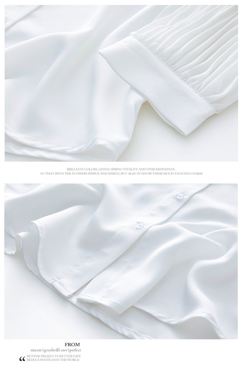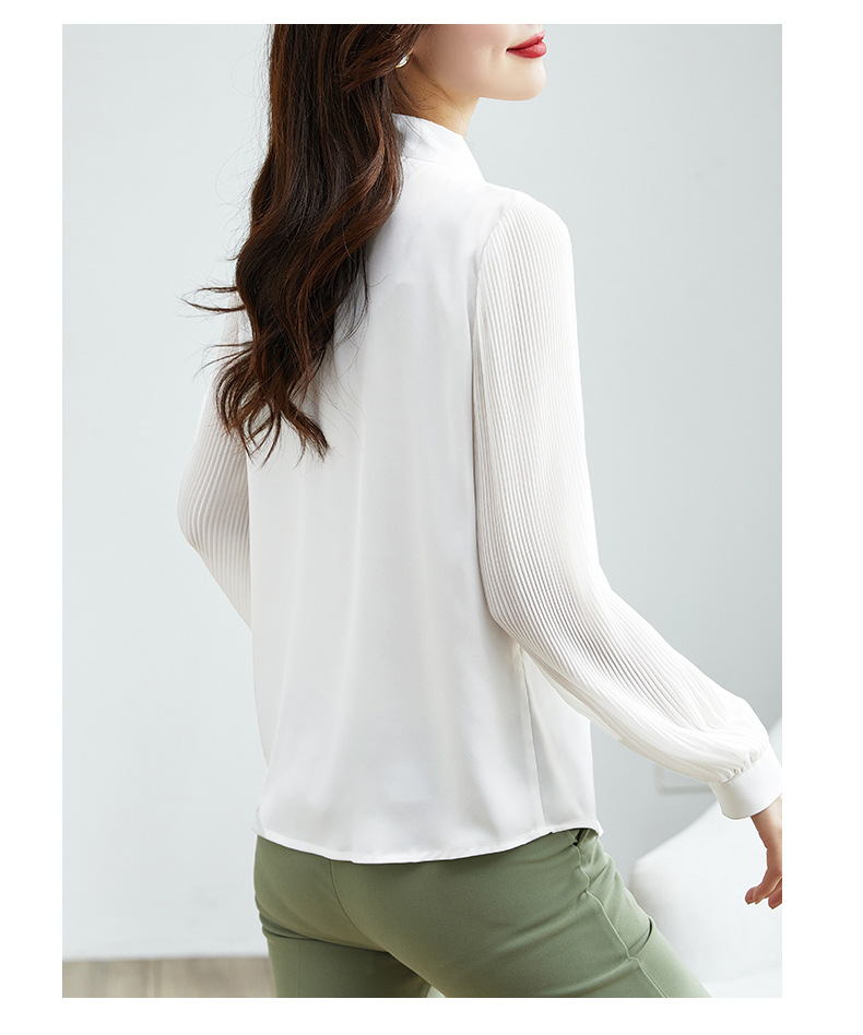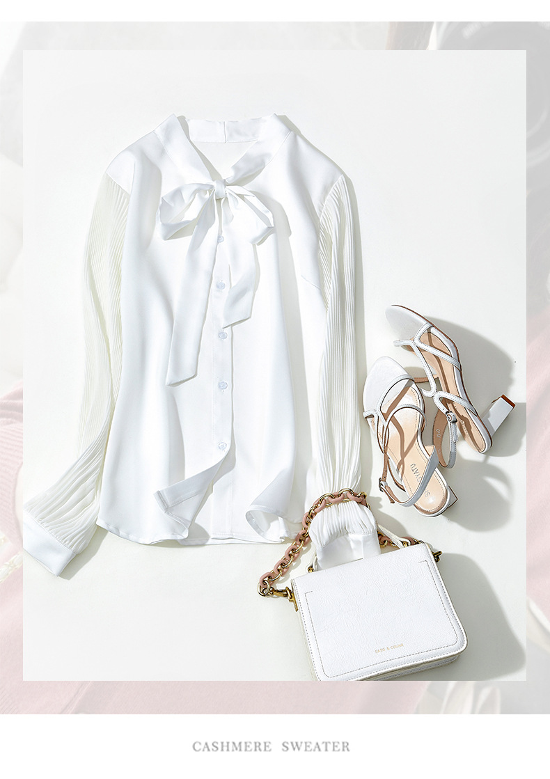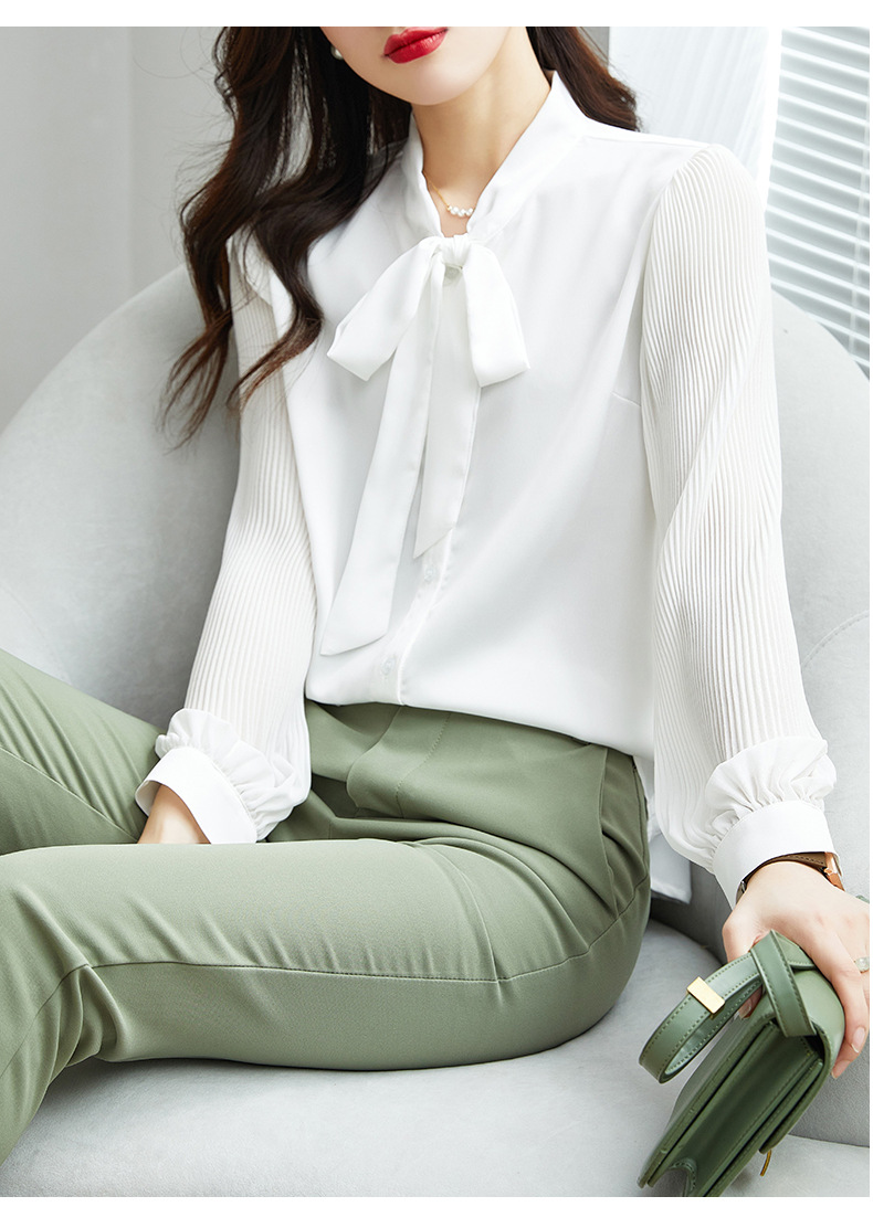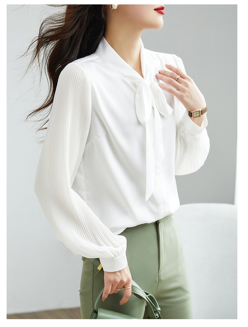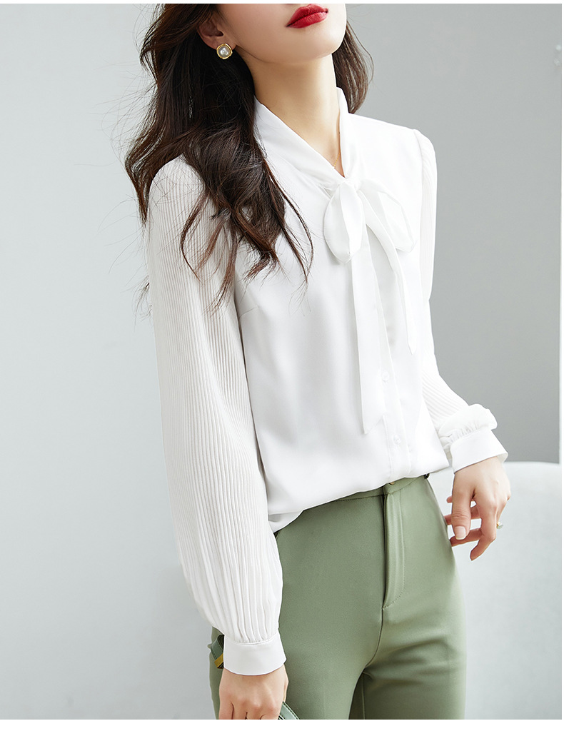 JZYFS109J新款时尚气质休闲蝴蝶结飘带长袖百褶雪纺衬衫