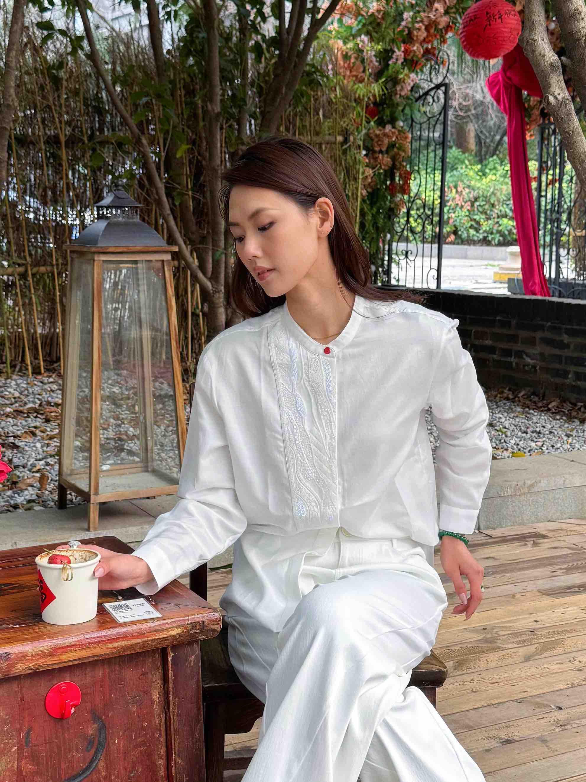 「丝绵中式衬衫 · 领口一点朱砂红」