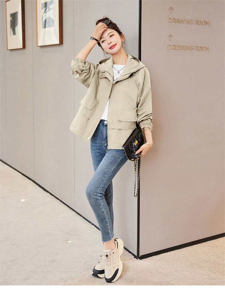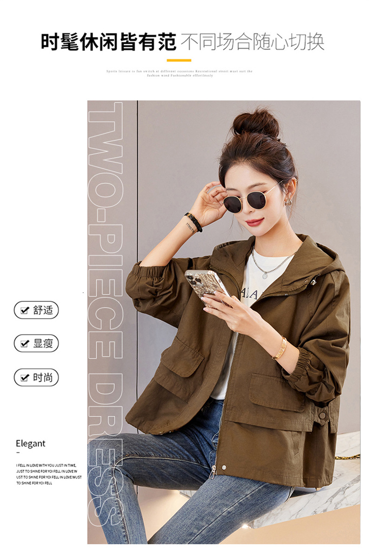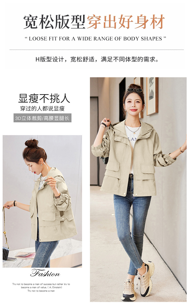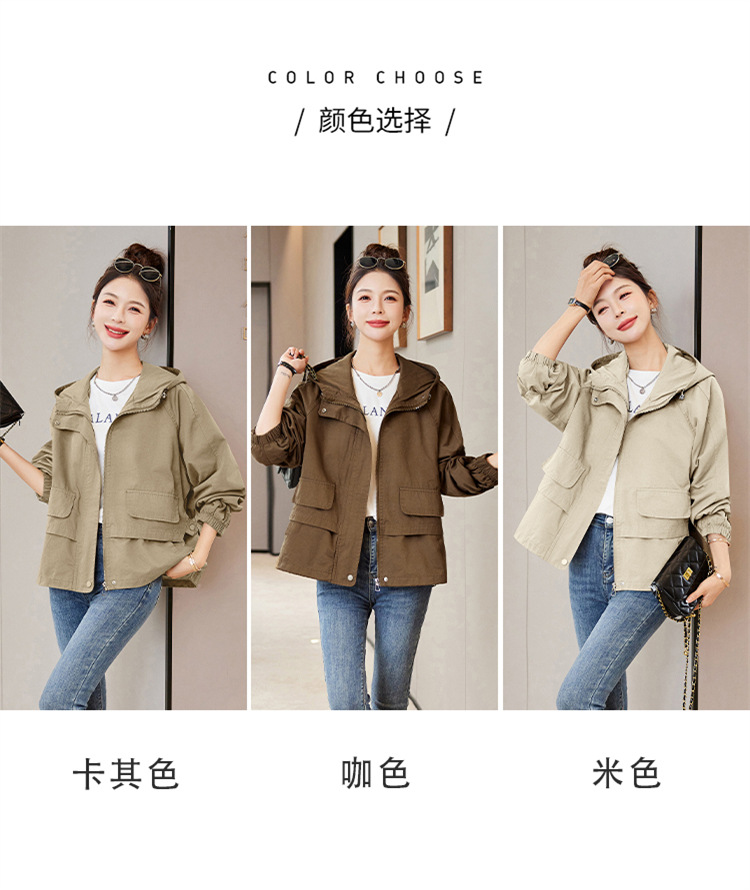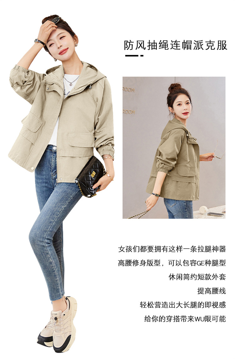 WYA600192025年春季上新气质时尚通勤宽松遮肉显瘦透气连帽纯色外套