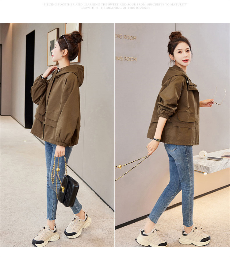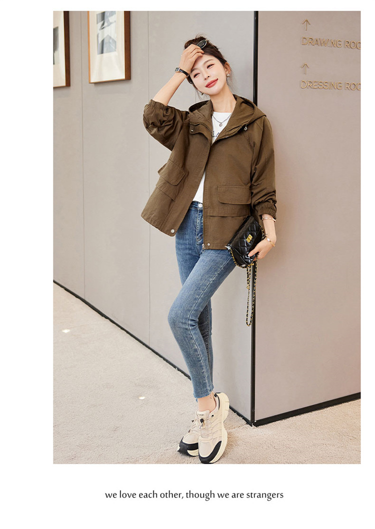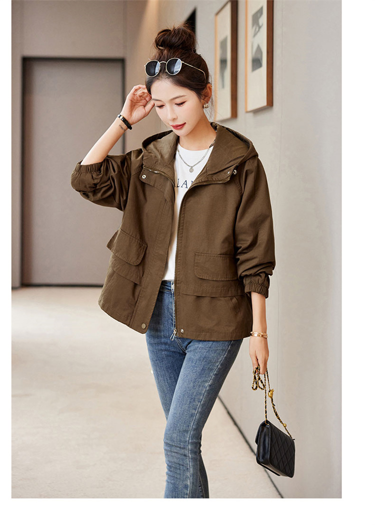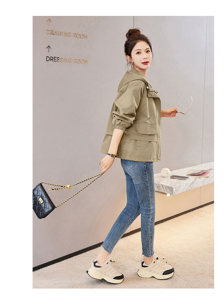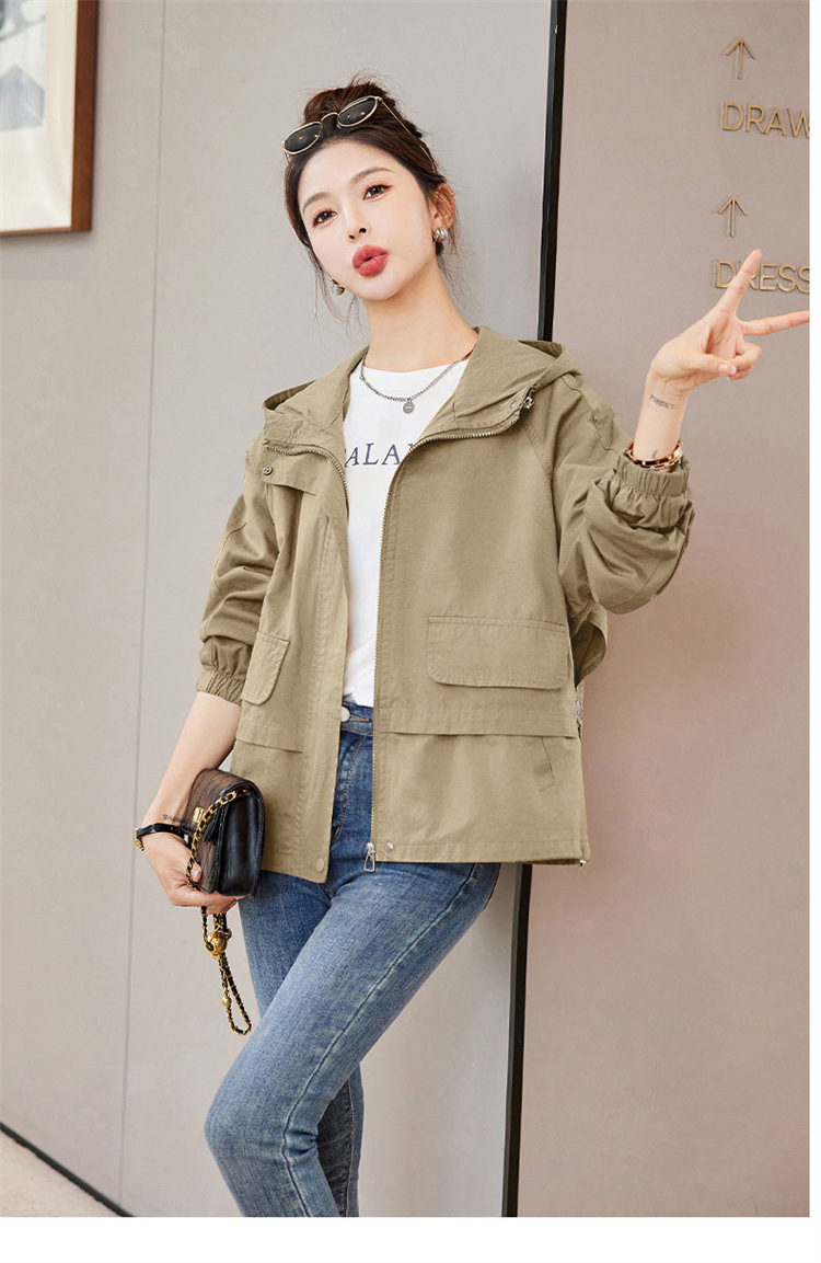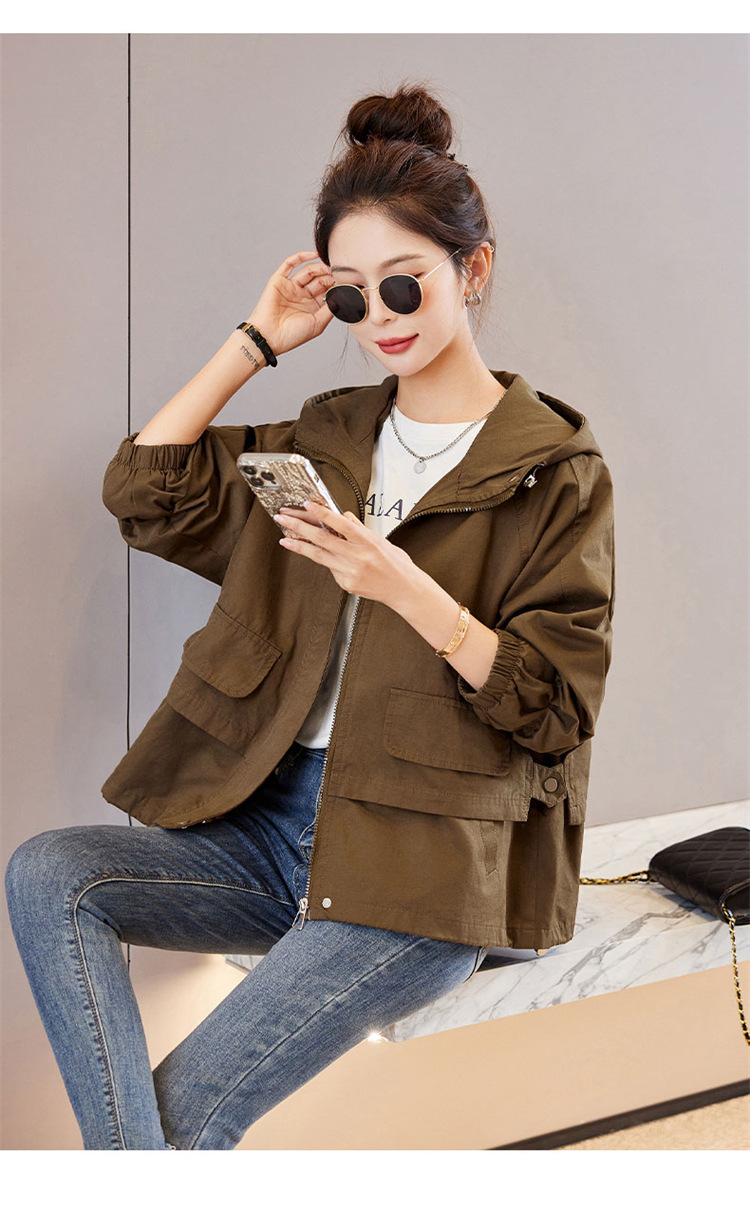 WYA600192025年春季上新气质时尚通勤宽松遮肉显瘦透气连帽纯色外套