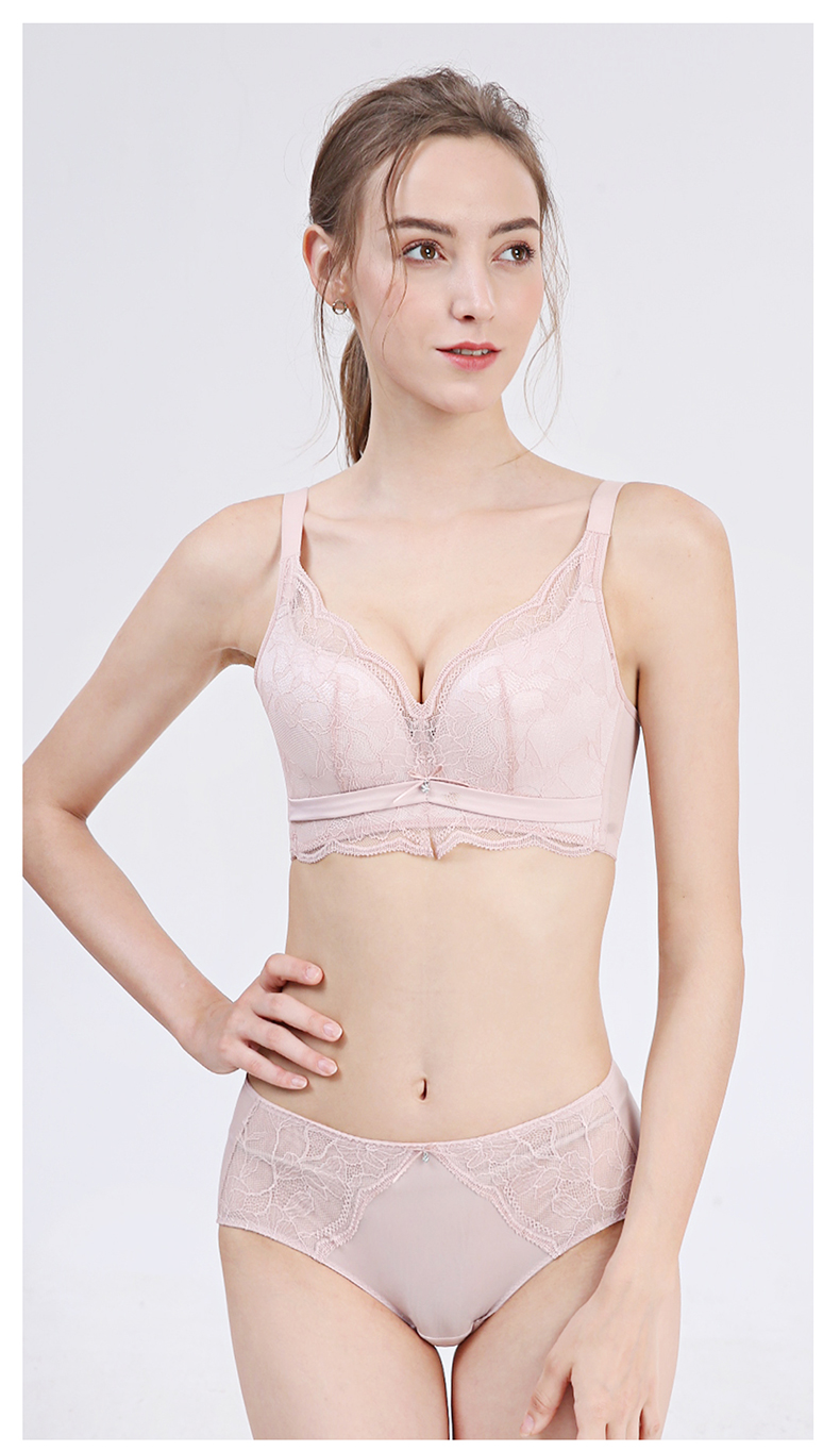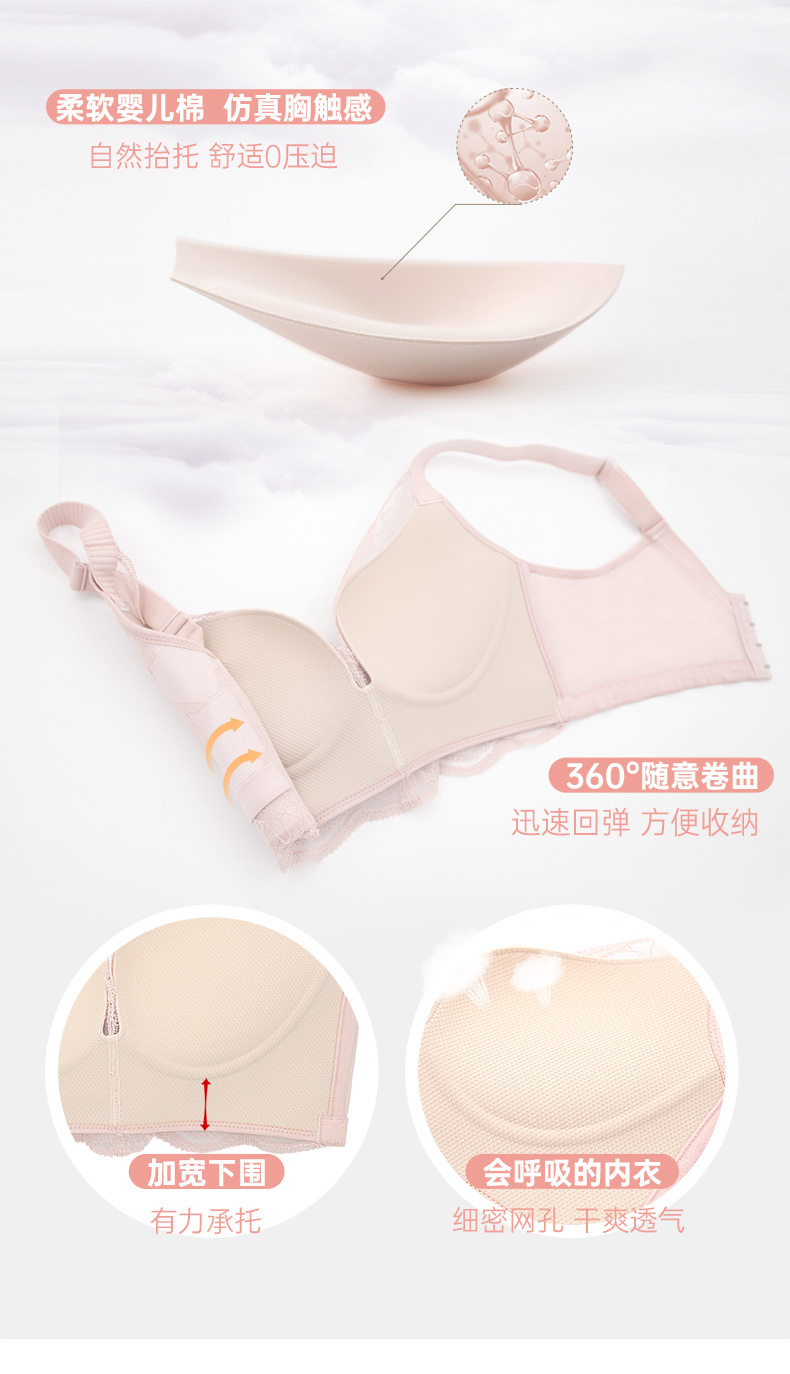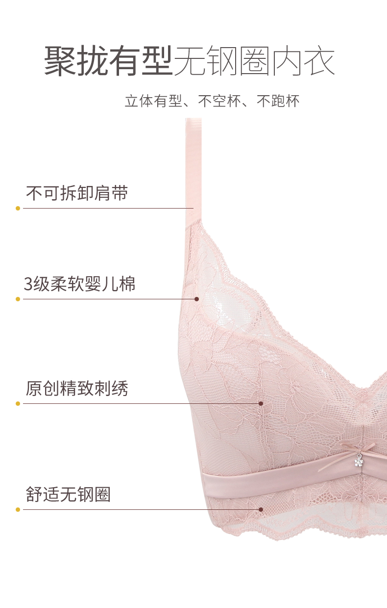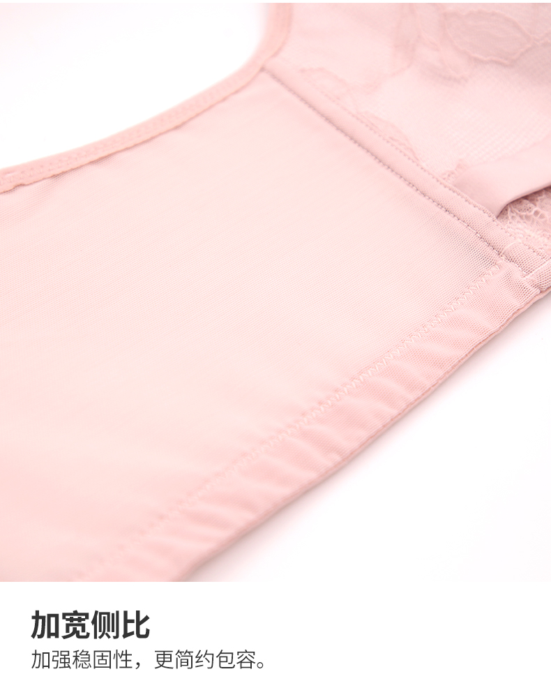 贝佳人新品花纹蕾丝调整型文胸无钢圈零束缚美背内衣透气聚拢BW952022