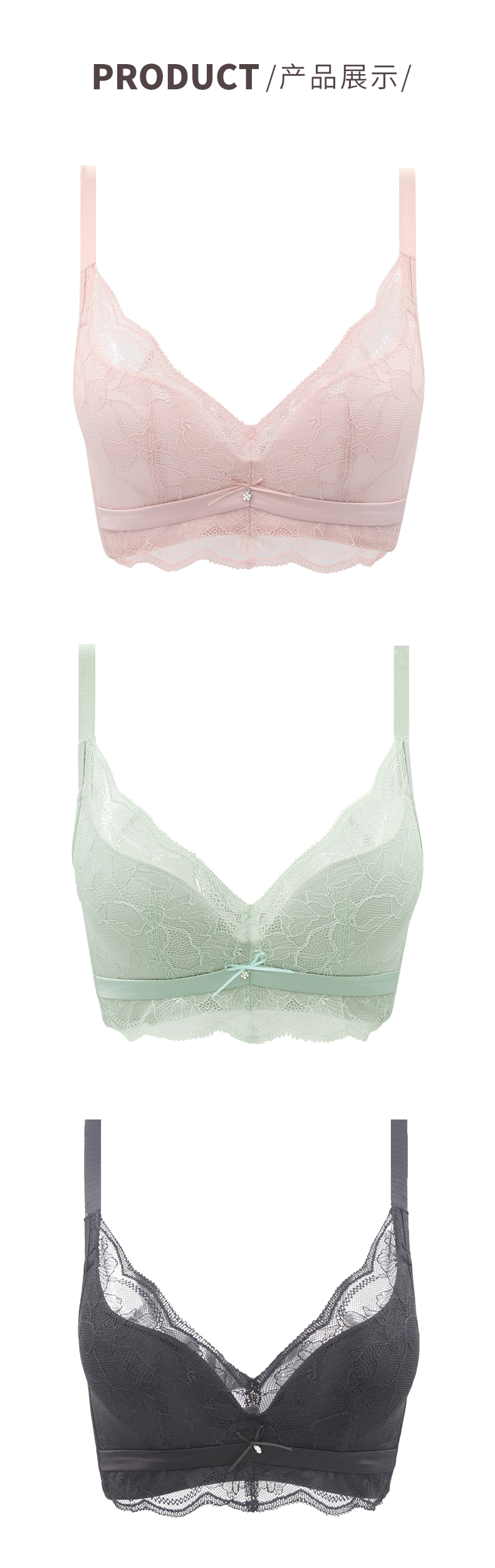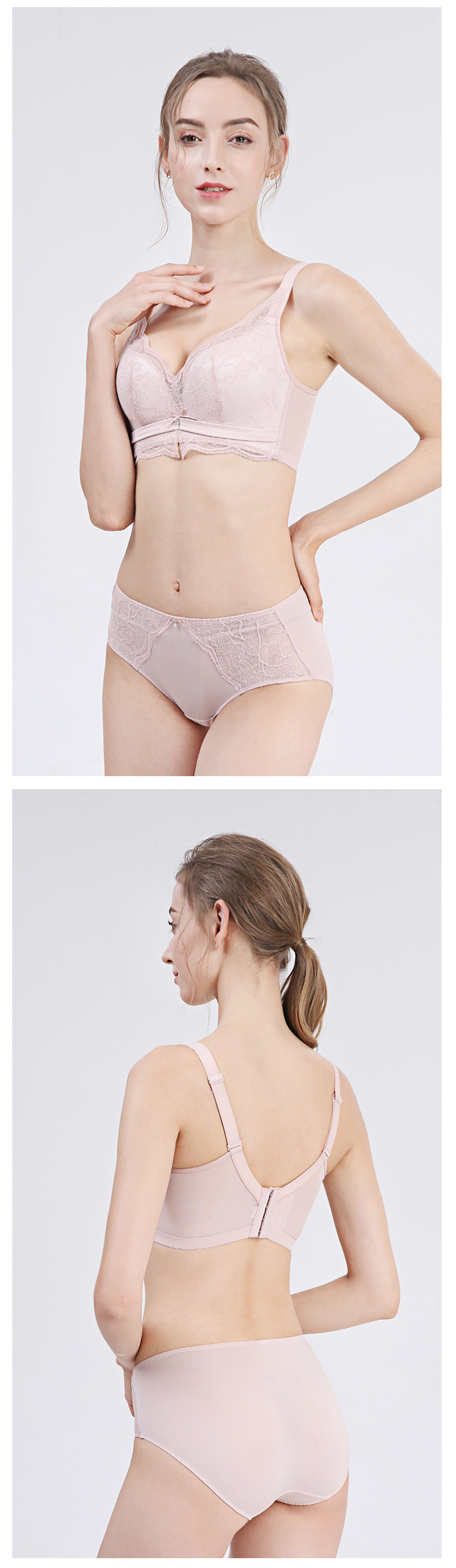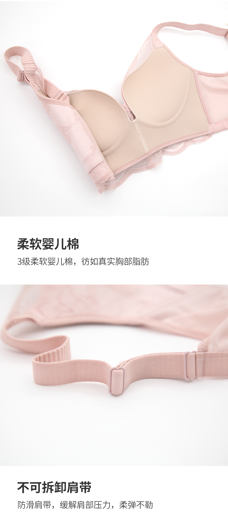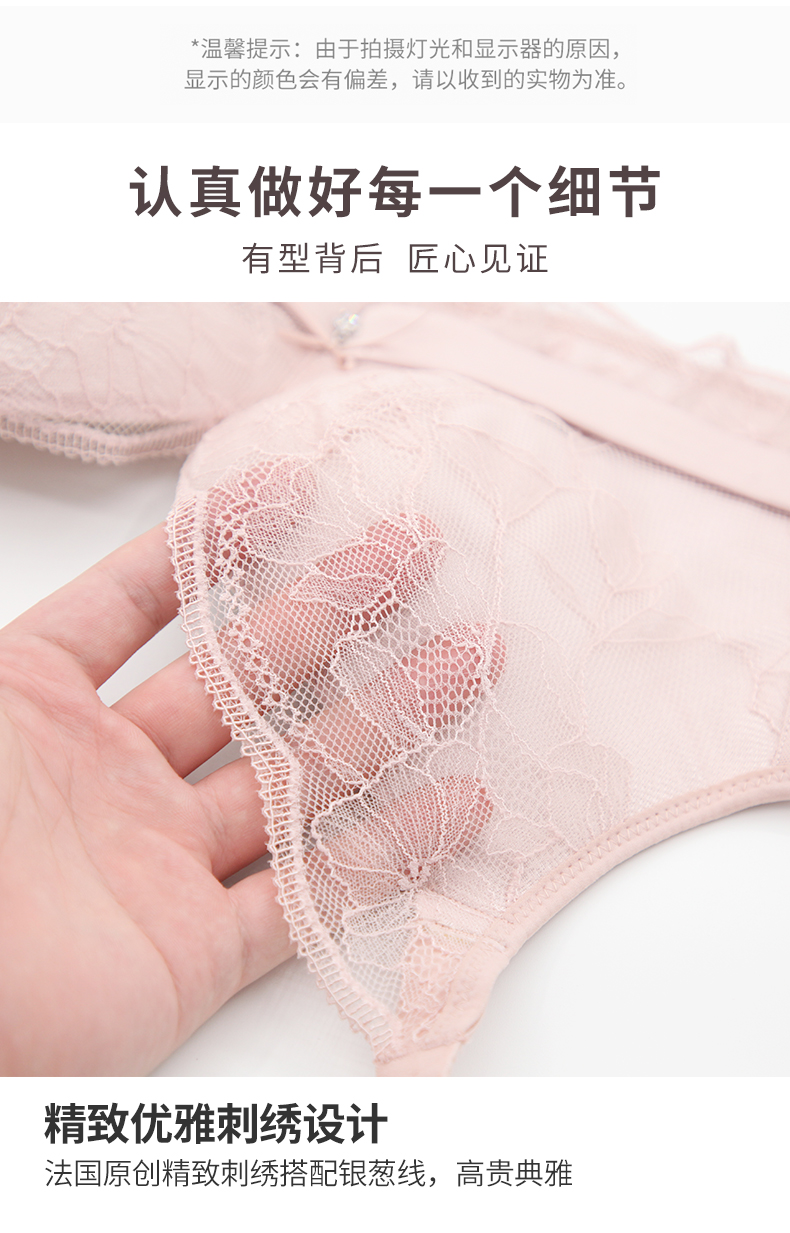 贝佳人新品花纹蕾丝调整型文胸无钢圈零束缚美背内衣透气聚拢BW952022