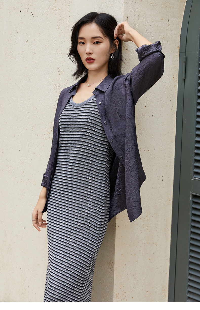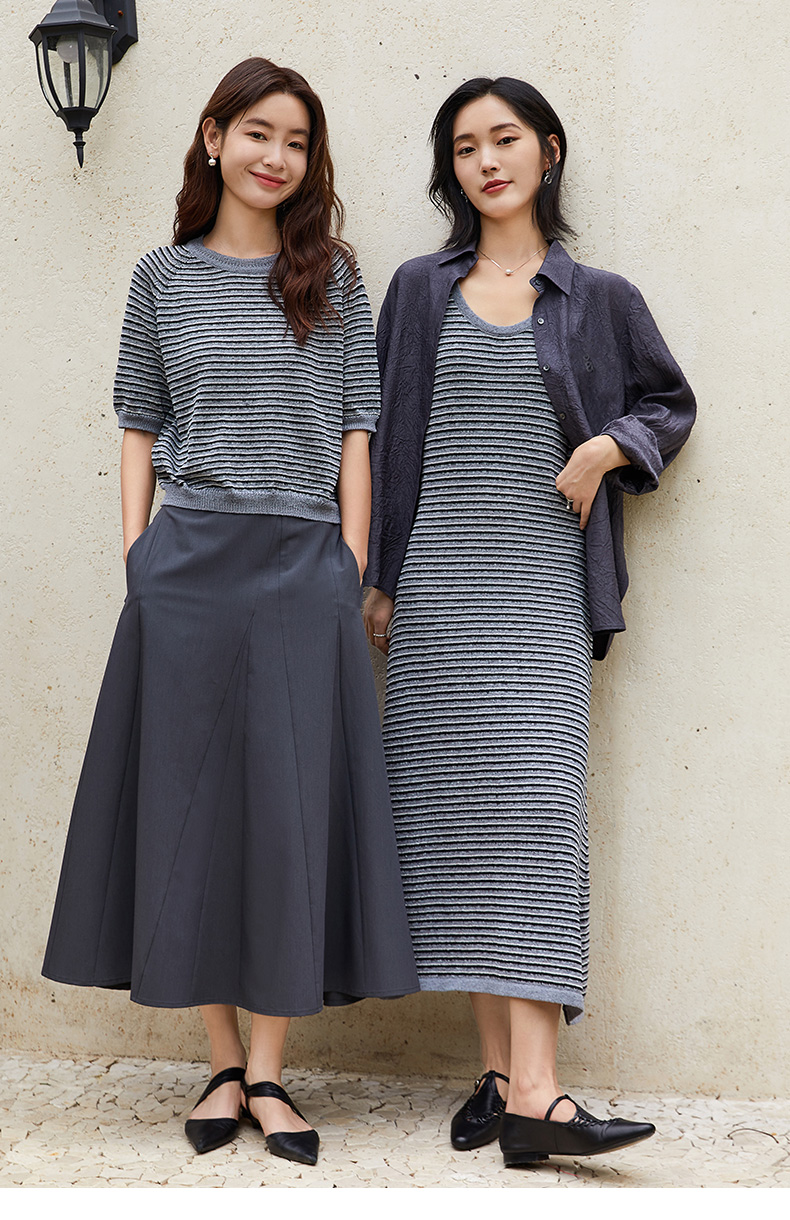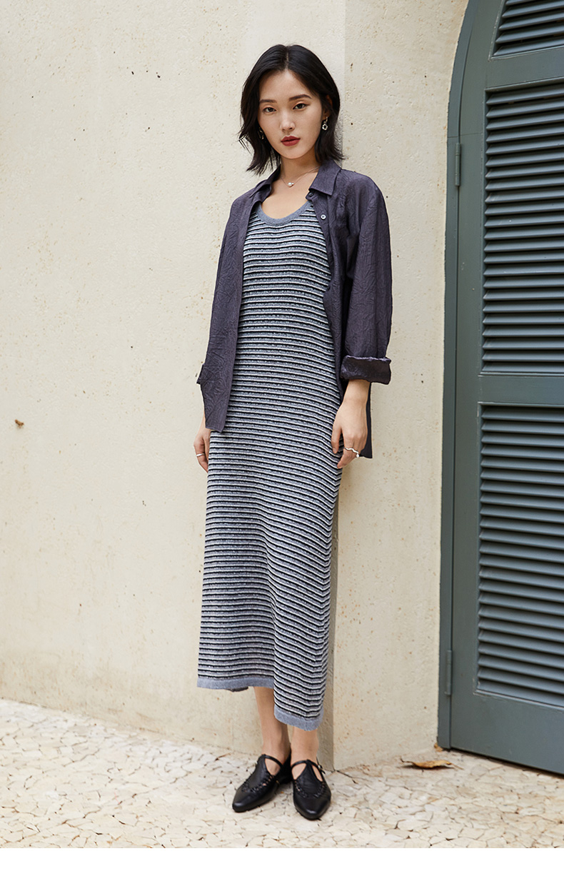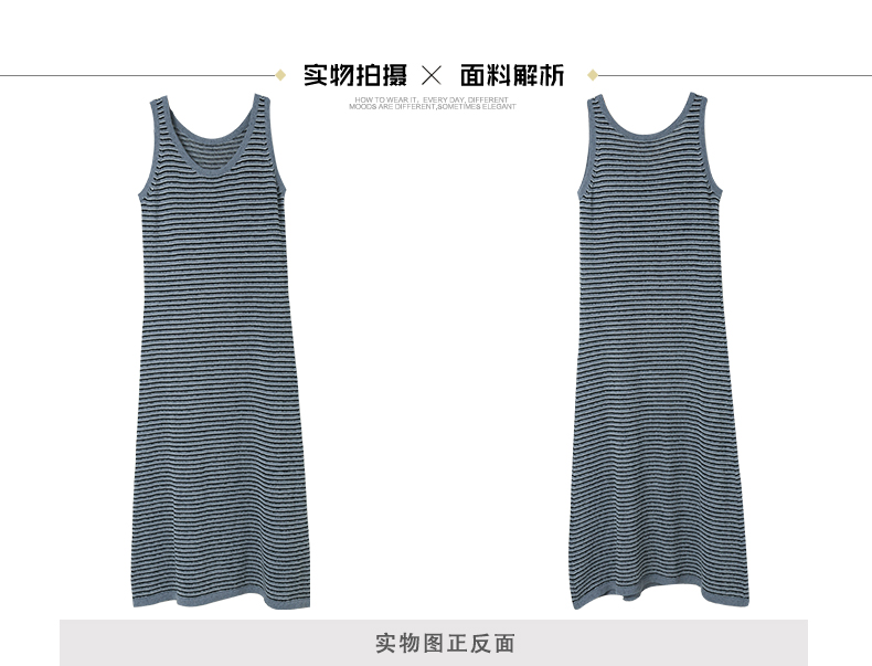 2025新款秋装条纹弹力针织背心连衣裙