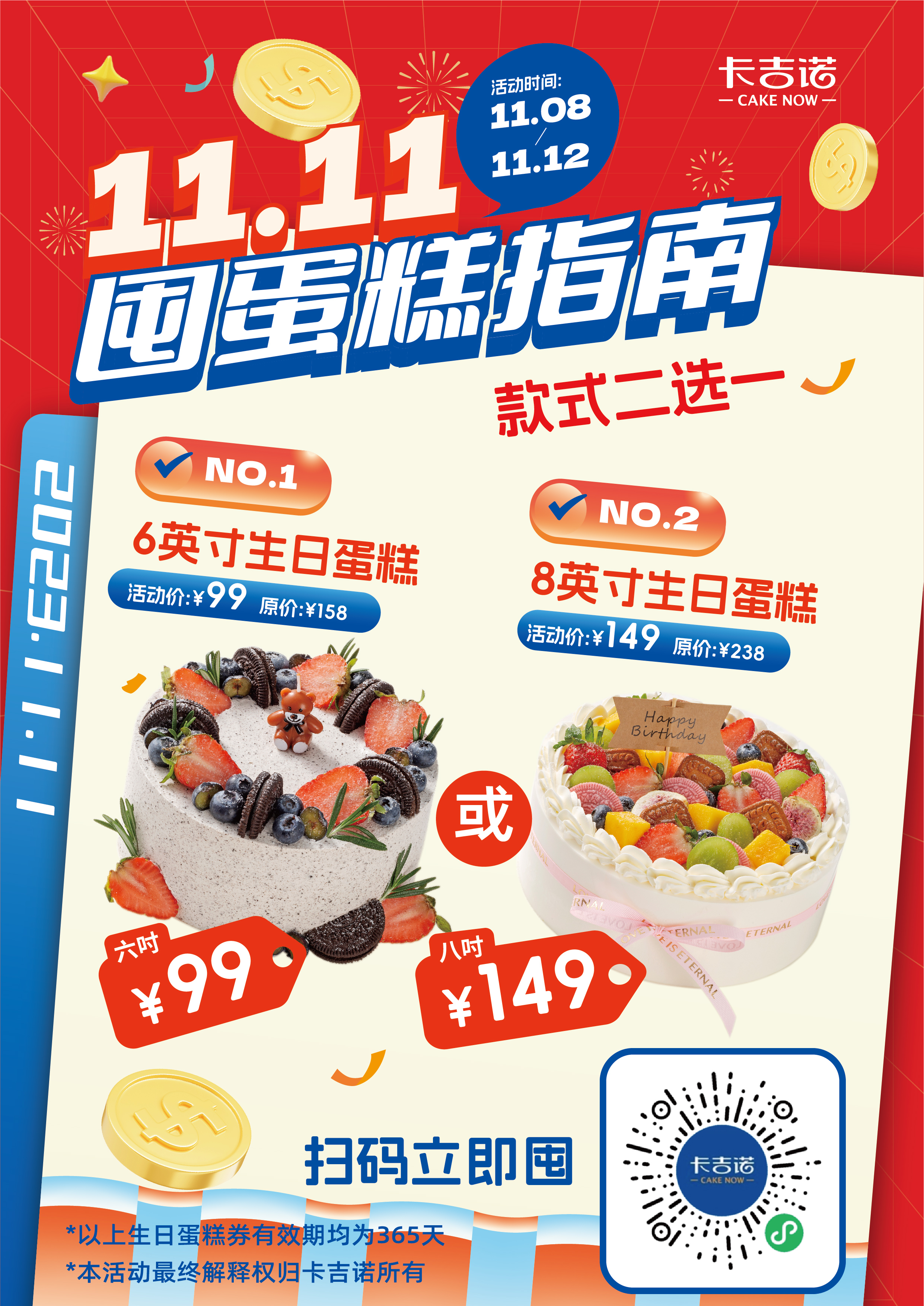 产品:6英寸生日蛋糕兑换券(小欢喜)、8英寸生日蛋糕兑换券(小欢喜)