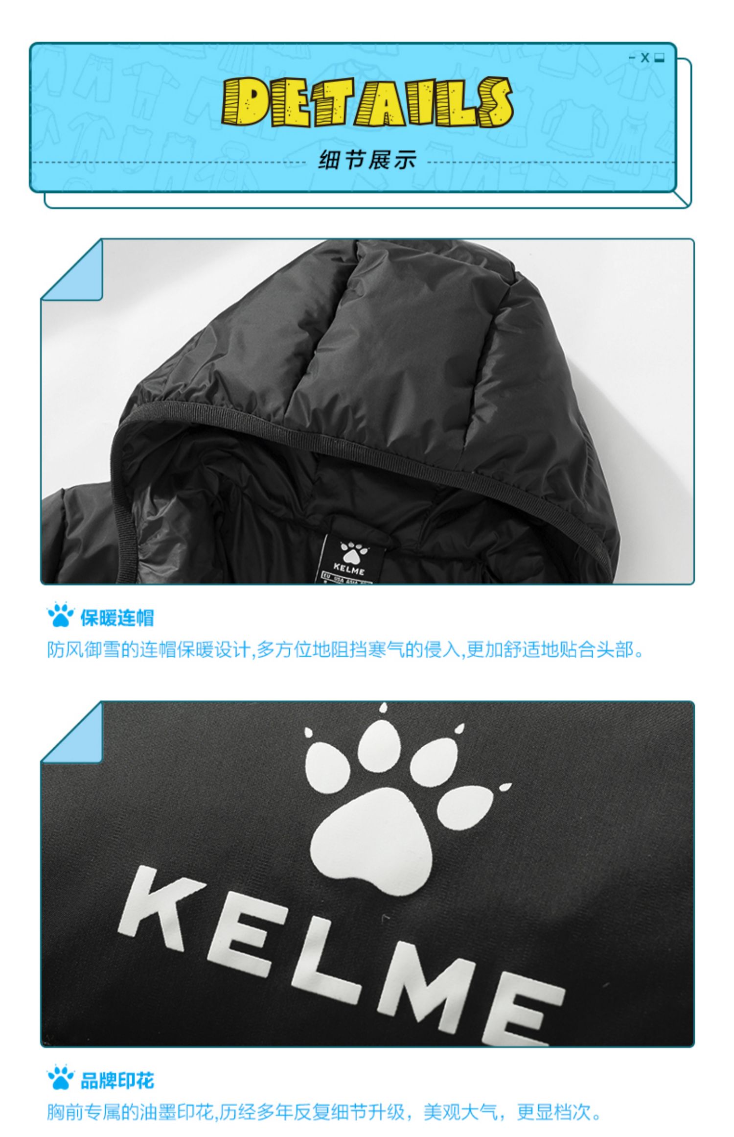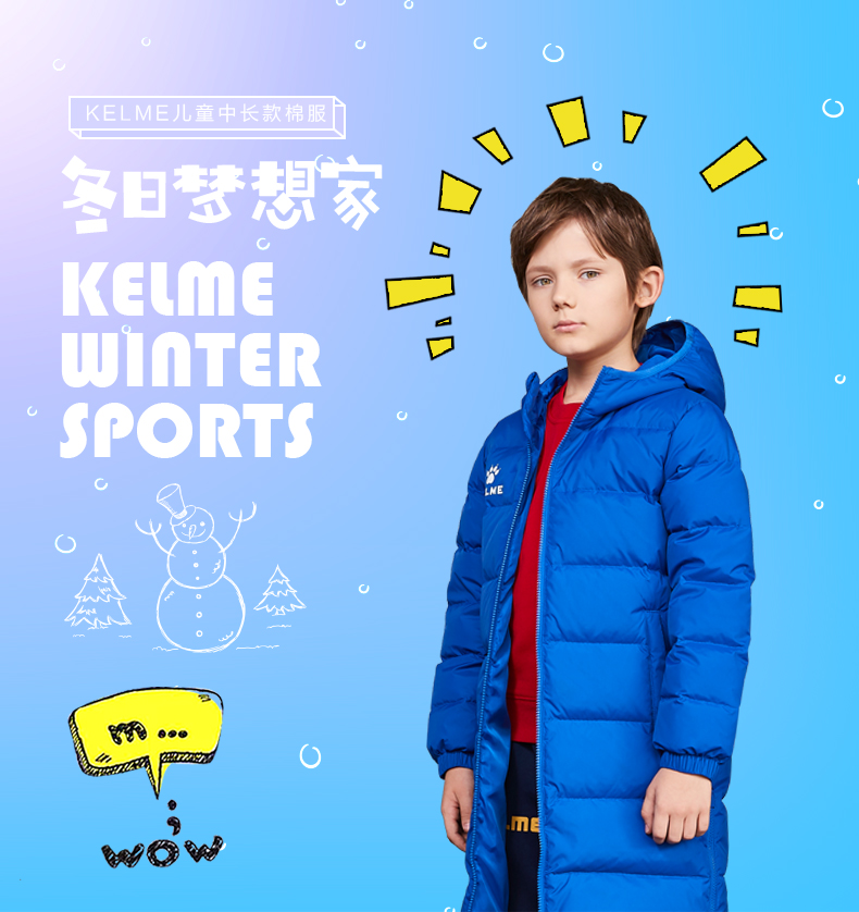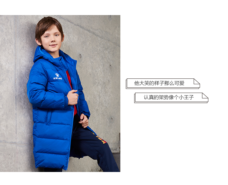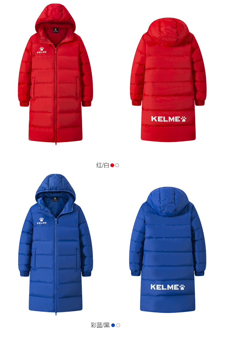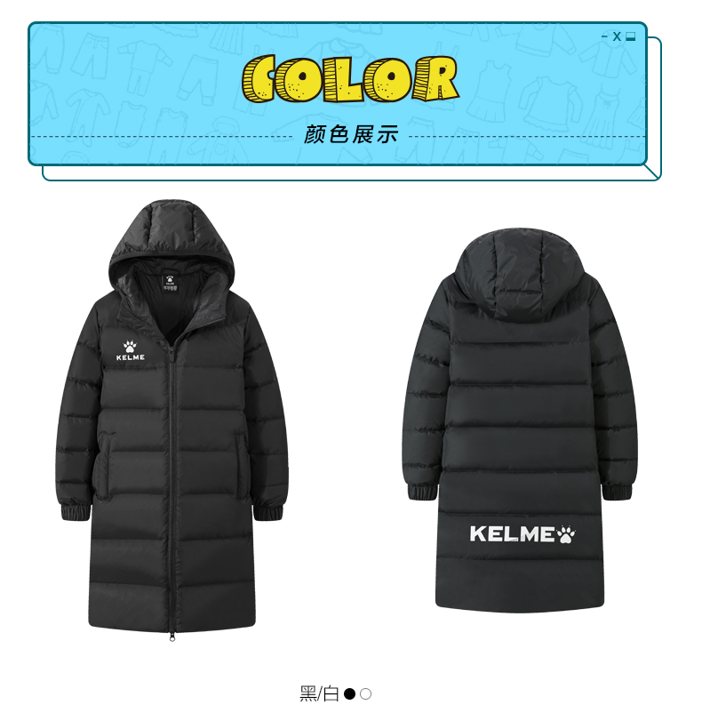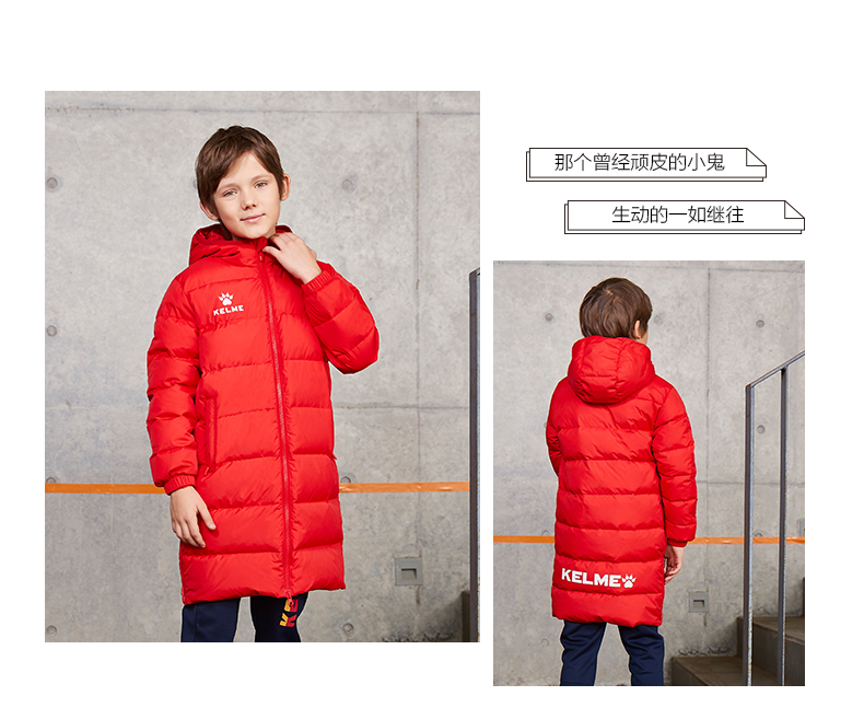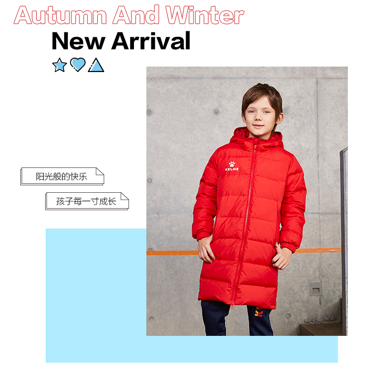 kelme卡尔美 儿童运动羽绒服男女连帽保暖长款足球训练外套男童