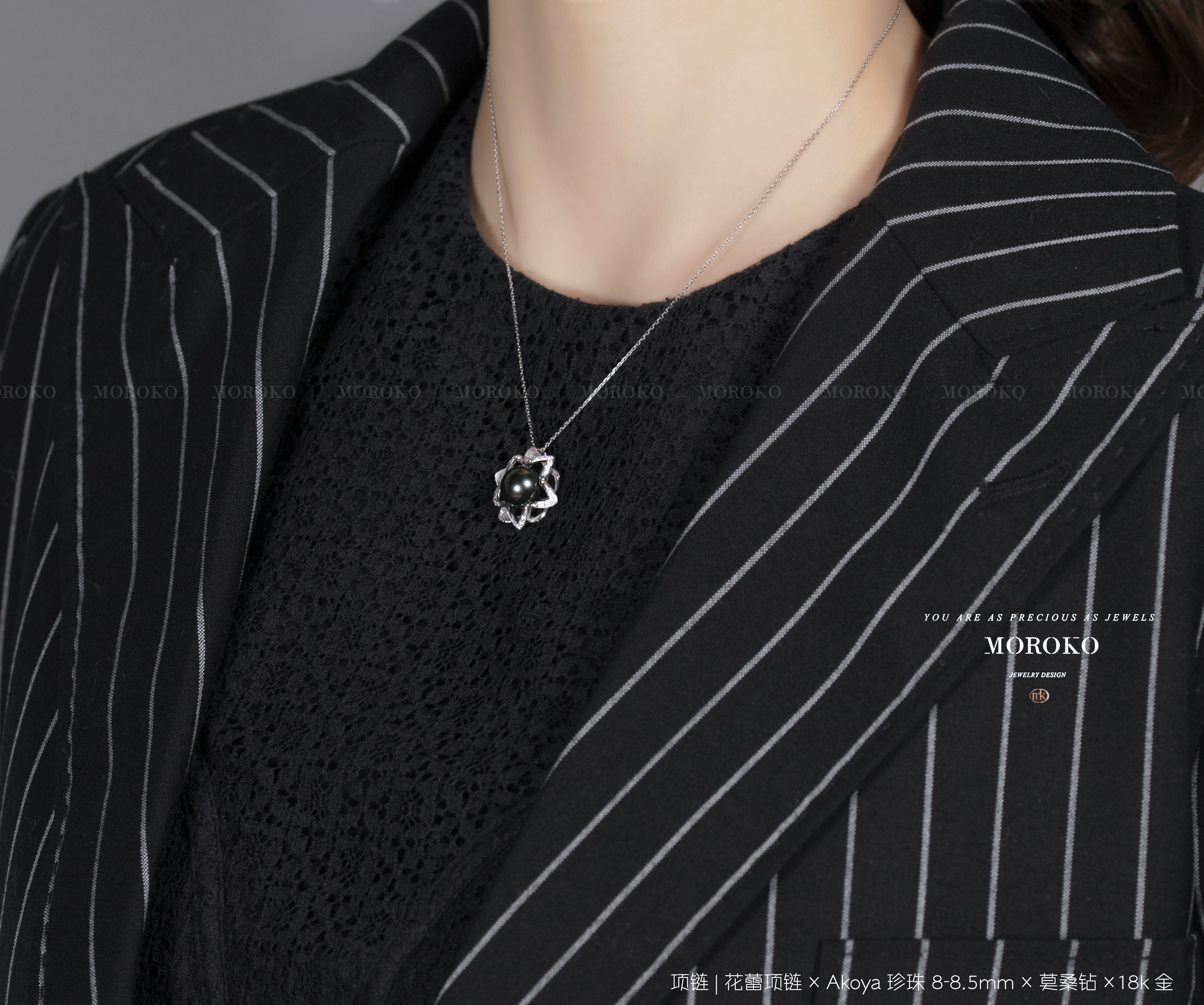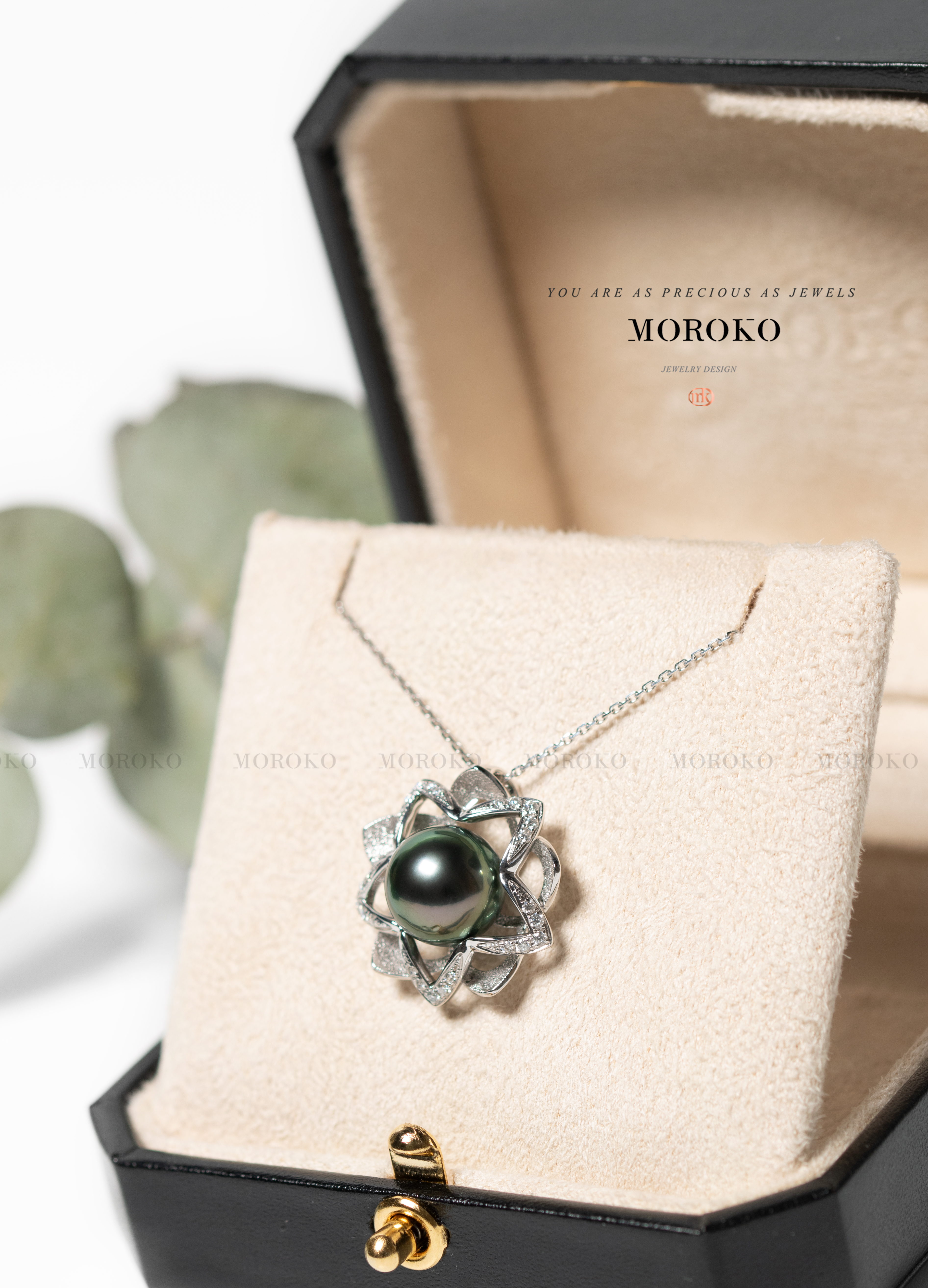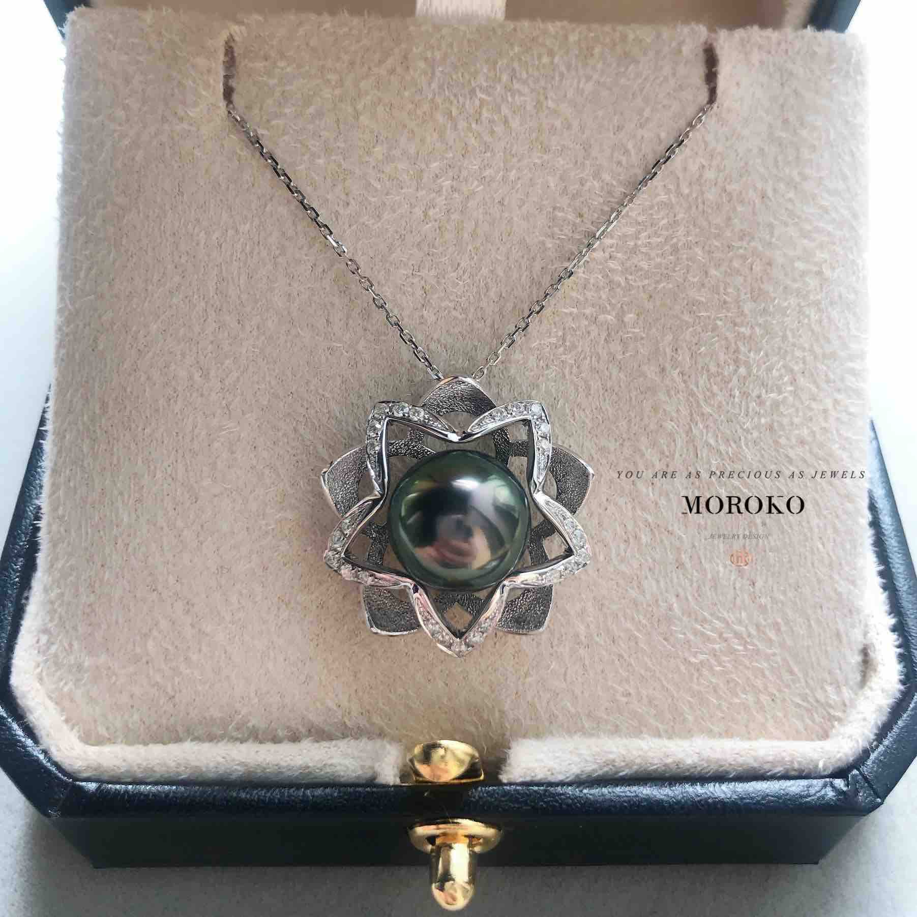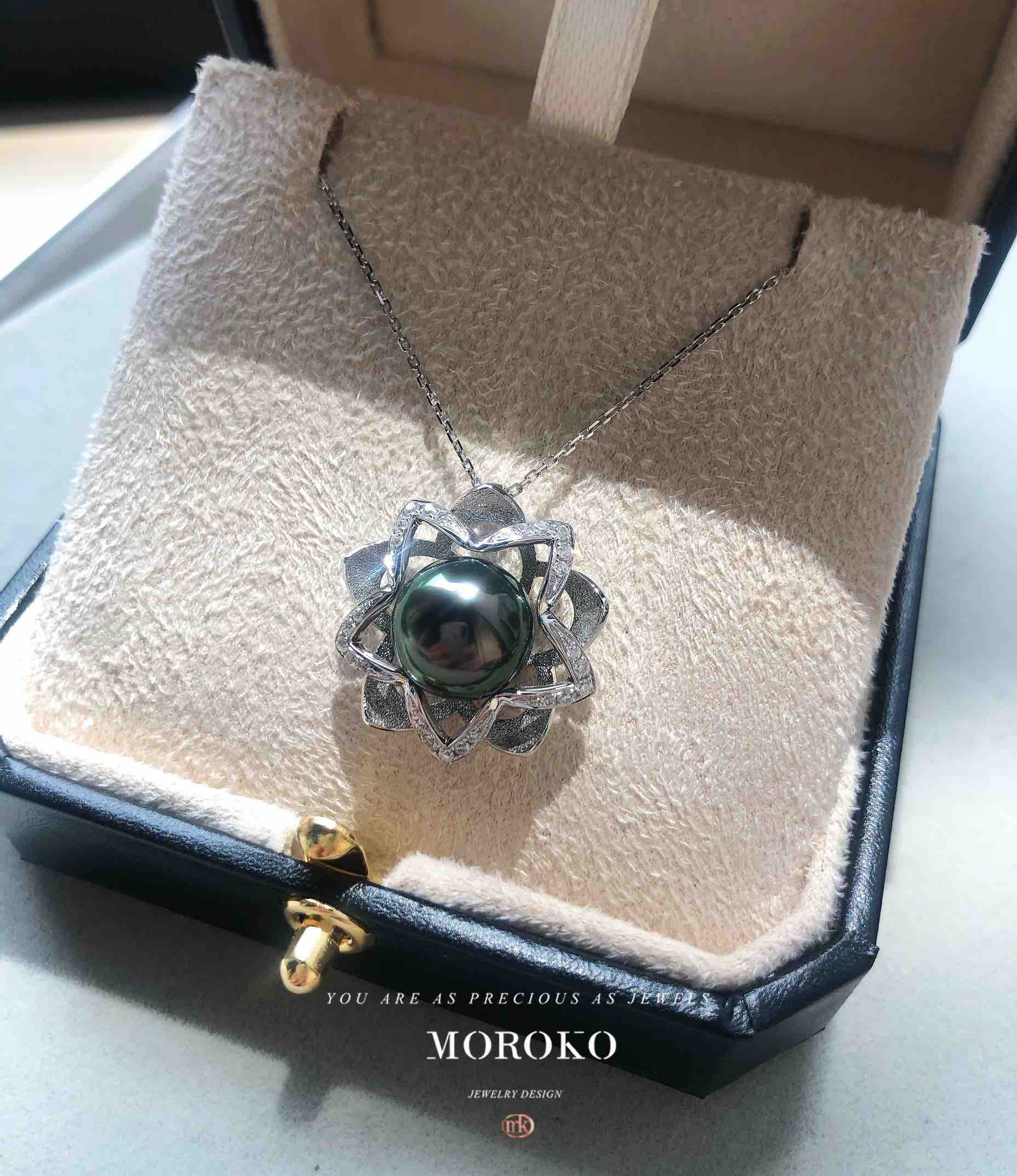 手工敲打的白金肌理,配合极品大溪地的绝美珠光