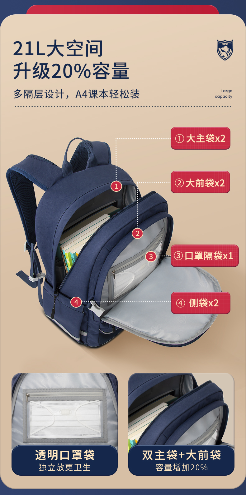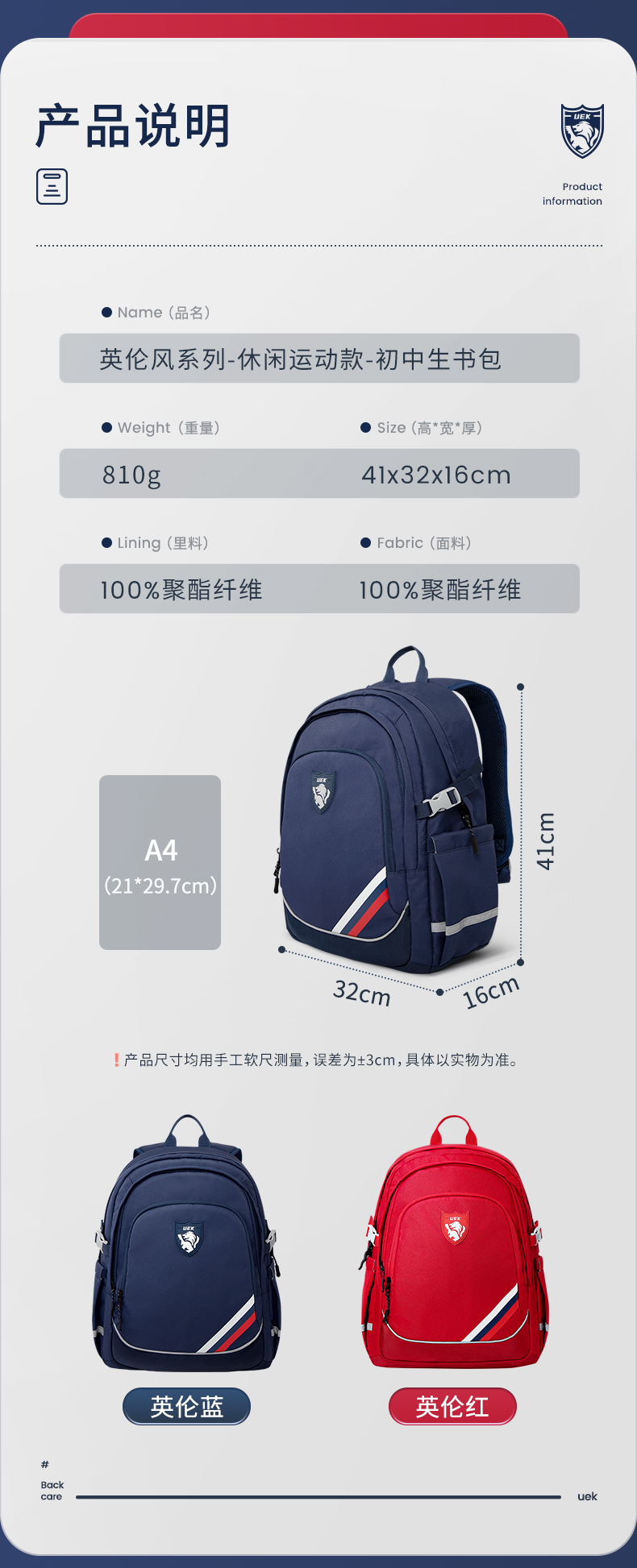 uek英伦风系列- 休闲运动款-初中生书包