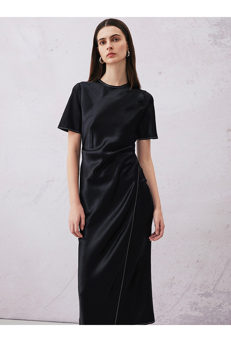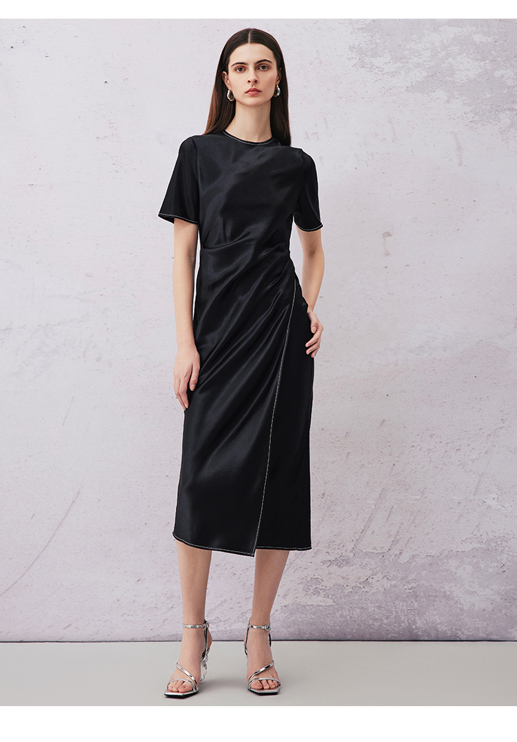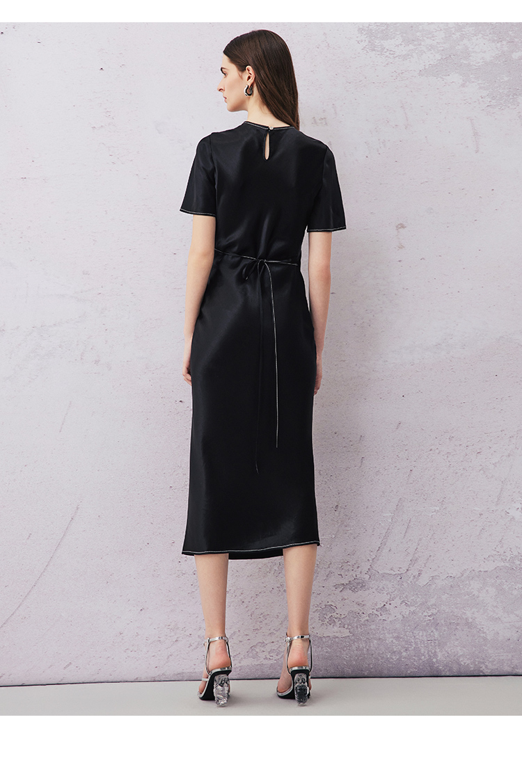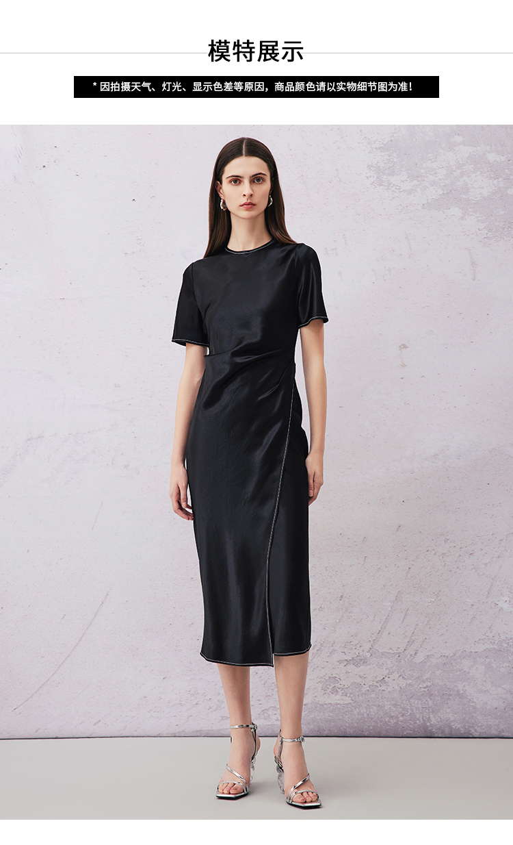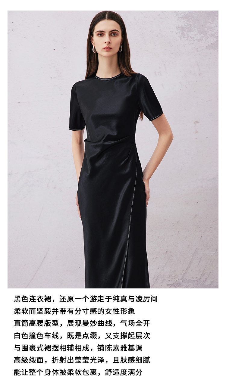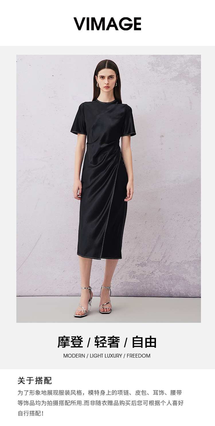 VIMAGE纬漫纪夏季新款时尚纯色气质收腰显瘦法式优雅连衣裙V2107707