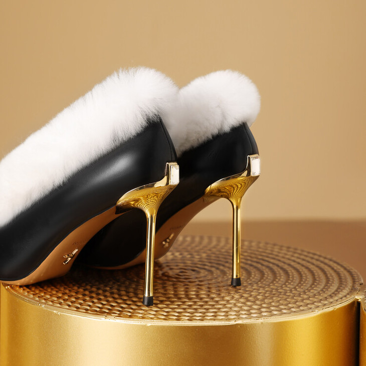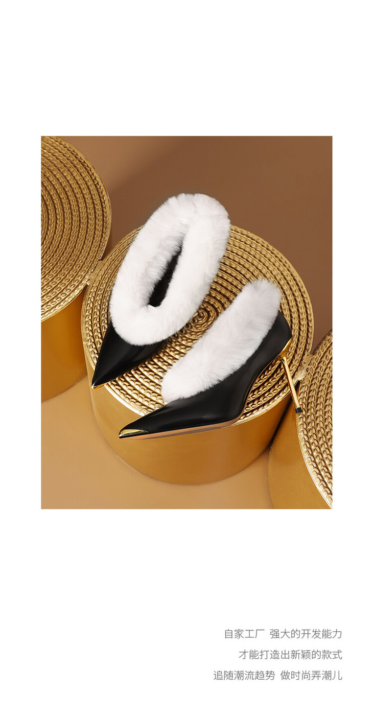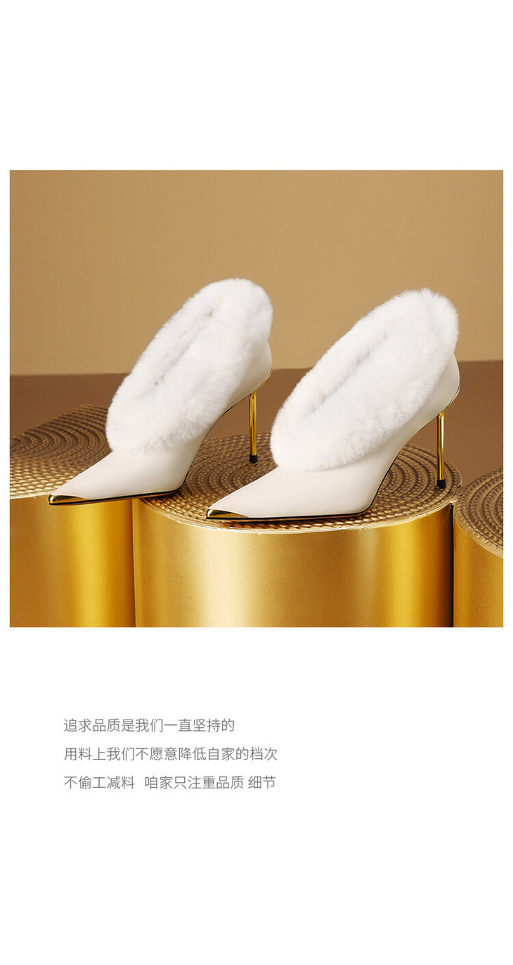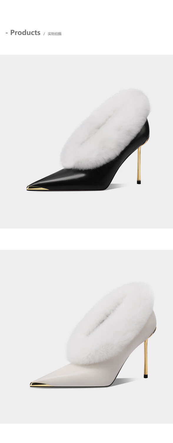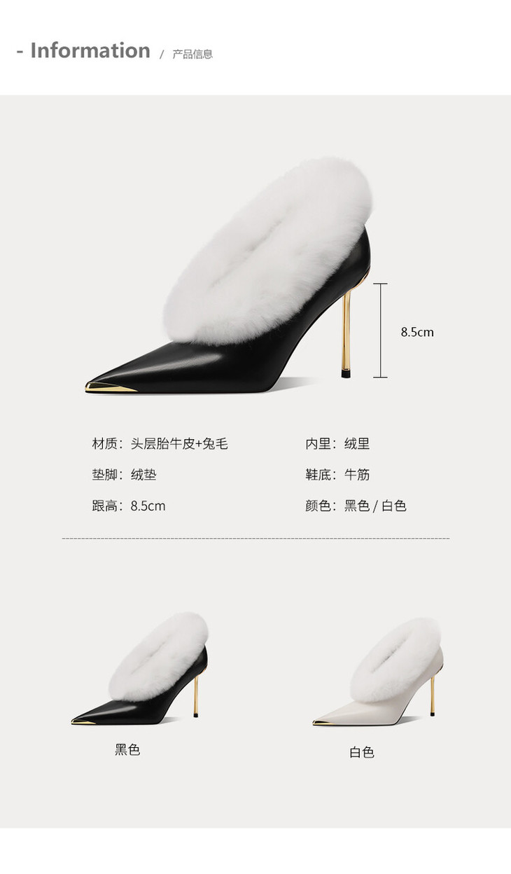 【内里】:绒里【垫脚】:绒垫【颜色】:黑色、白色【跟高】:8.5cm【尺码】:34-39码