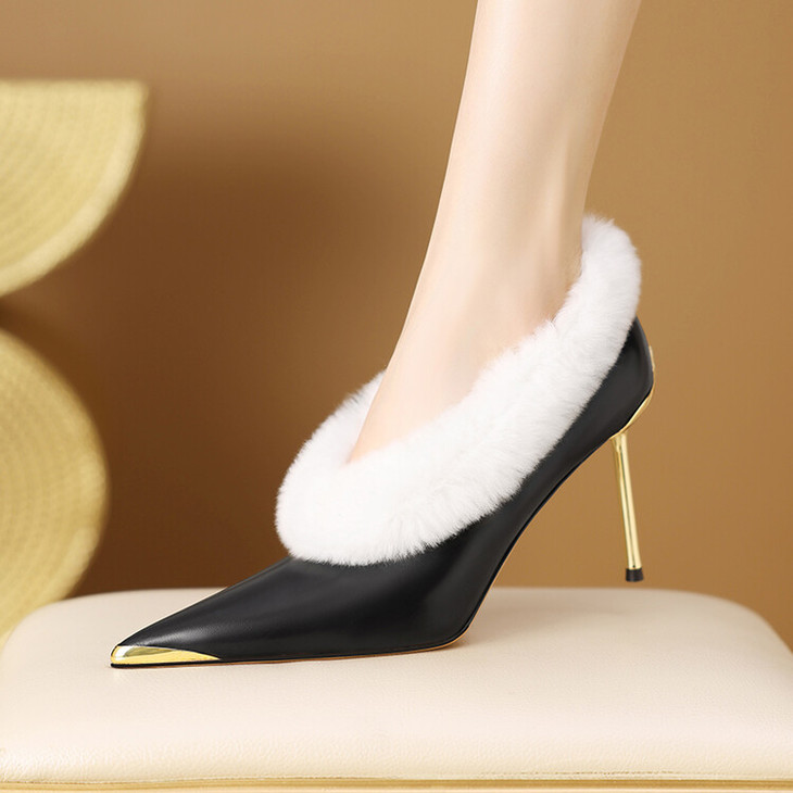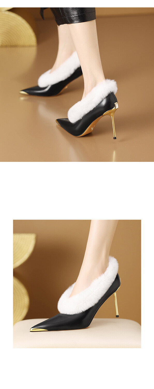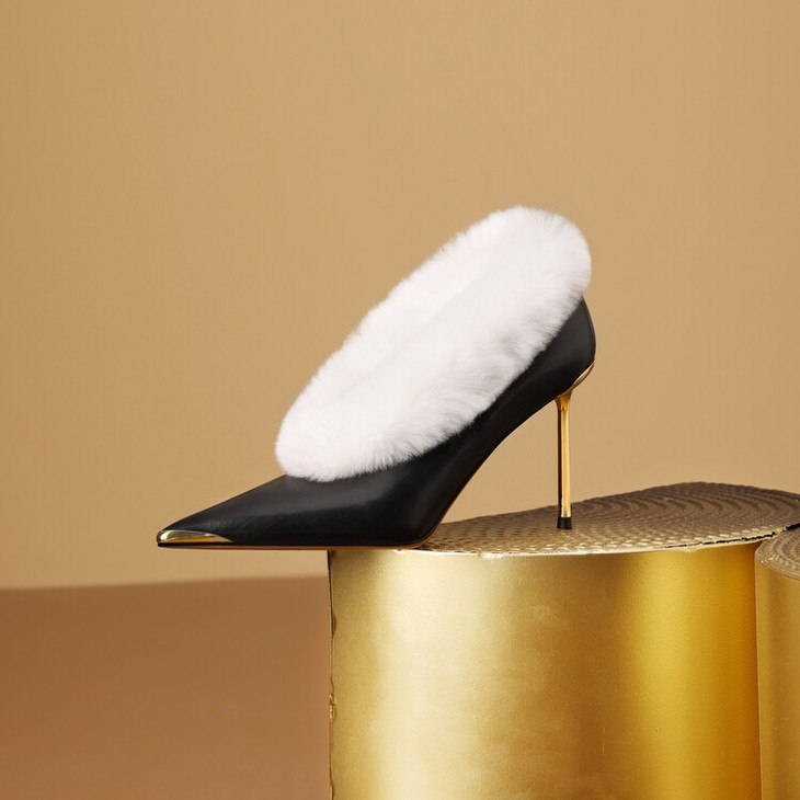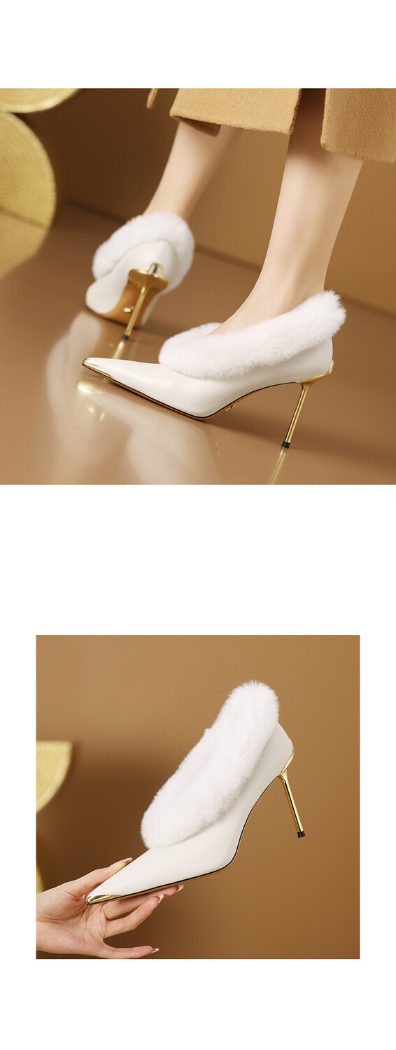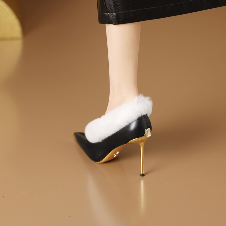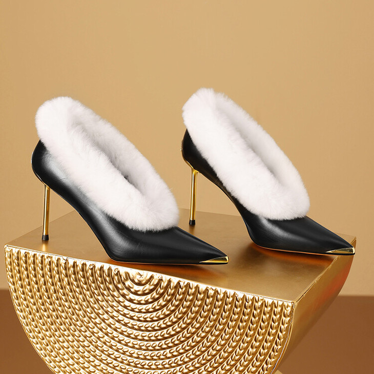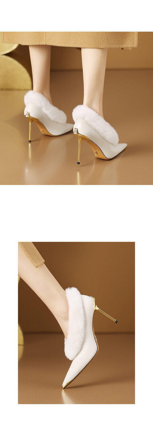 【内里】:绒里【垫脚】:绒垫【颜色】:黑色、白色【跟高】:8.5cm【尺码】:34-39码