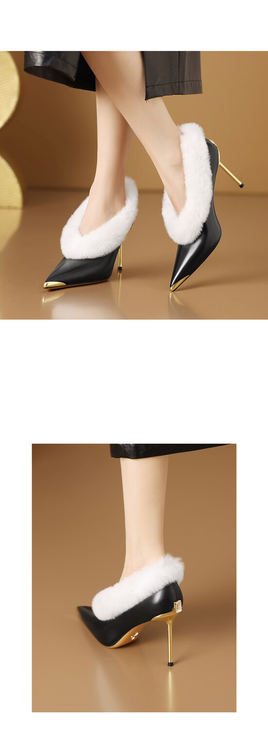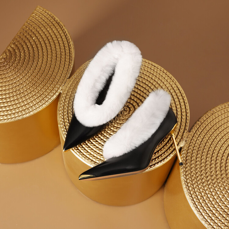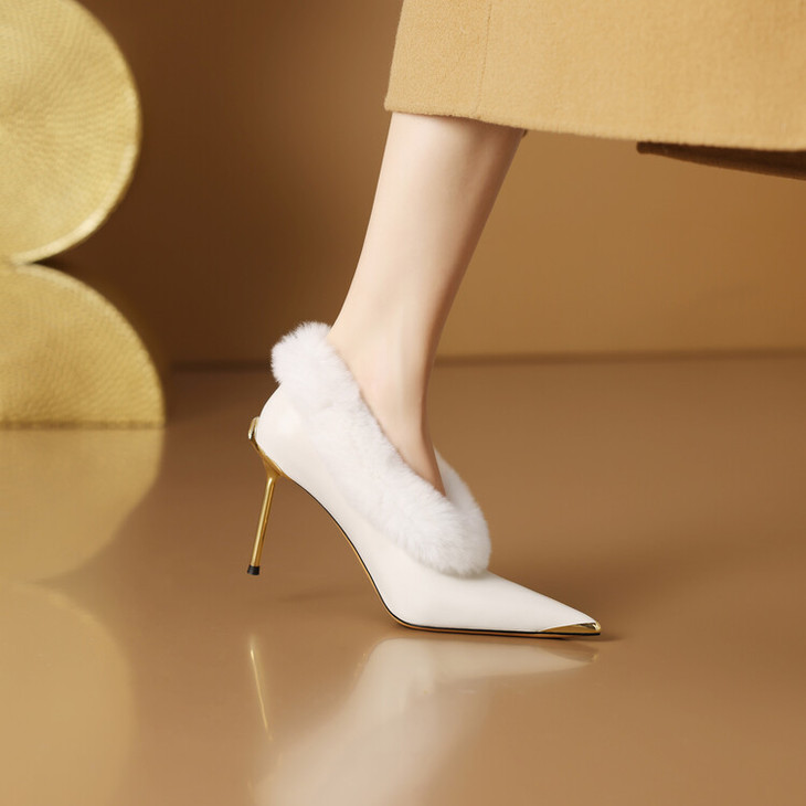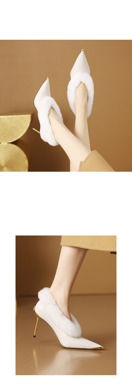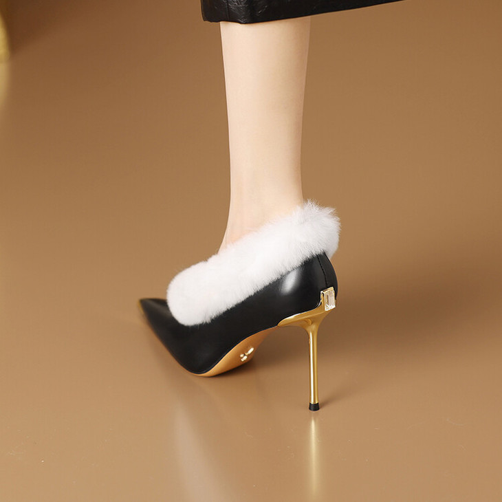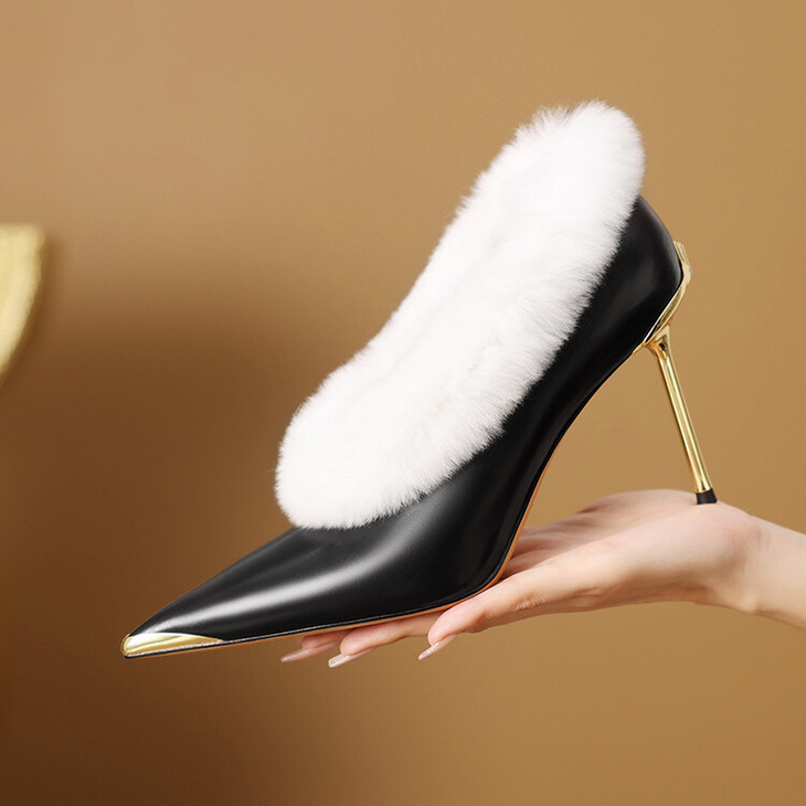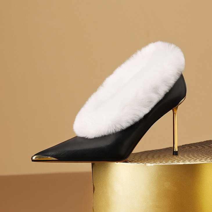 【内里】:绒里【垫脚】:绒垫【颜色】:黑色、白色【跟高】:8.5cm【尺码】:34-39码