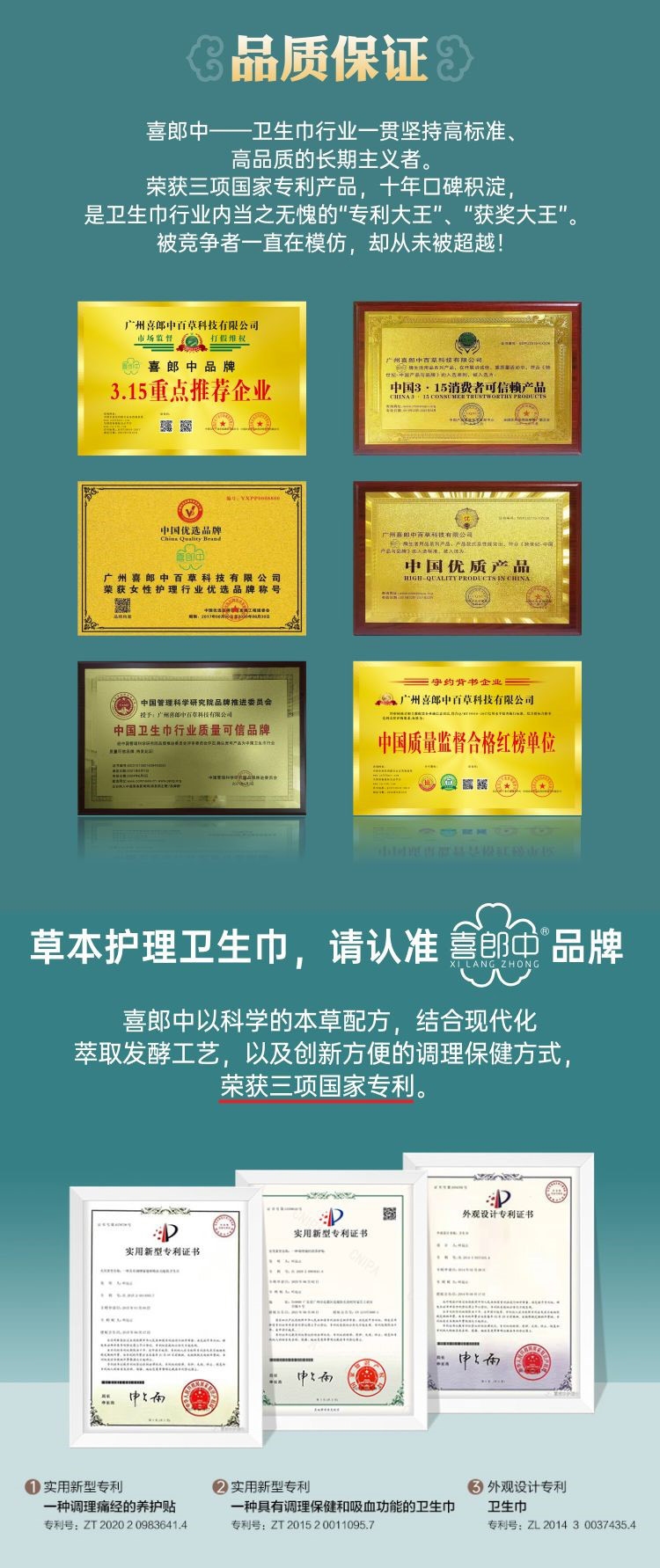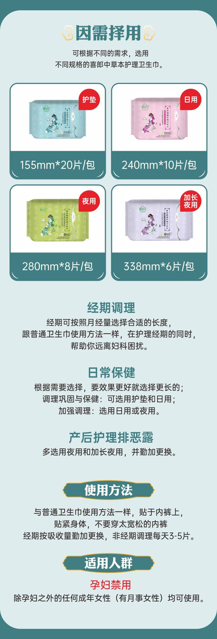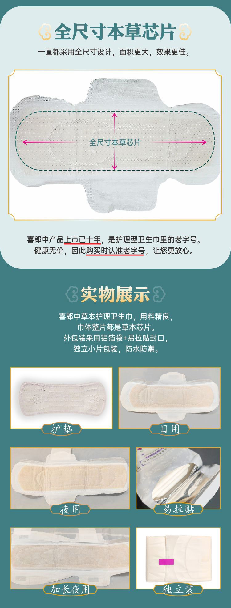 喜郎中卫生巾植物芯/草本护理卫生巾