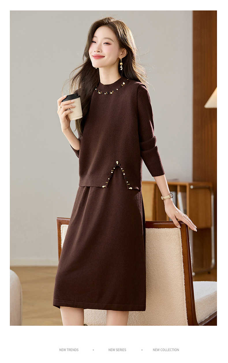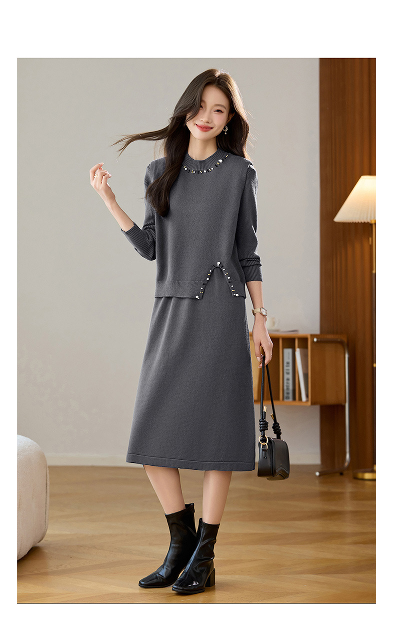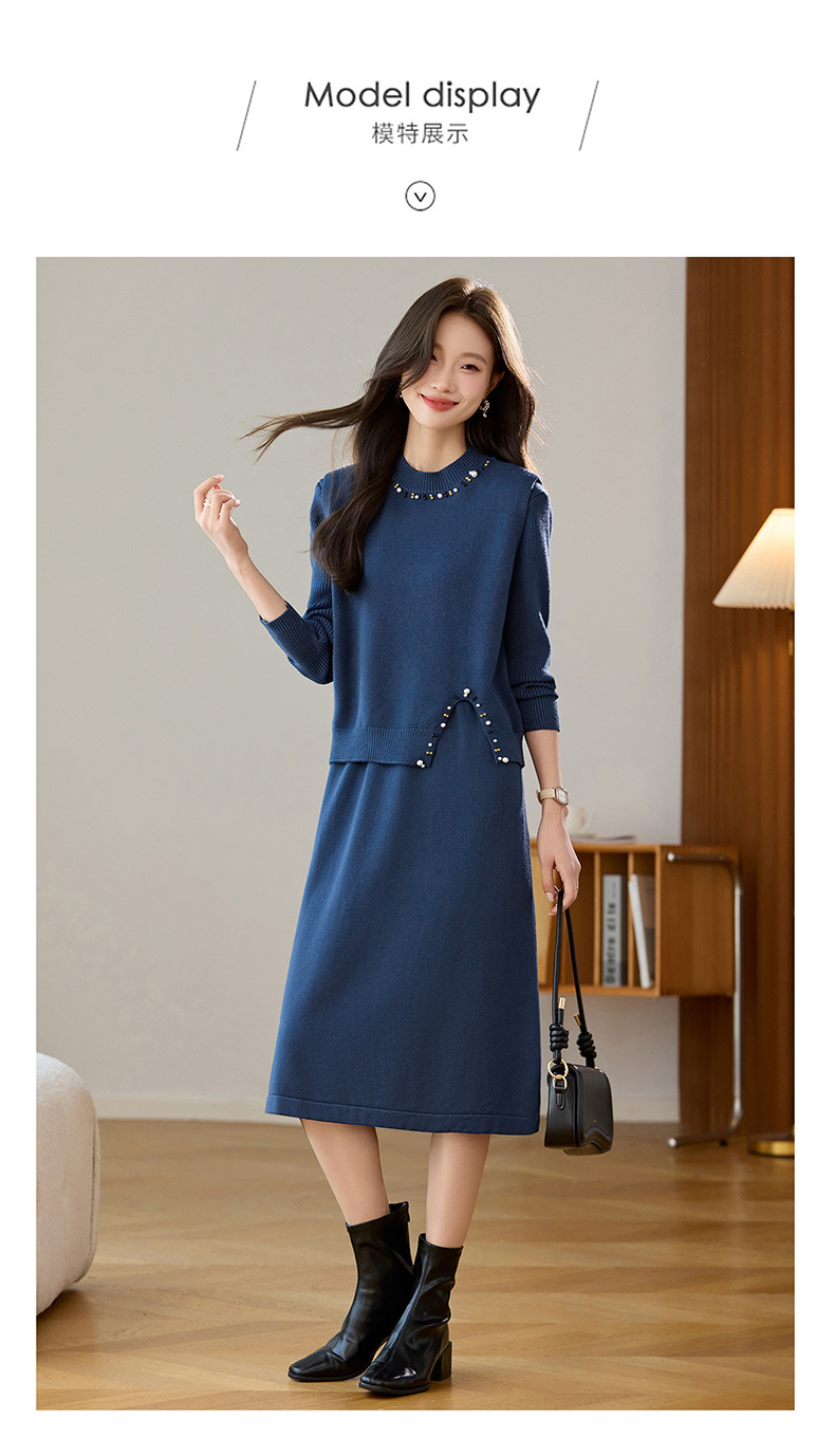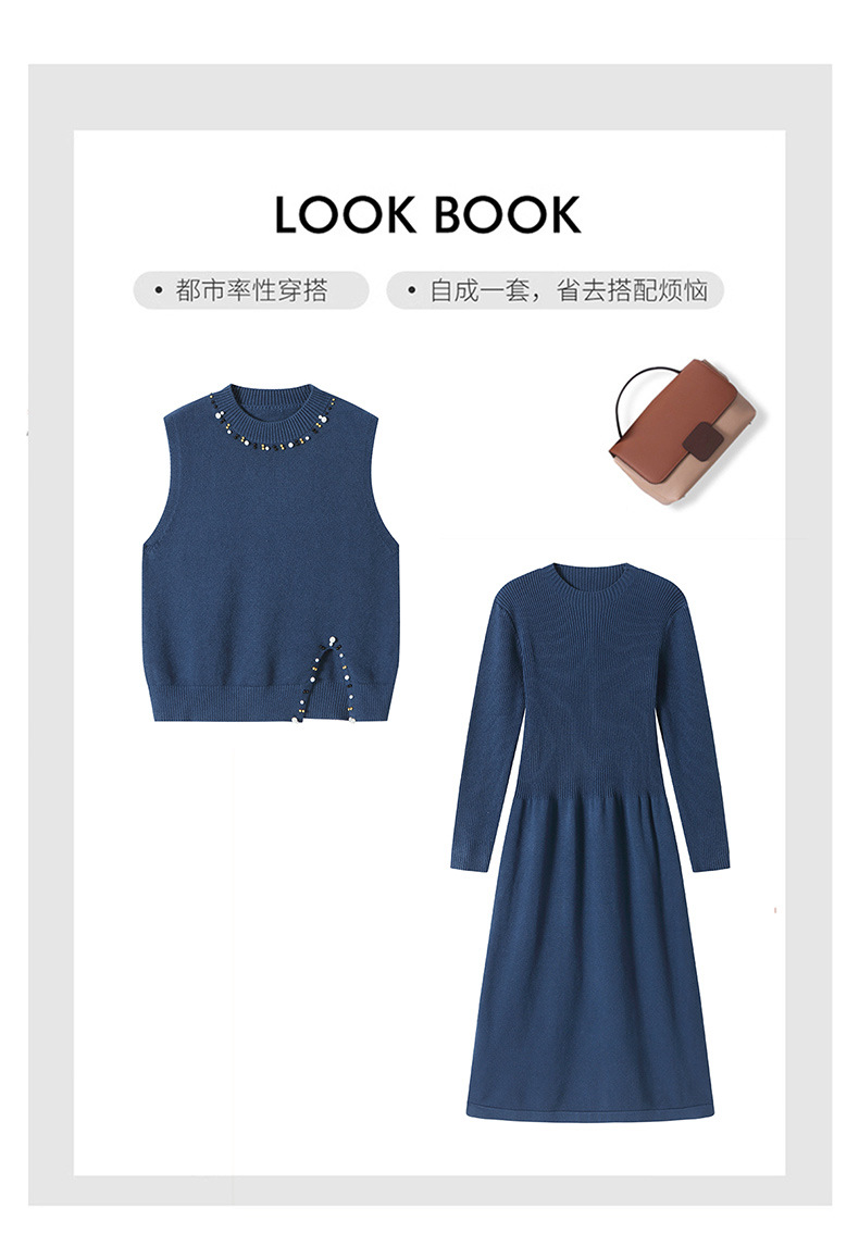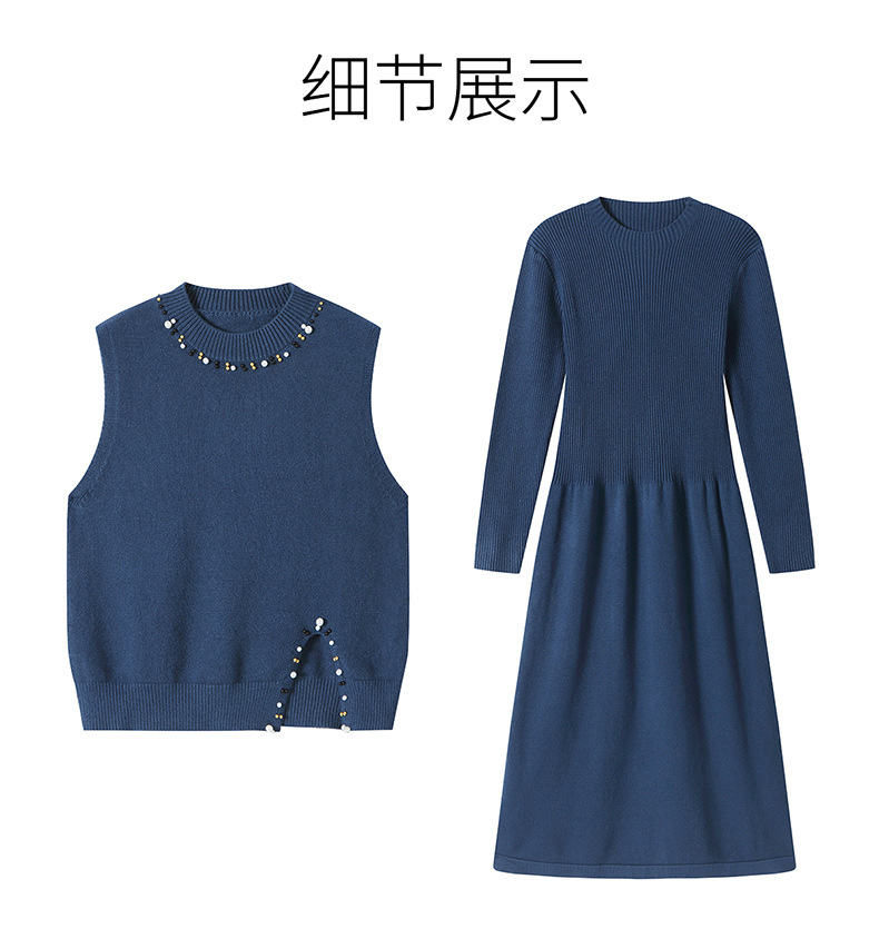 雀说马夹背心女外搭两件套毛衣裙长款气质马甲连衣裙套装AL8502
