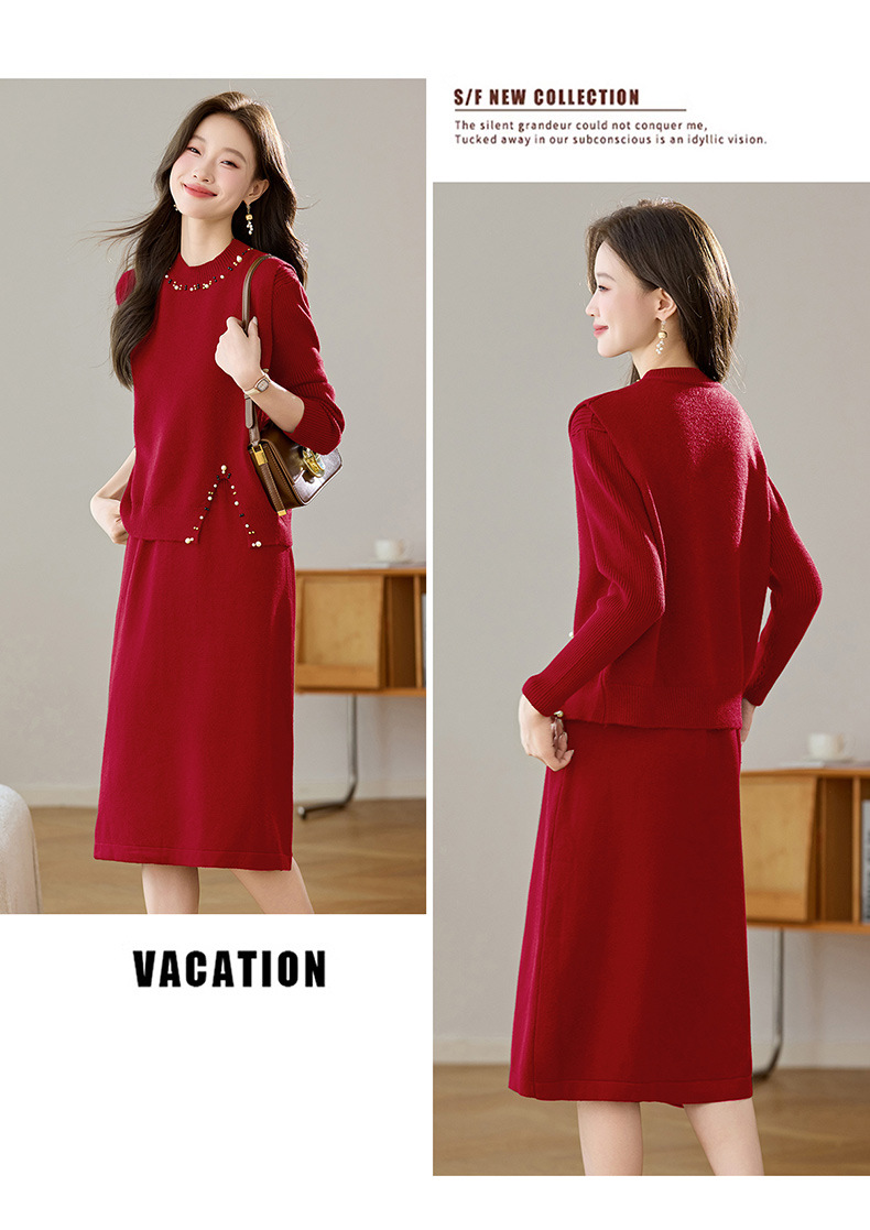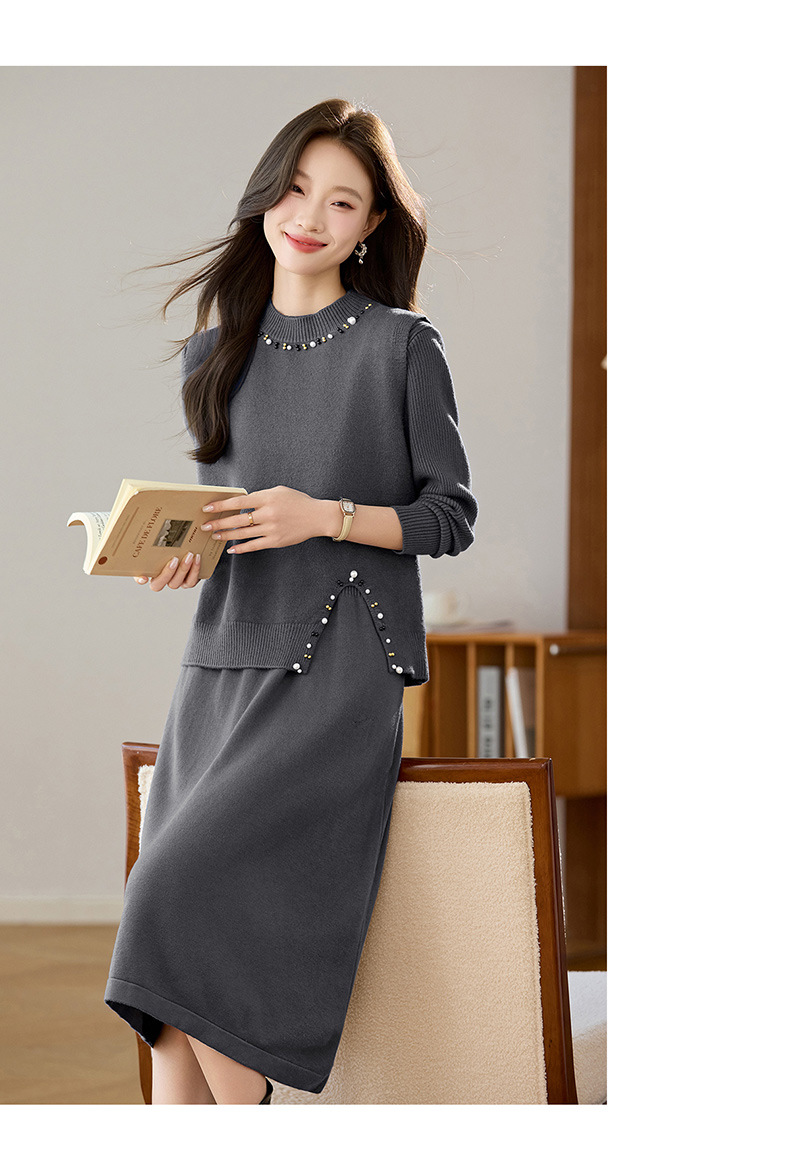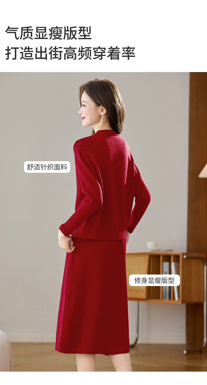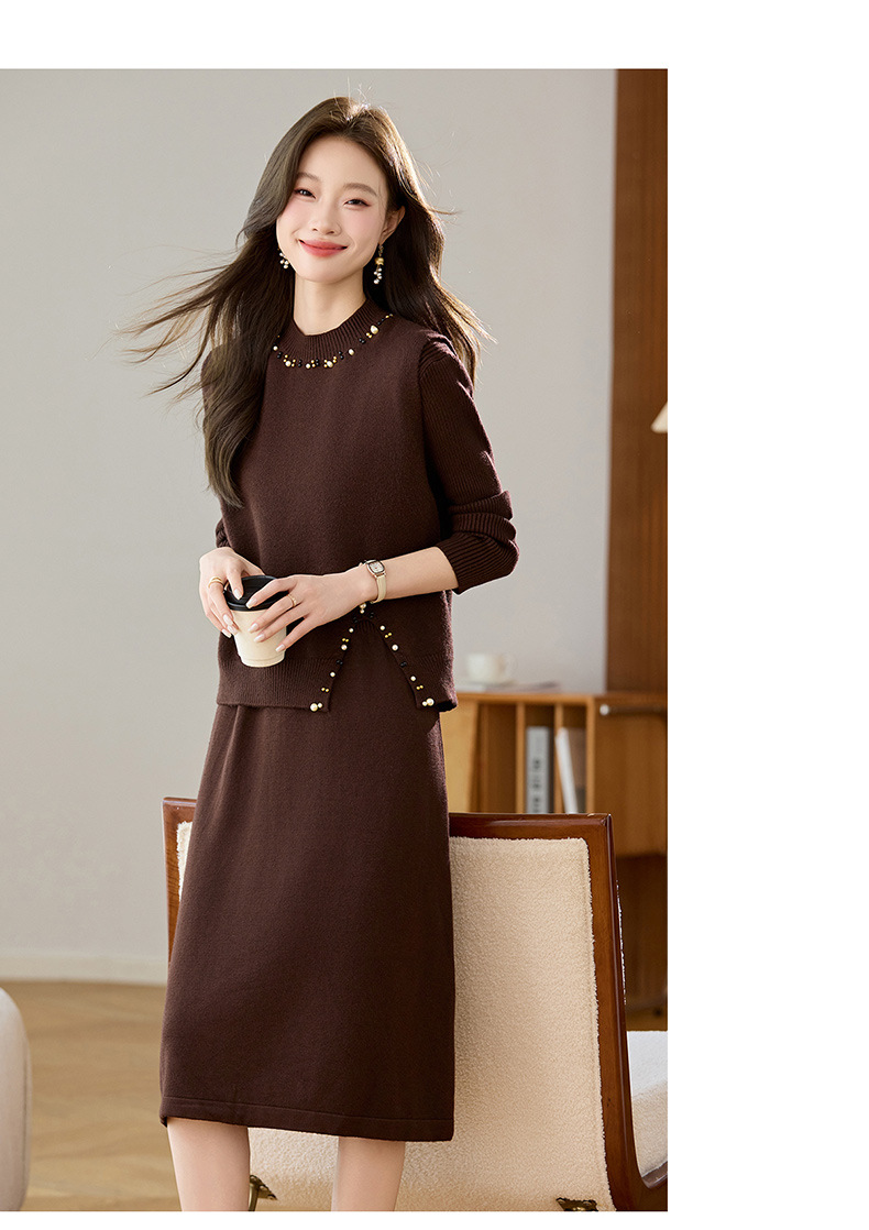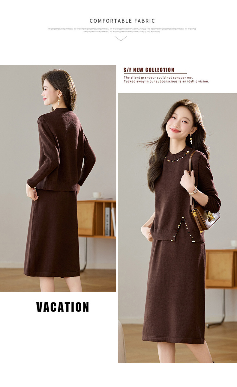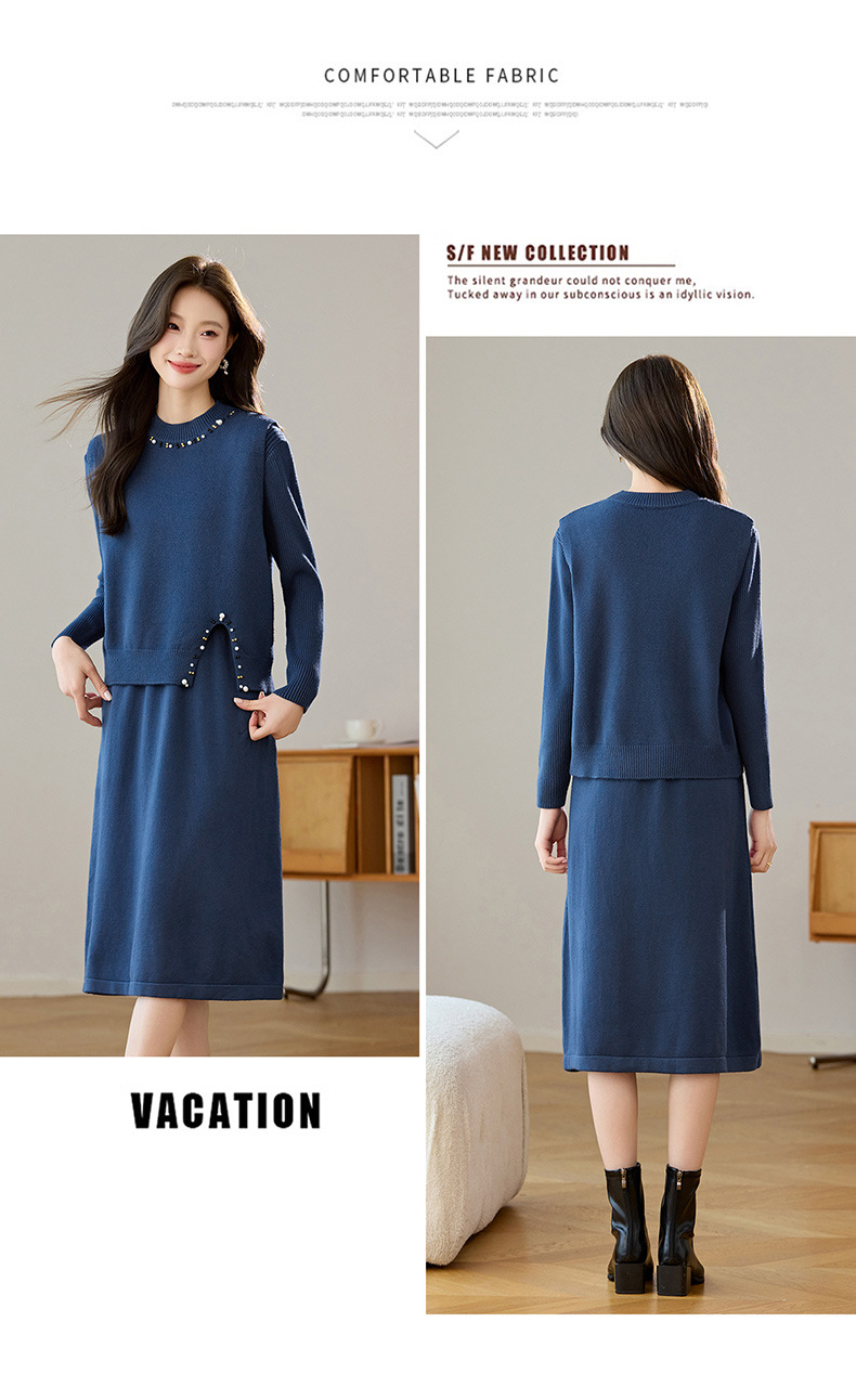雀说马夹背心女外搭两件套毛衣裙长款气质马甲连衣裙套装AL8502