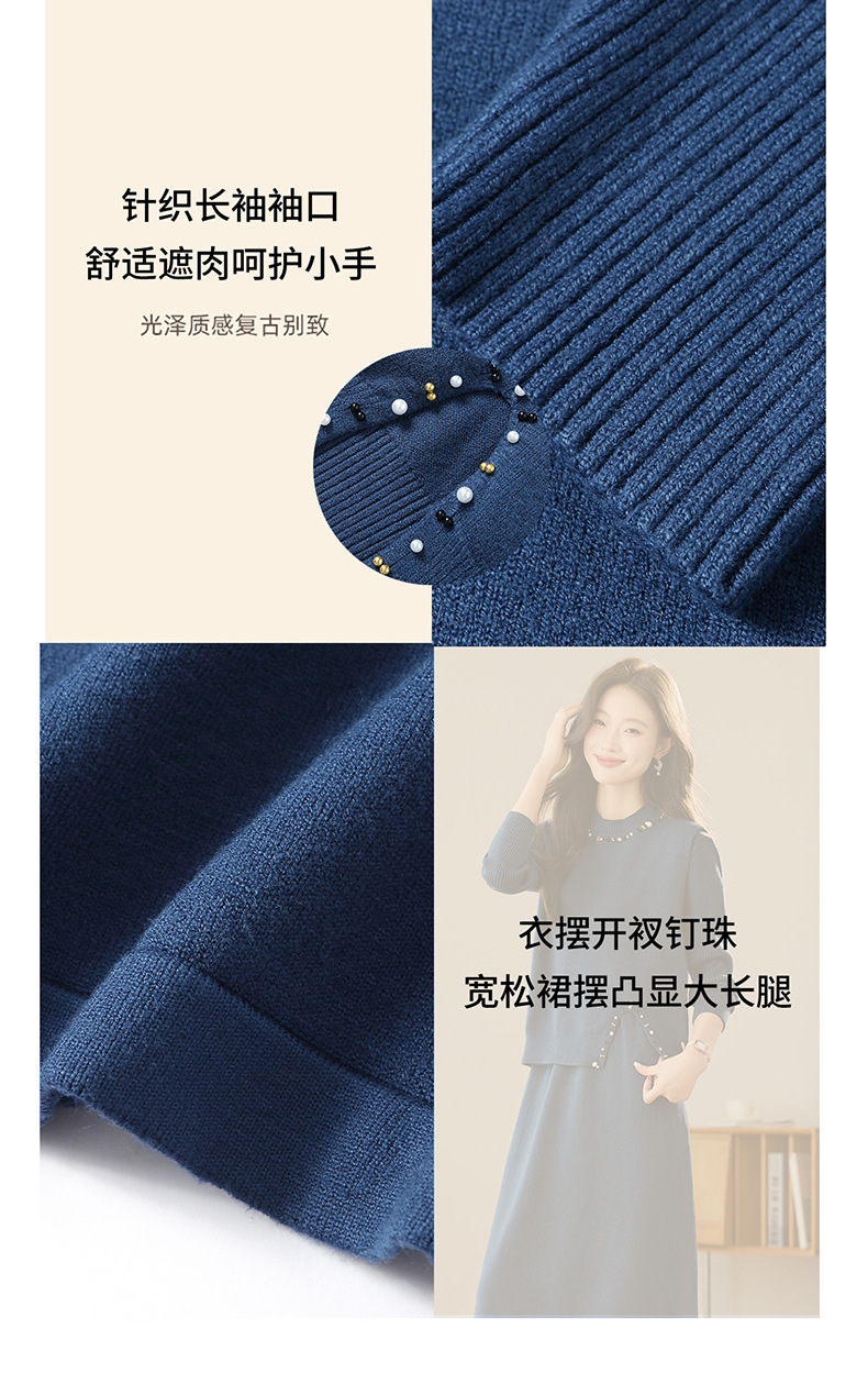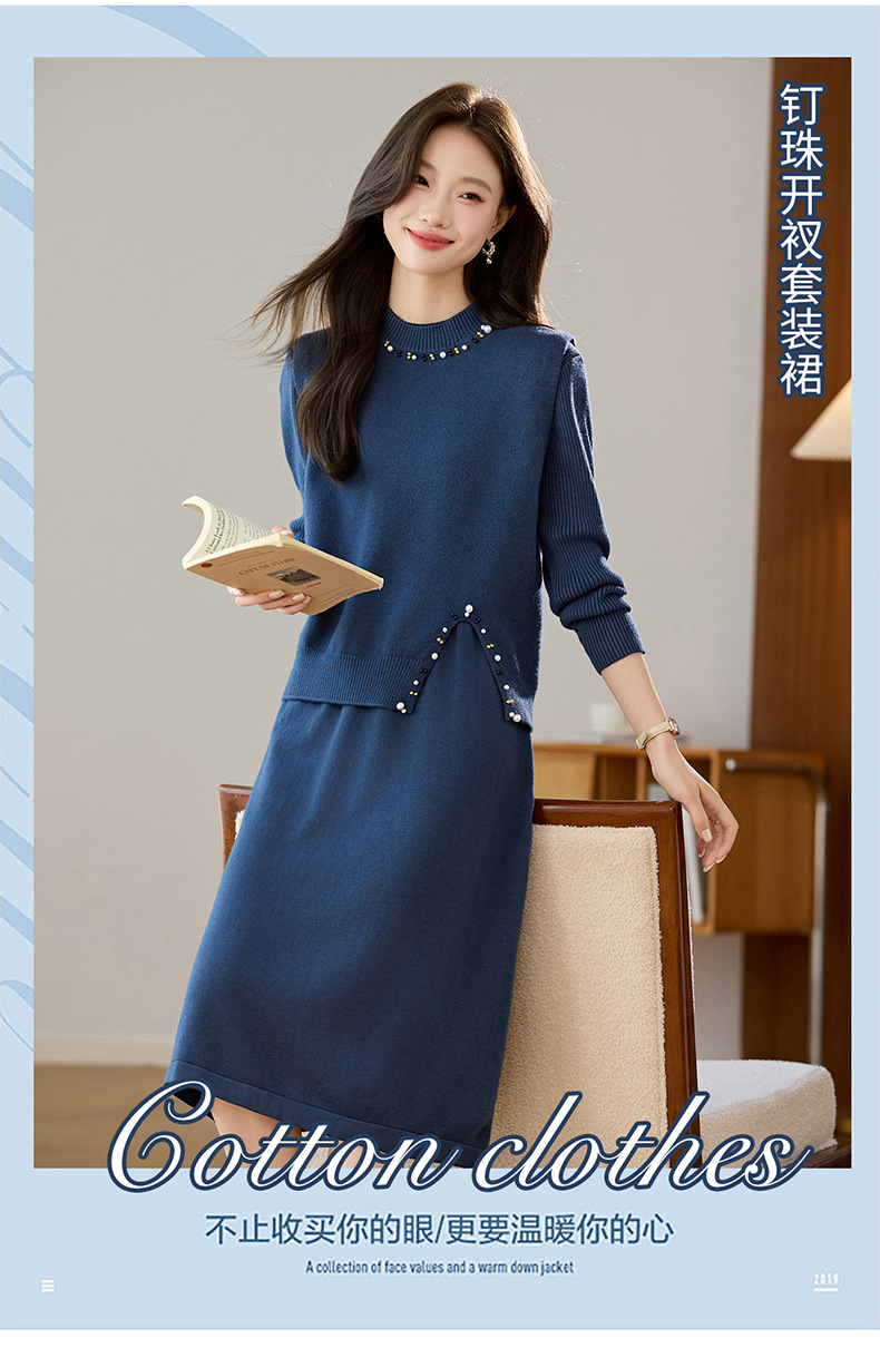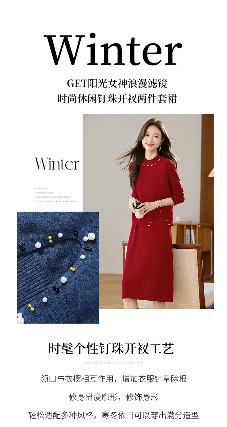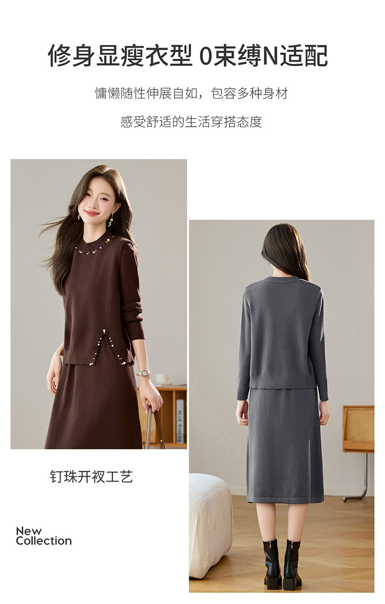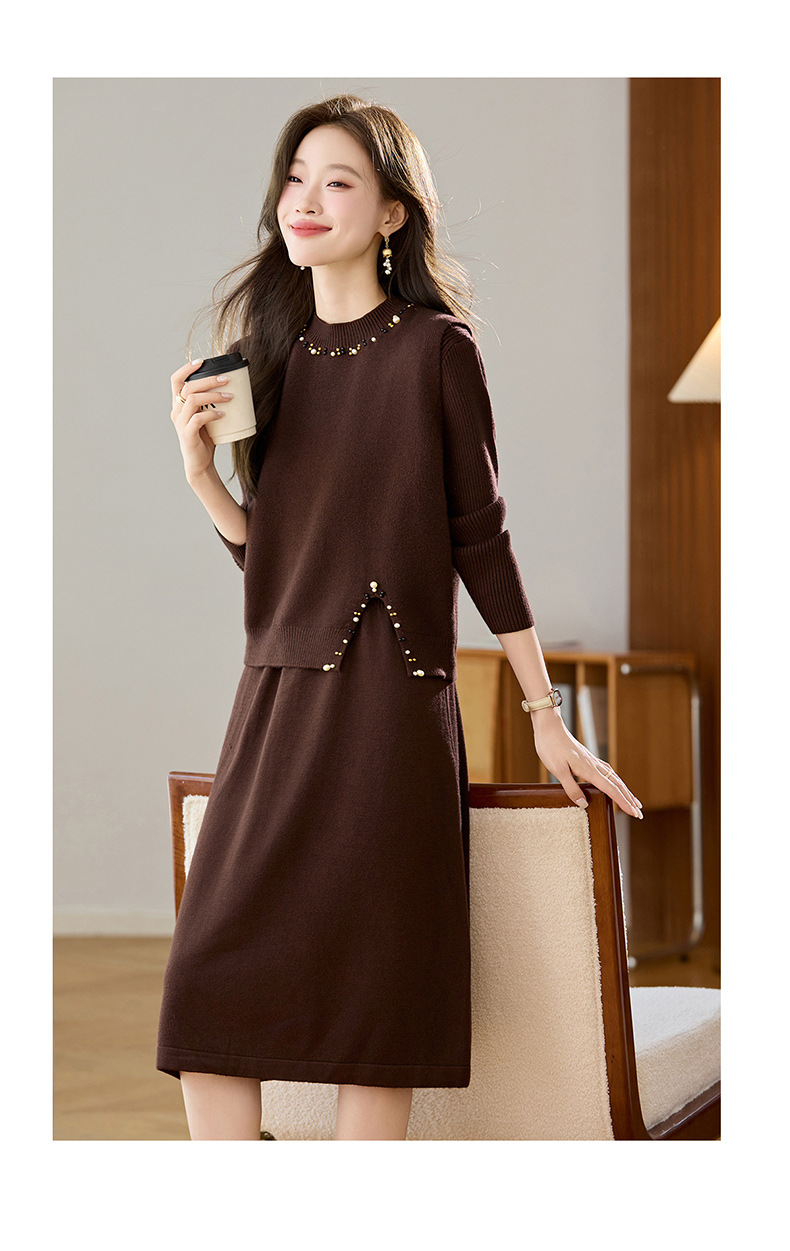 雀说马夹背心女外搭两件套毛衣裙长款气质马甲连衣裙套装AL8502