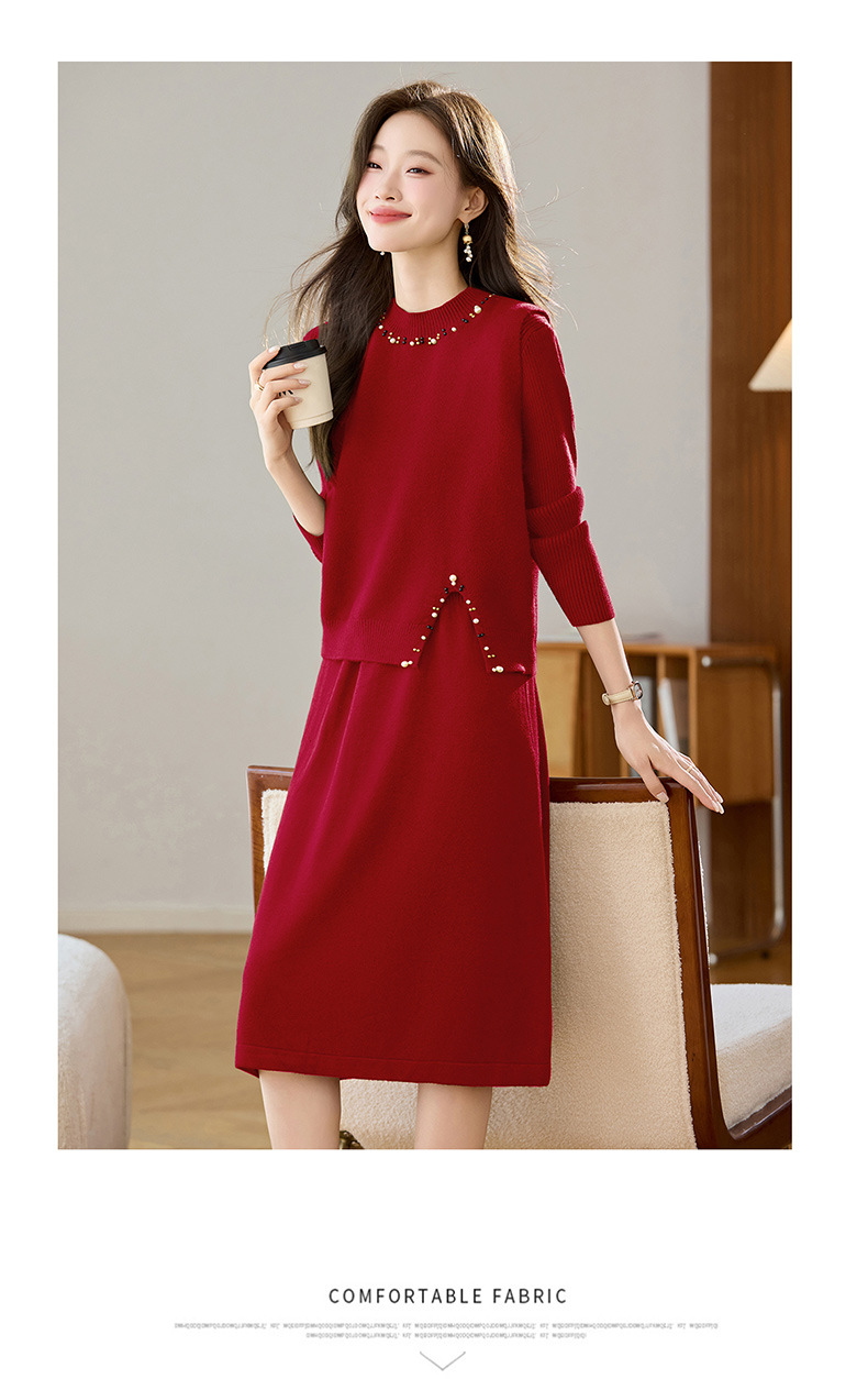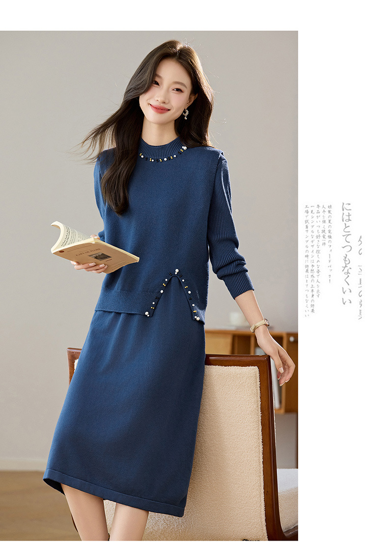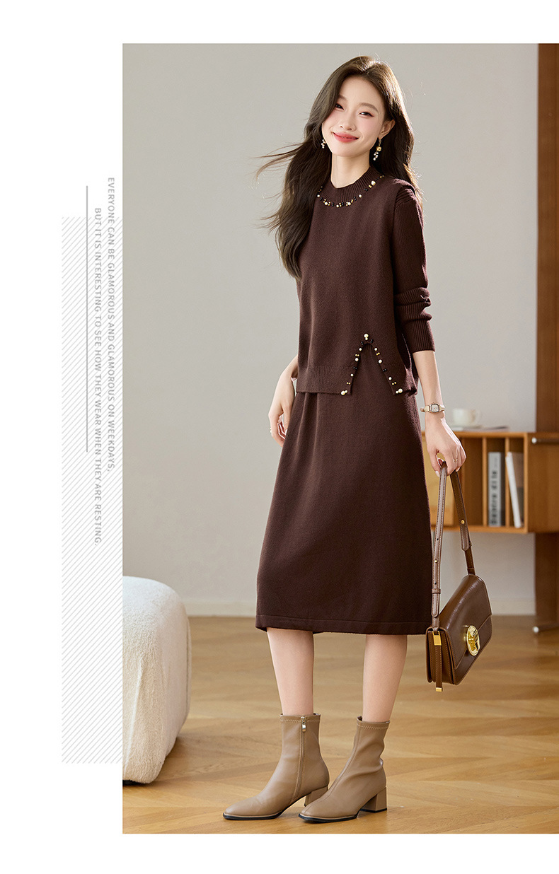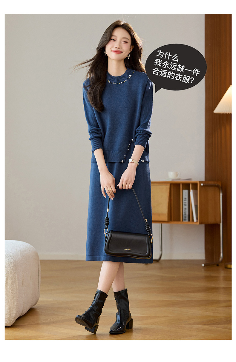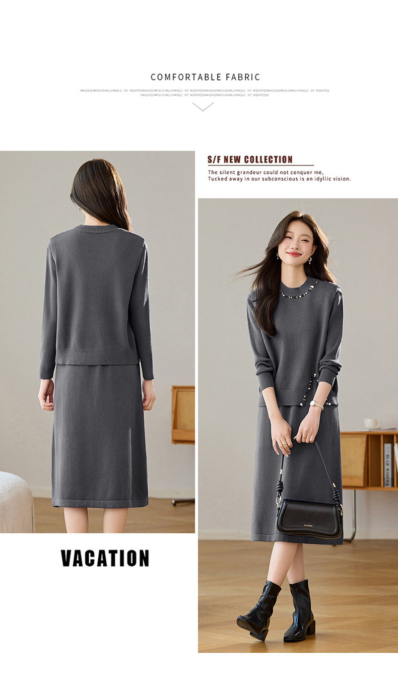 雀说马夹背心女外搭两件套毛衣裙长款气质马甲连衣裙套装AL8502