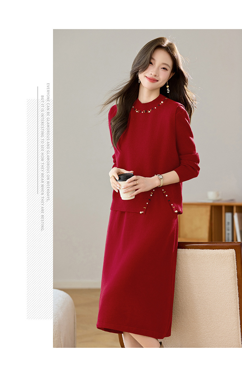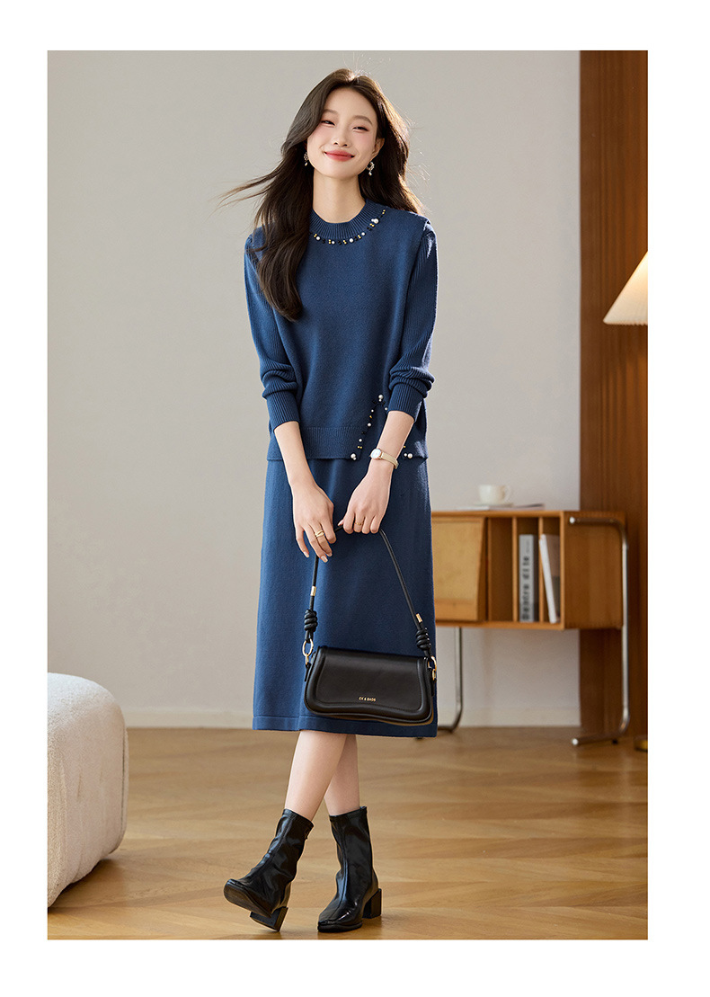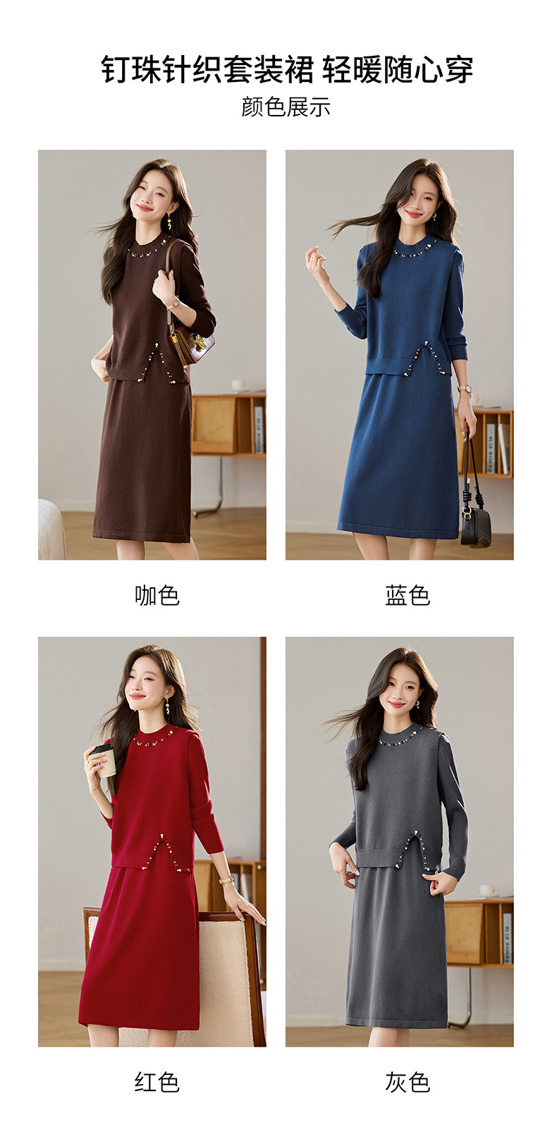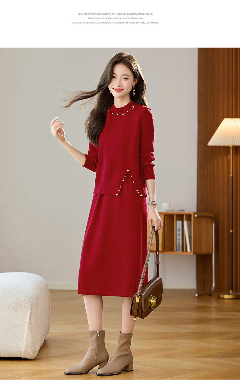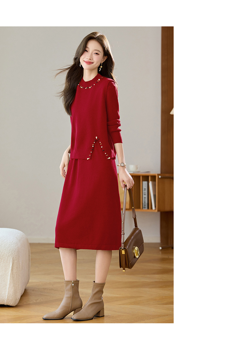 雀说马夹背心女外搭两件套毛衣裙长款气质马甲连衣裙套装AL8502