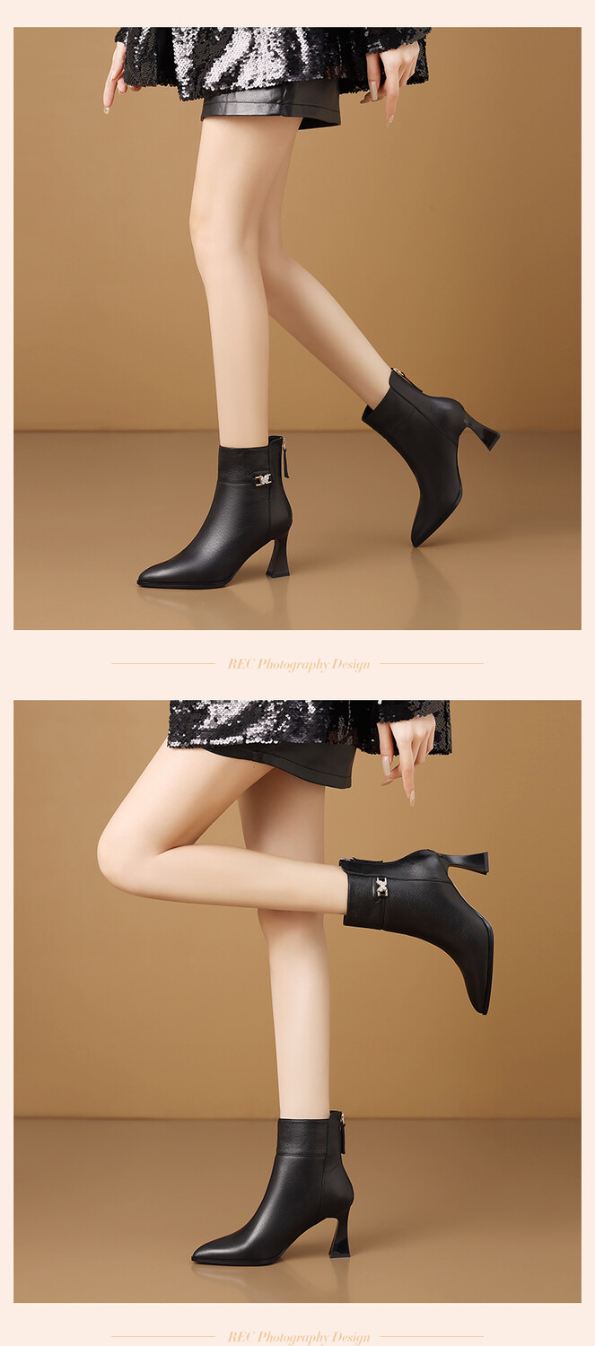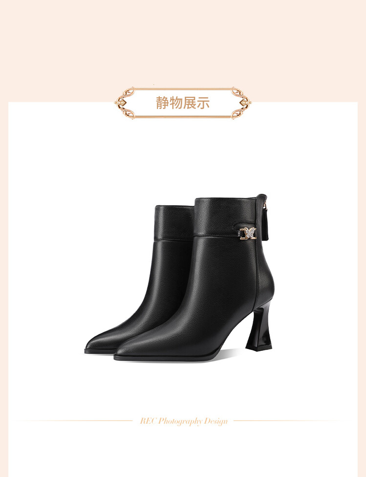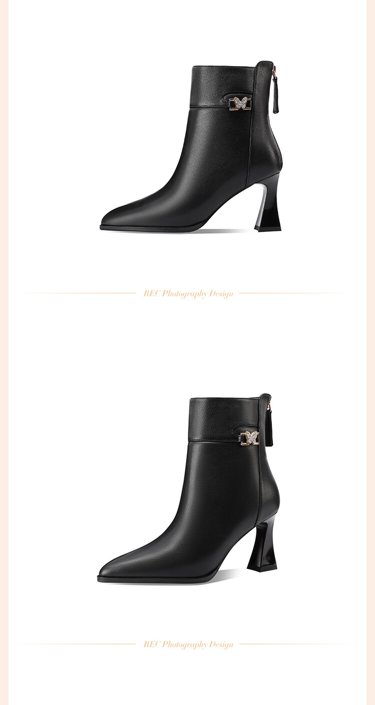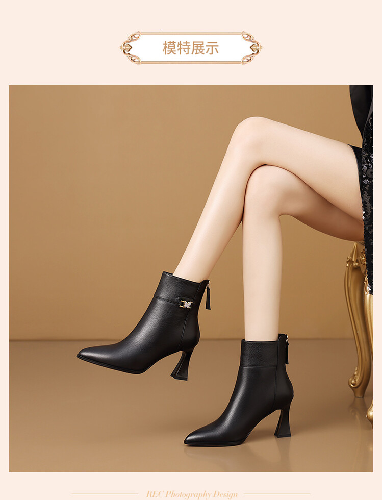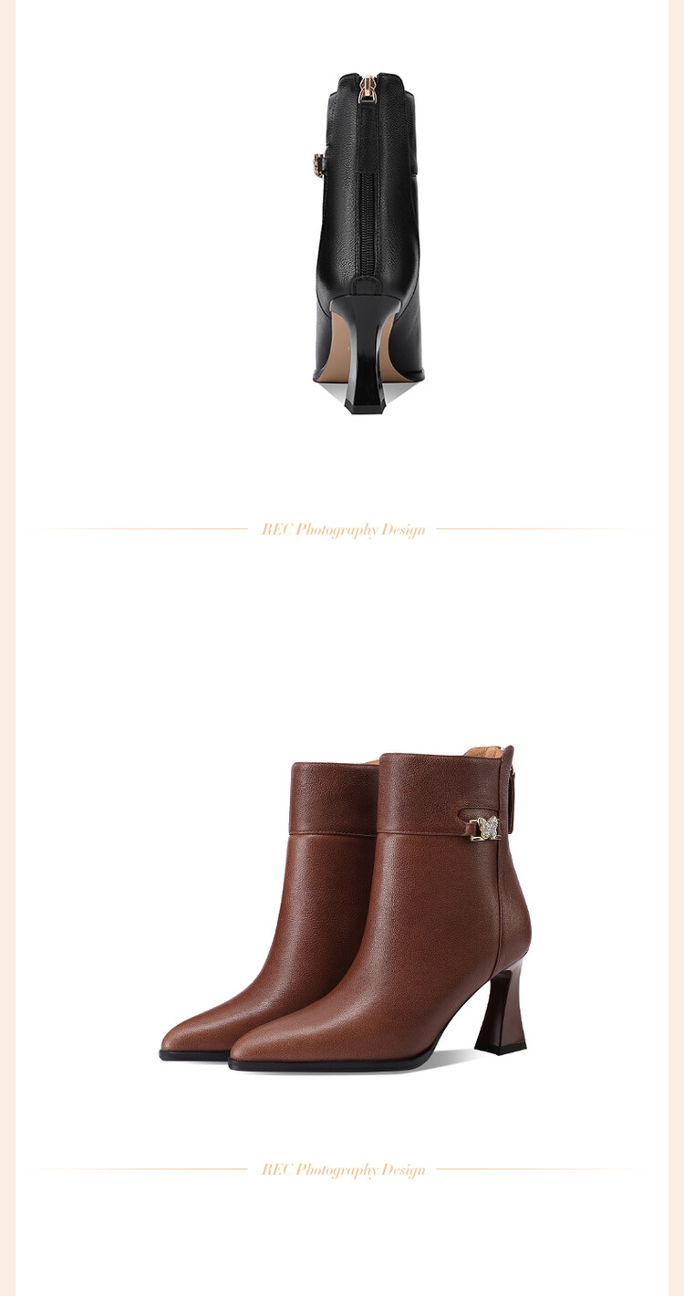 【预售5天】优雅气质时装靴秋冬季新款尖头粗跟高跟女靴金属扣短靴女HY&H3534