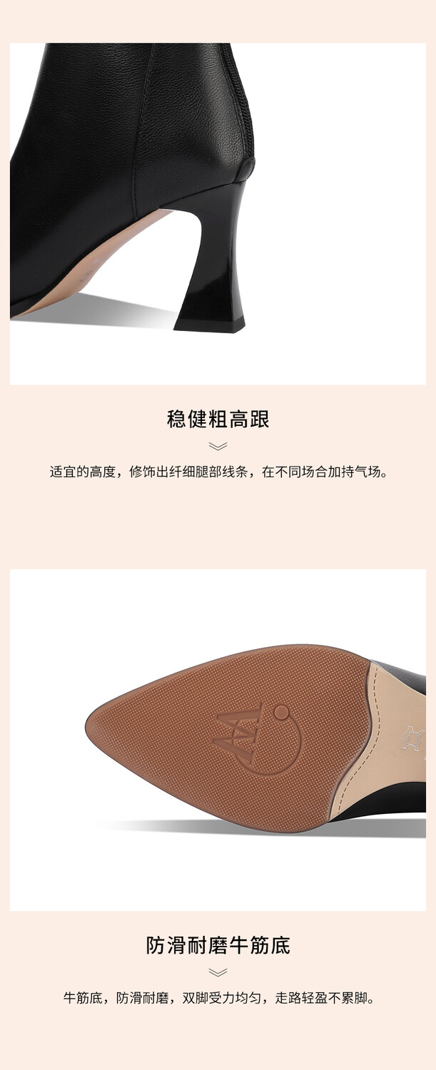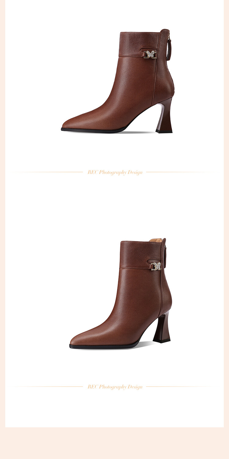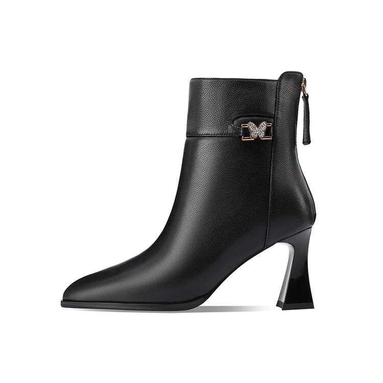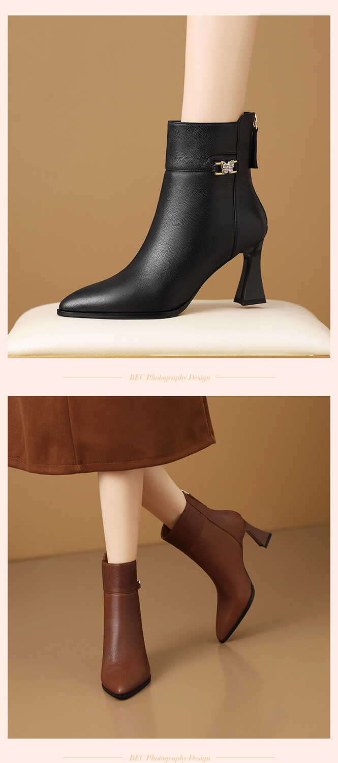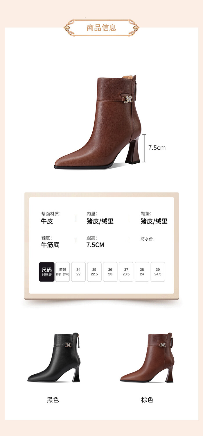 【预售5天】优雅气质时装靴秋冬季新款尖头粗跟高跟女靴金属扣短靴女HY&H3534
