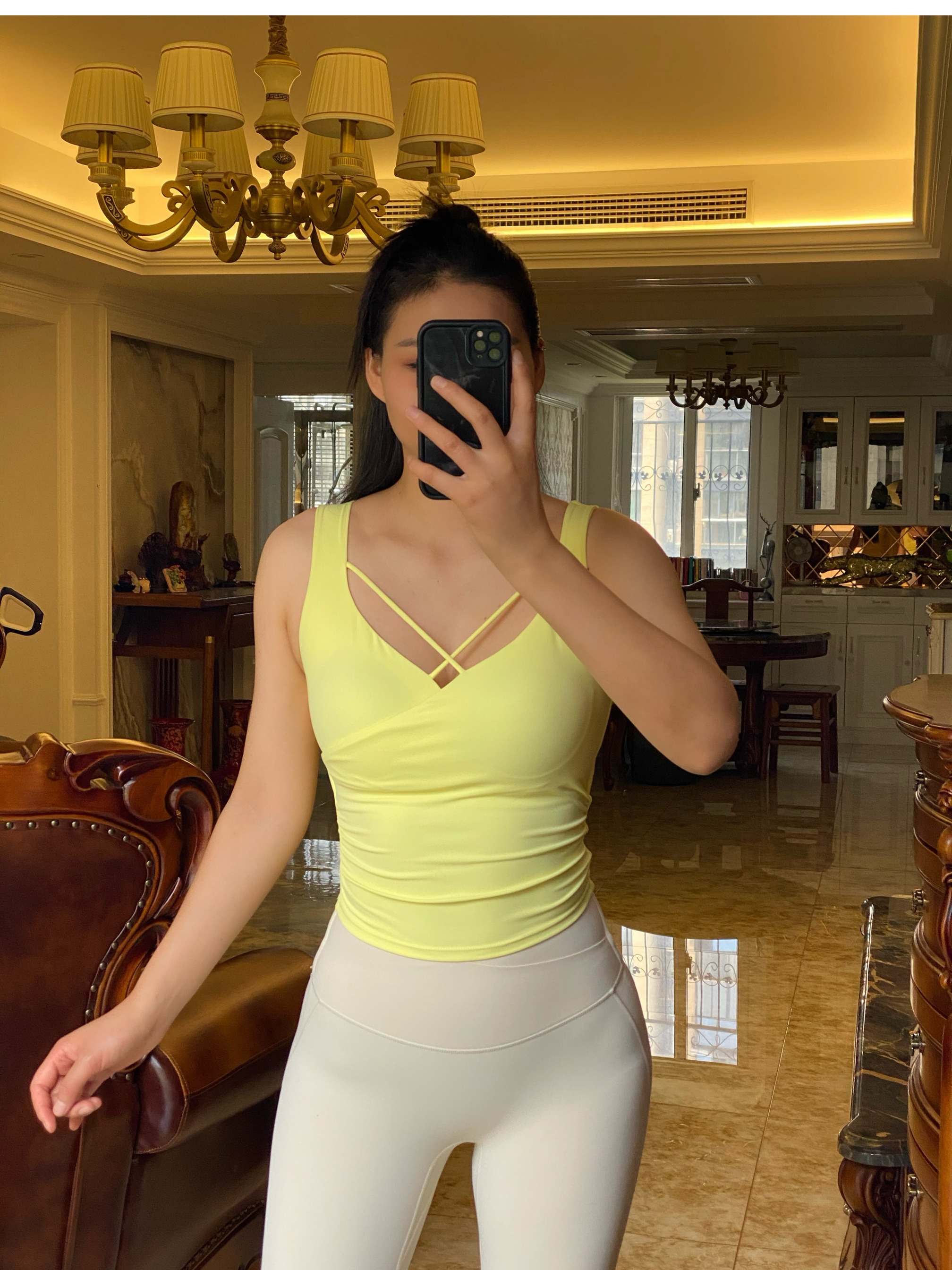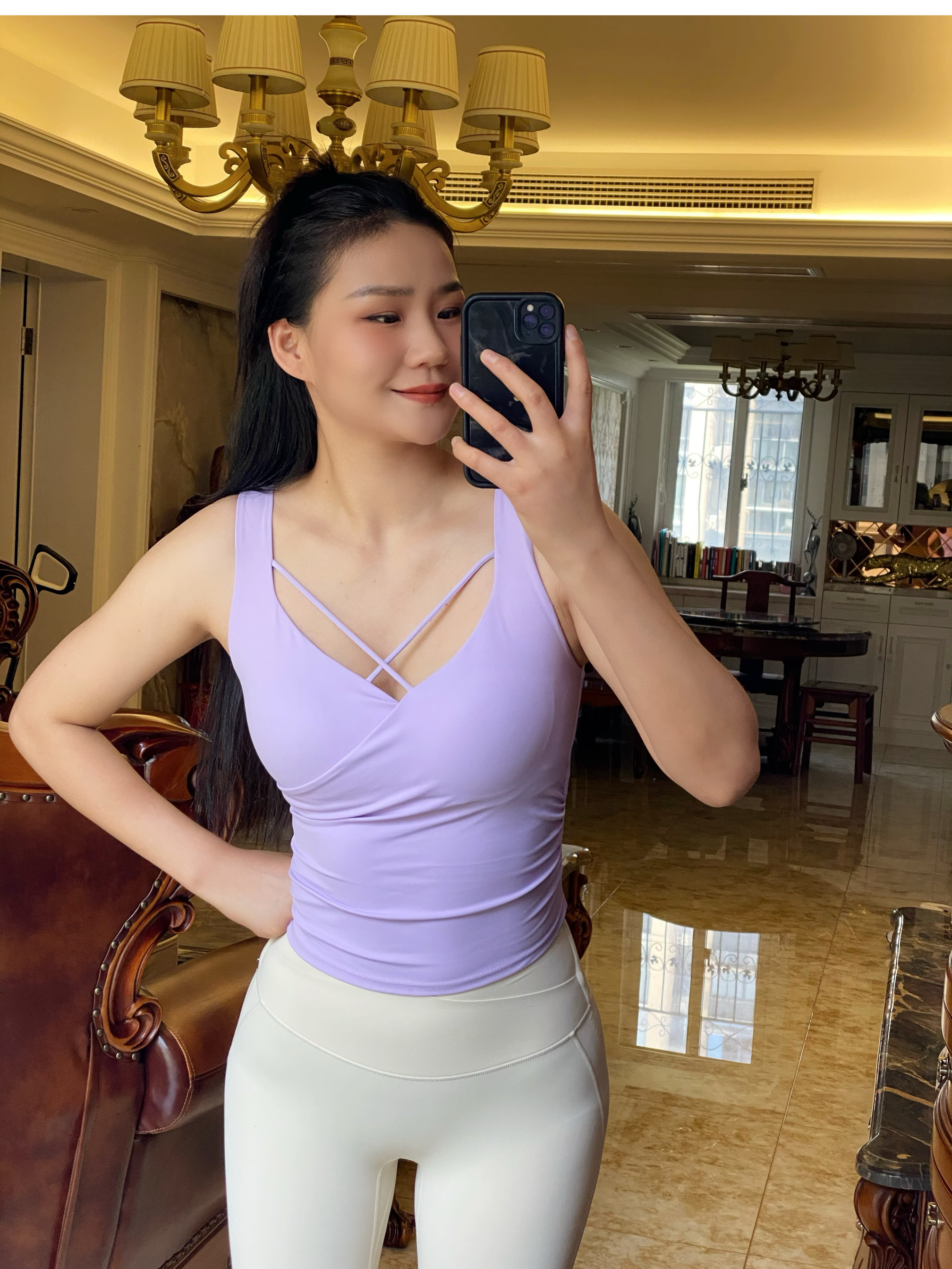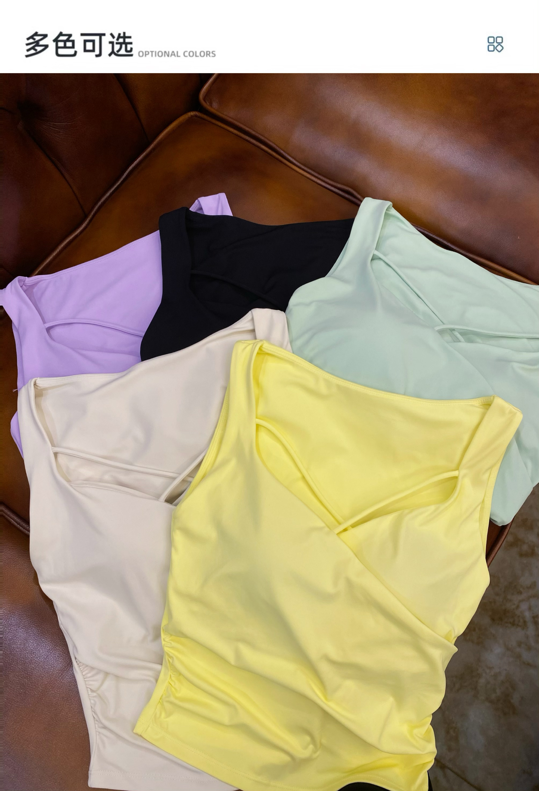 跃牌【海听系列】夏季纯欲辣妹无袖设计上衣前胸性感交叉瑜伽健身背心女XC78