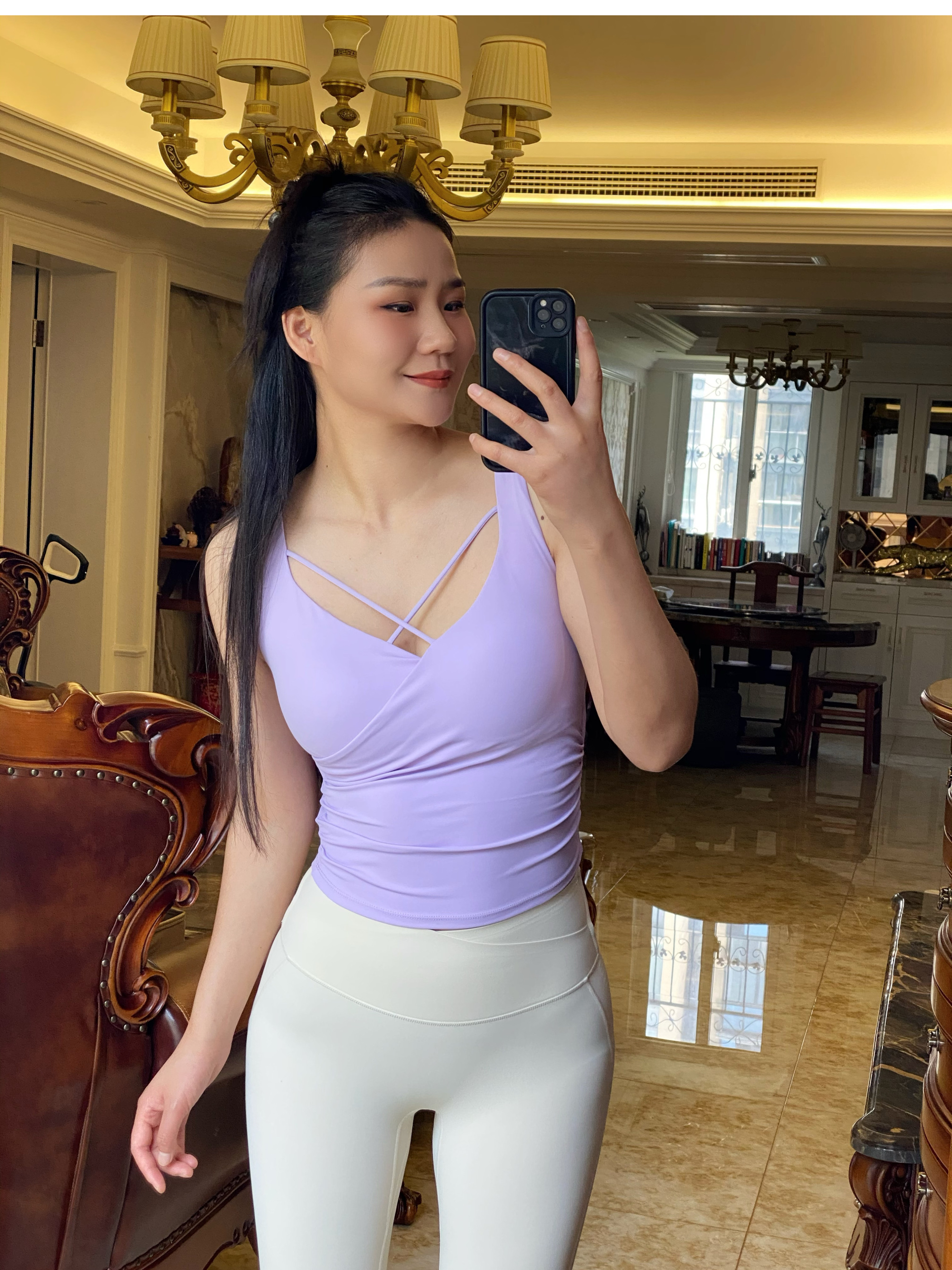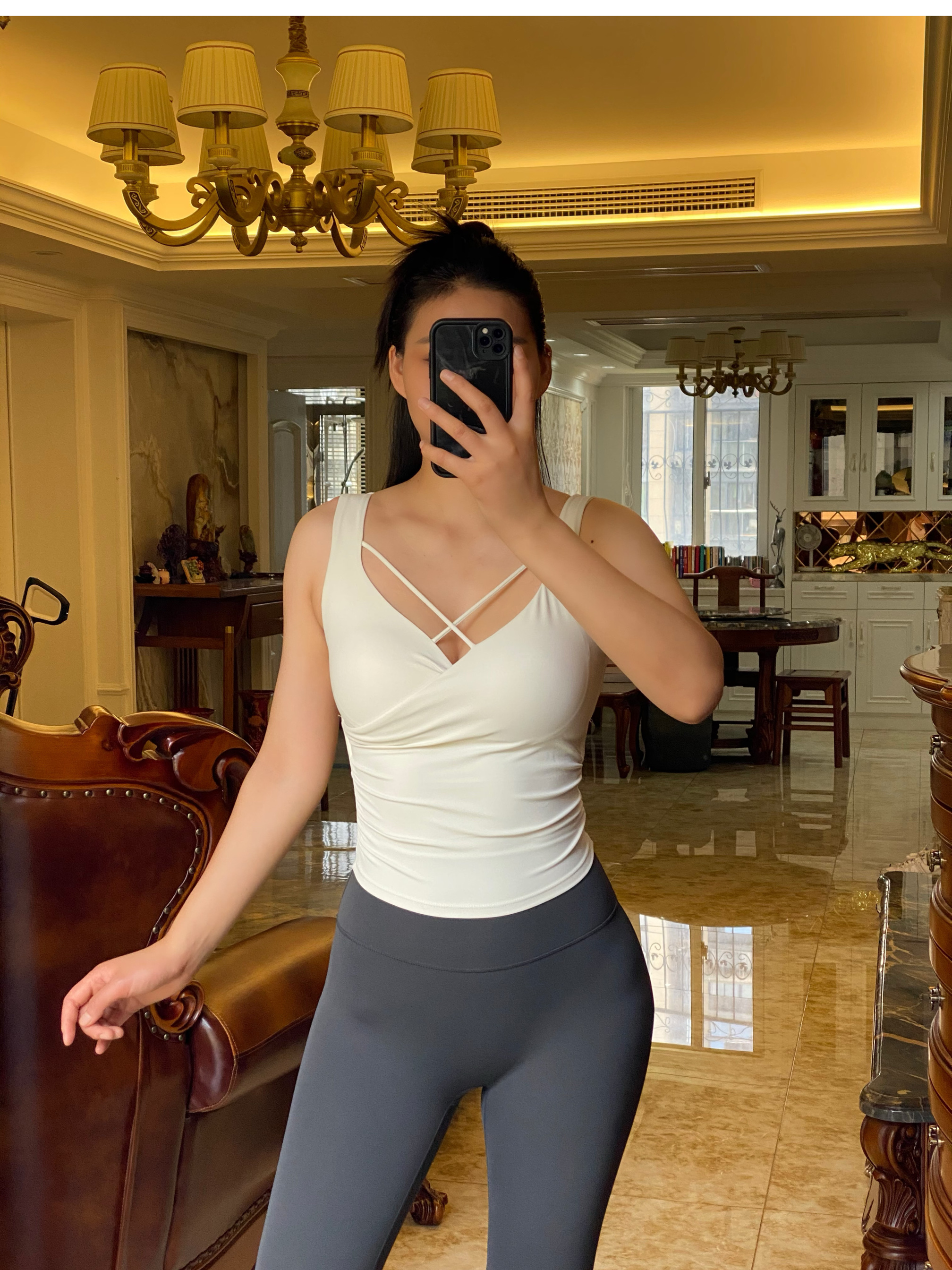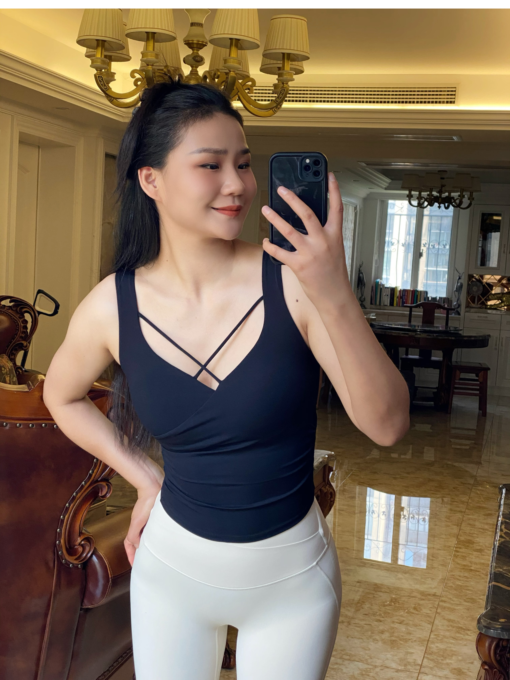 跃牌【海听系列】夏季纯欲辣妹无袖设计上衣前胸性感交叉瑜伽健身背心女XC78