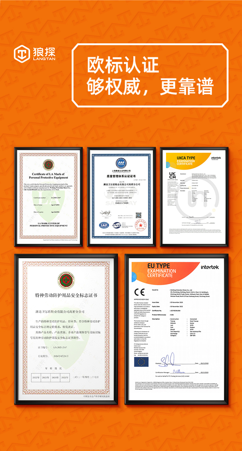 狼探新品劳保鞋男防水超轻透气款钢包头防砸防刺穿LA劳安认证超纤皮高端安全工作防护功能鞋N119LT