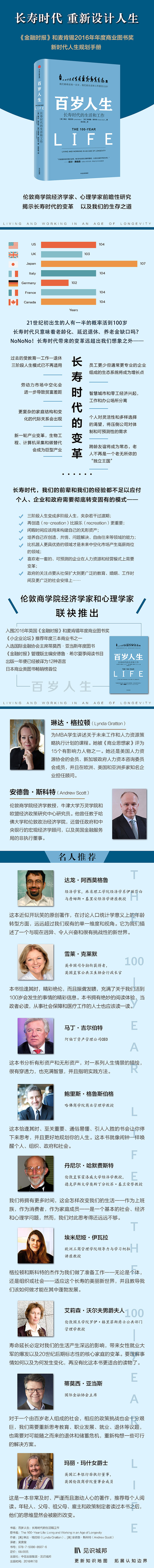 ■主流媒体和学界、商界、政界人士一致好评。《经济学人》《伦敦商学院评论》《卫报》《哈佛商业评论》《财富》《新科学家》《商业记者》以及美国广播公司和小企业趋势网站等媒体热烈推荐。《伦敦商学院评论》书评如此总结本书:“《百岁人生》为每一个生活在其中的个人,为全力一搏从而扭转现状的企业,为不得不应对长寿引发后果的政府描绘了一幅巨大的世界图景。”