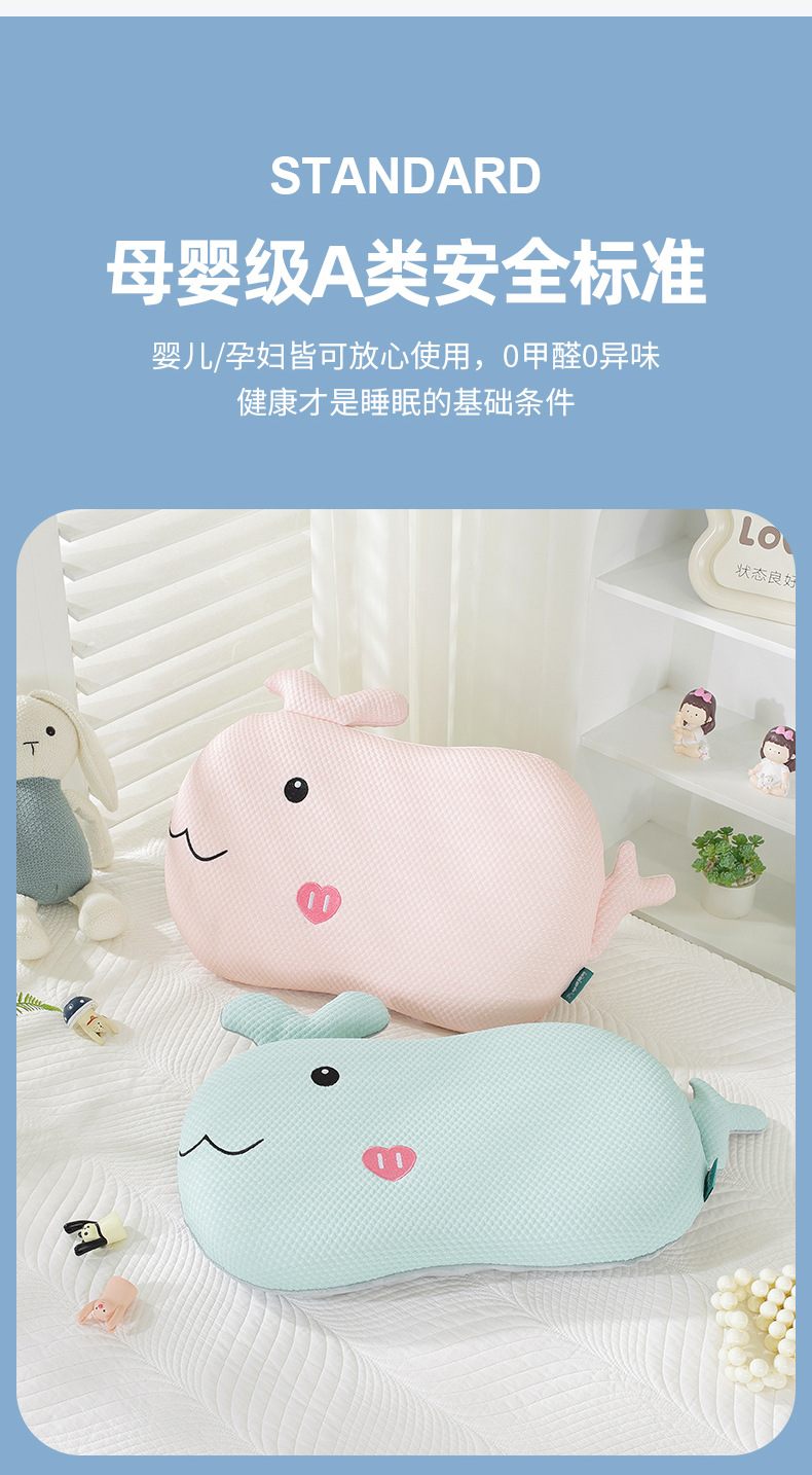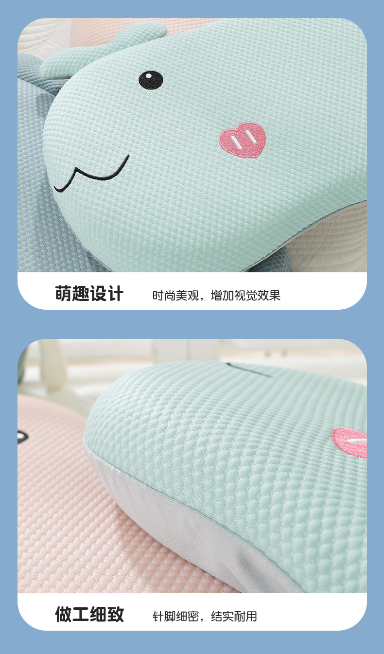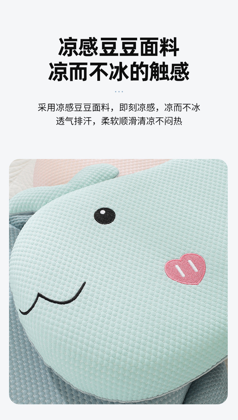 【超值买1送1 两件随时替换 】凉而不冰,透气排汗!夏天儿童护颈椎记忆棉枕头冰丝,母婴级A类3D豆豆按摩颗粒夏季凉枕学生 家用带枕套 猫肚记忆枕!-QQ