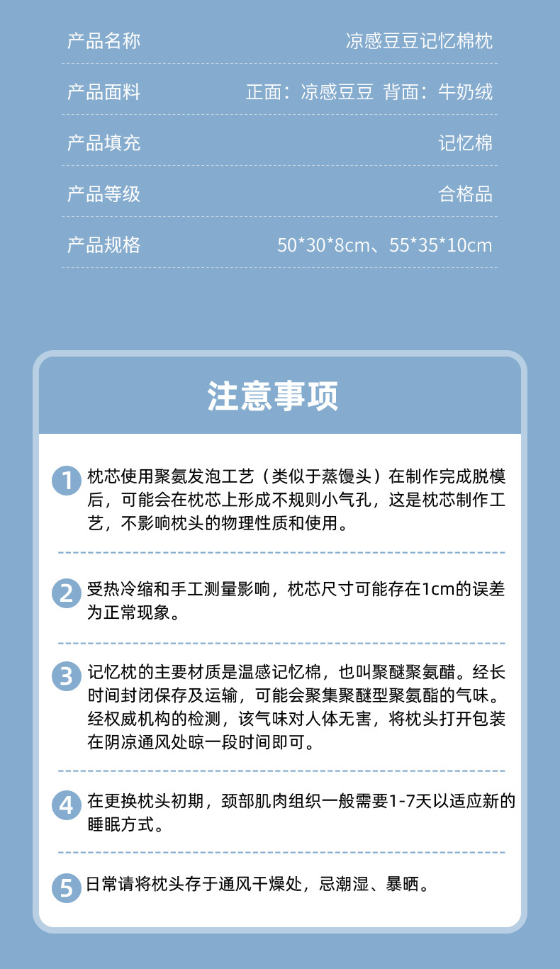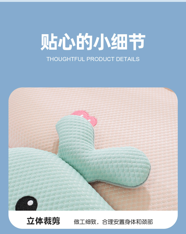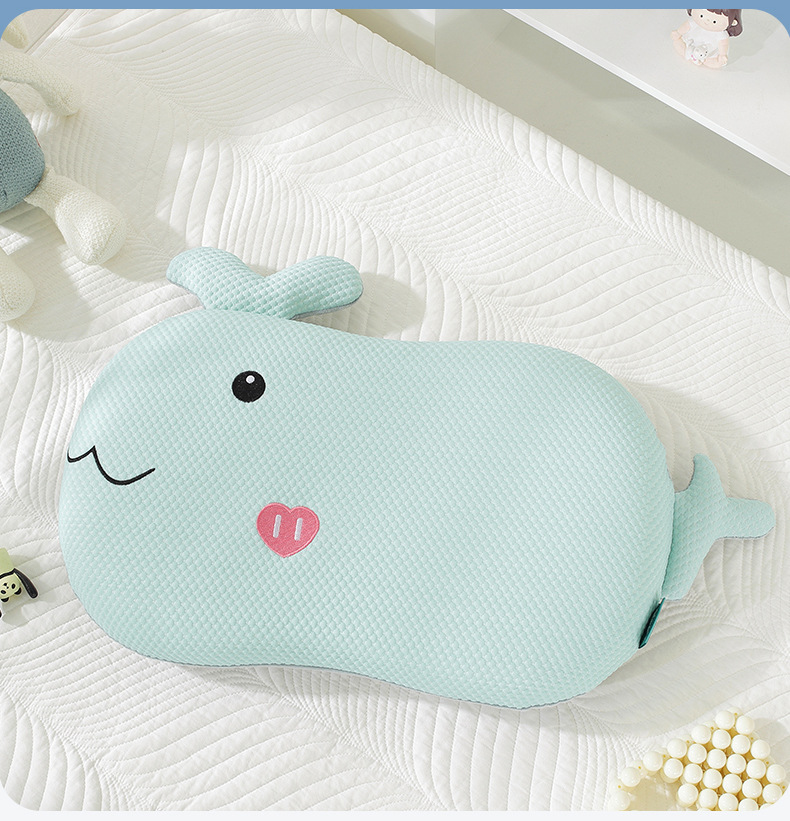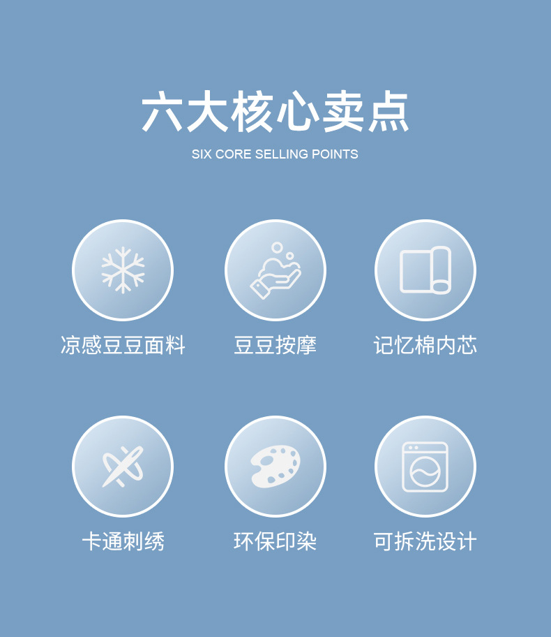【超值买1送1 两件随时替换 】凉而不冰,透气排汗!夏天儿童护颈椎记忆棉枕头冰丝,母婴级A类3D豆豆按摩颗粒夏季凉枕学生 家用带枕套 猫肚记忆枕!-QQ