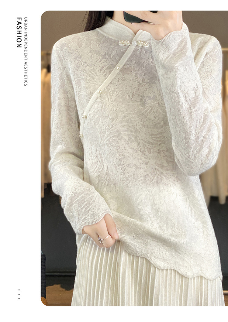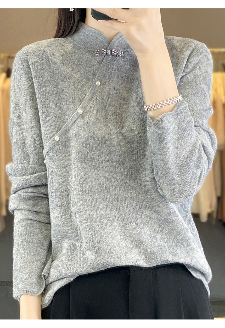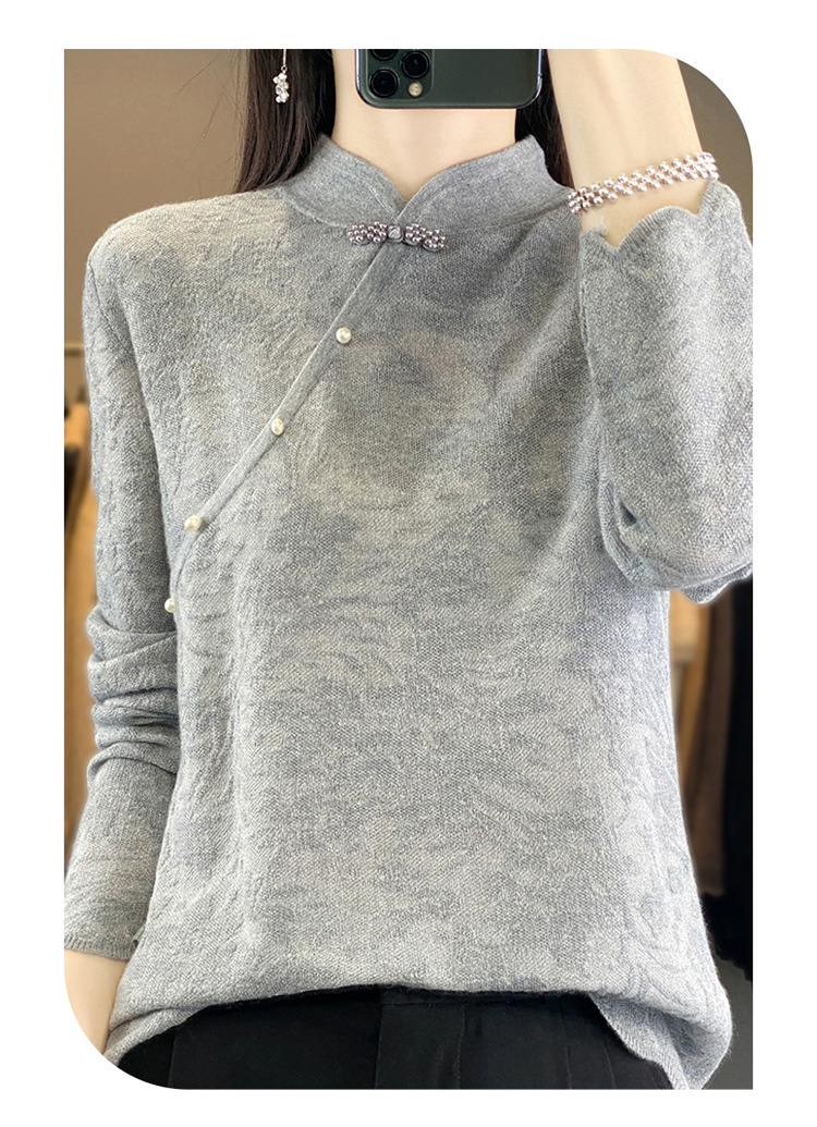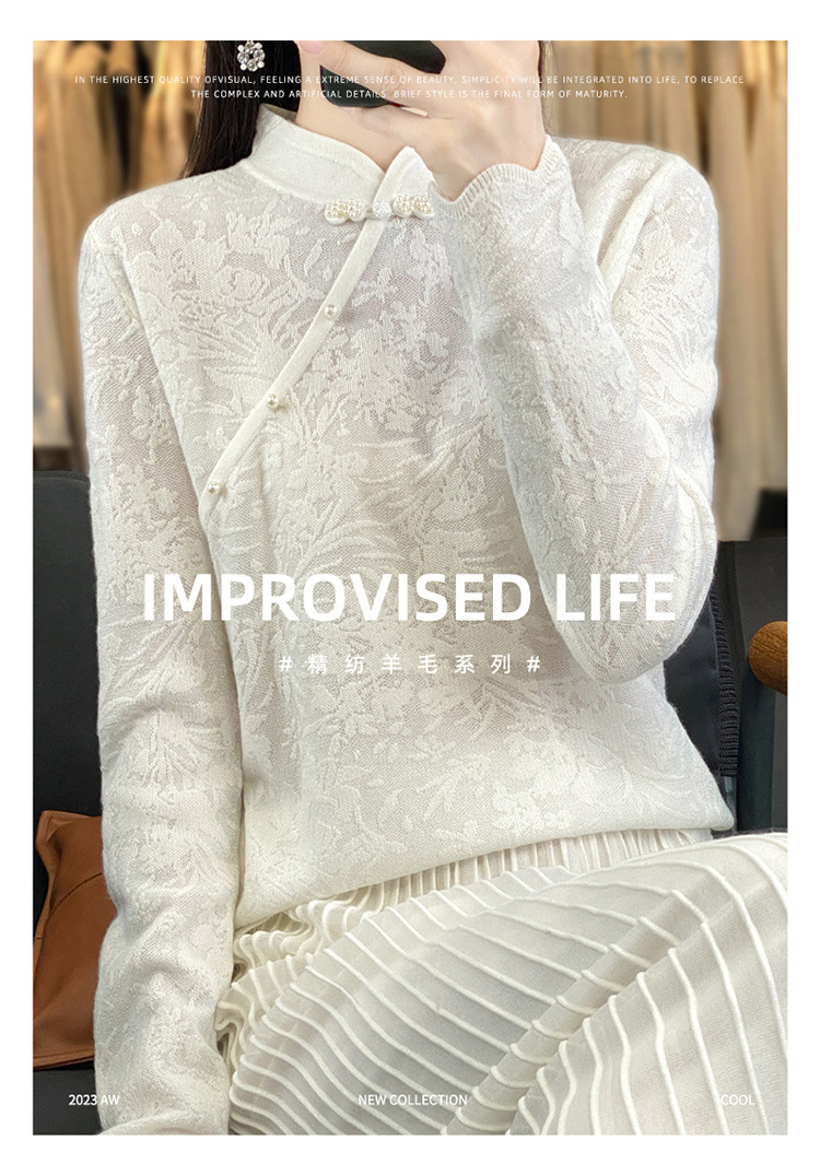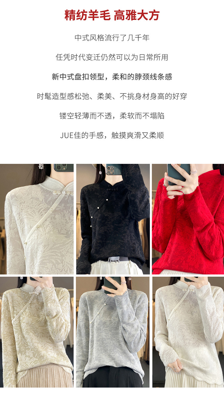 雀说 中式春秋内搭半打底衫上衣桑蚕丝精纺羊毛针织衫毛衣女4ZF-012910