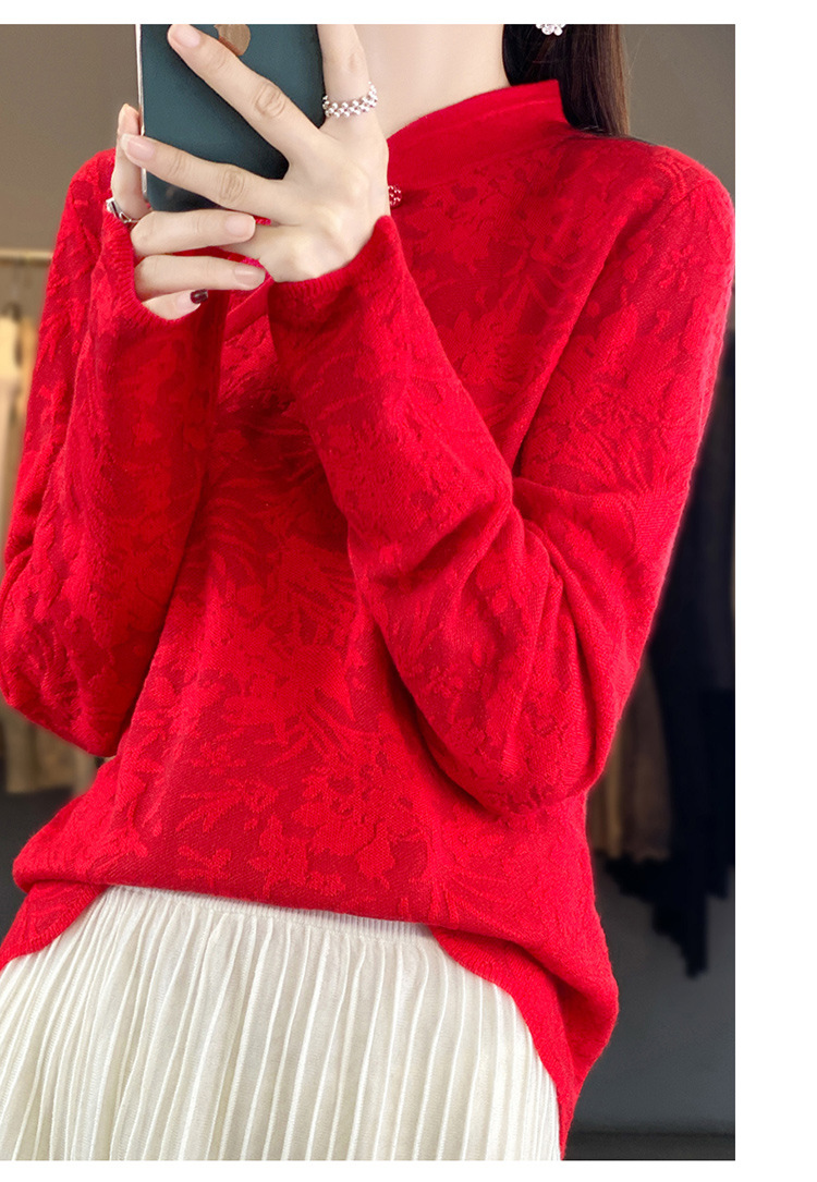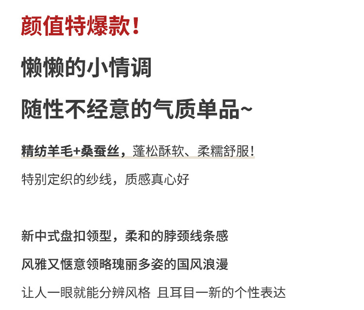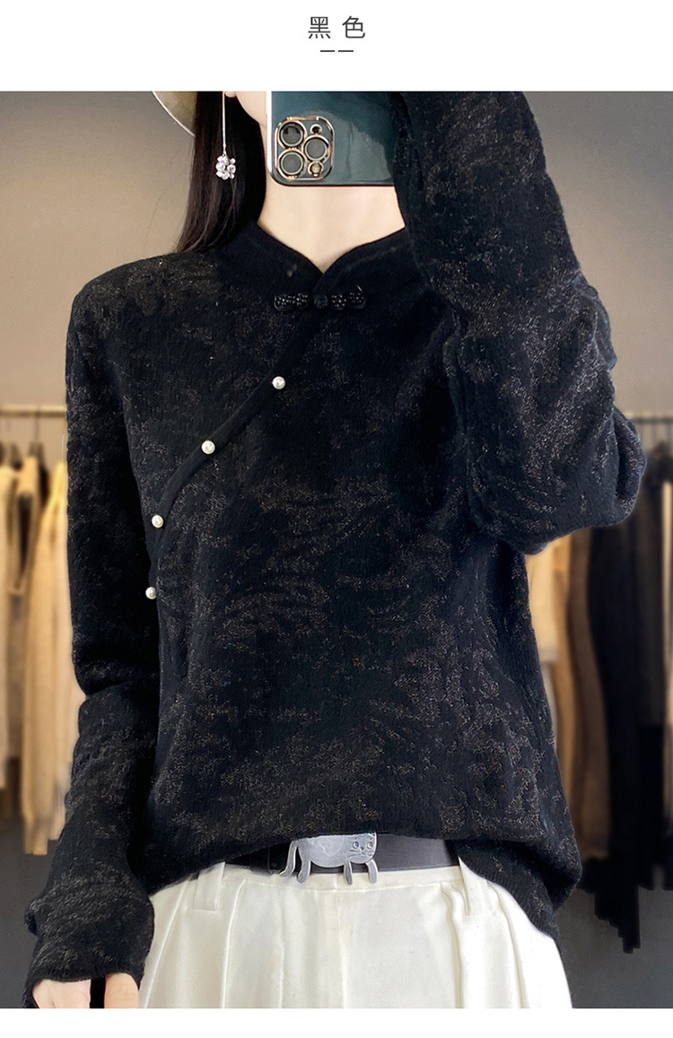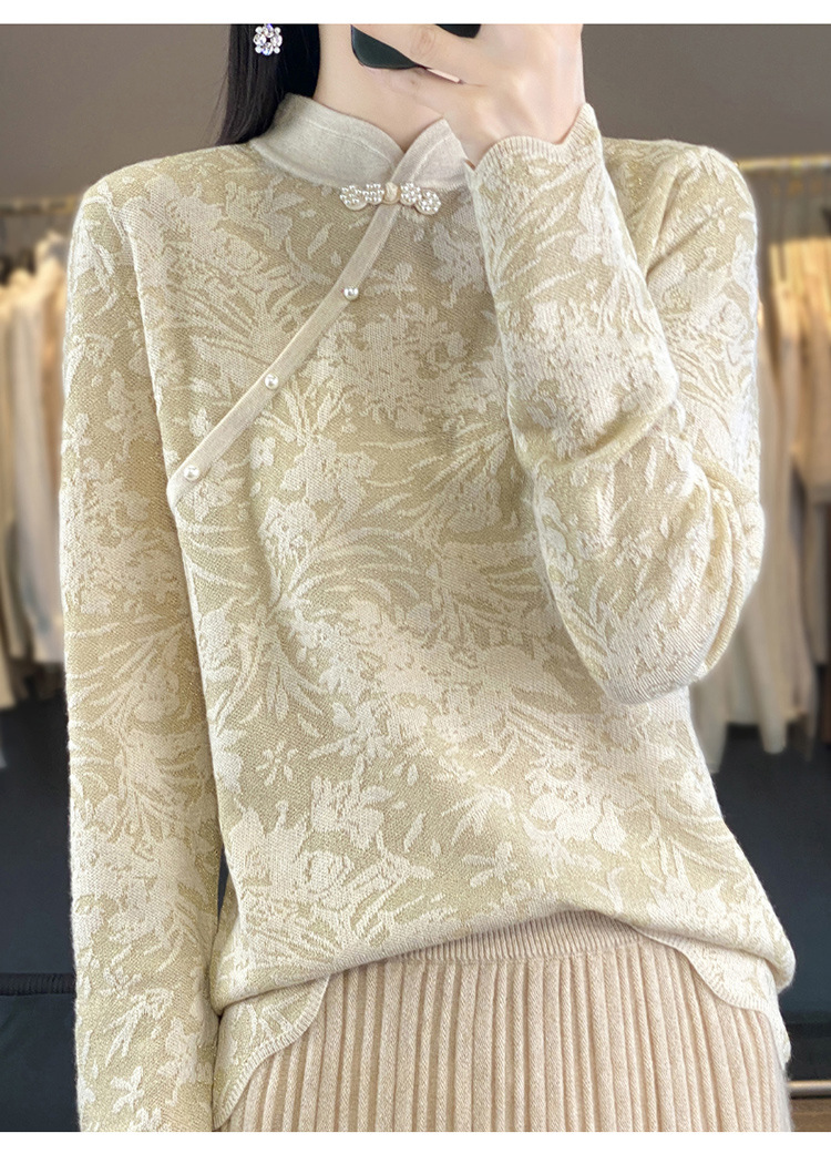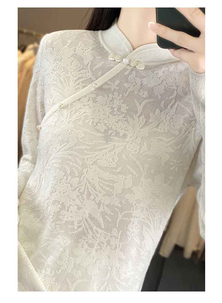 雀说 中式春秋内搭半打底衫上衣桑蚕丝精纺羊毛针织衫毛衣女4ZF-012910