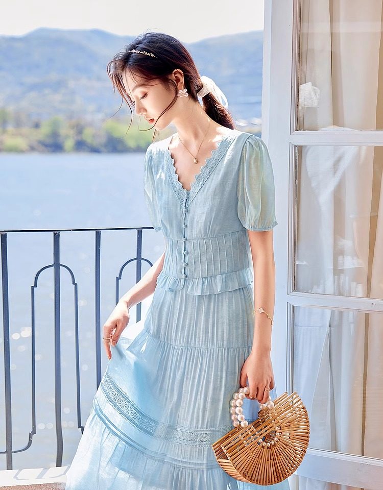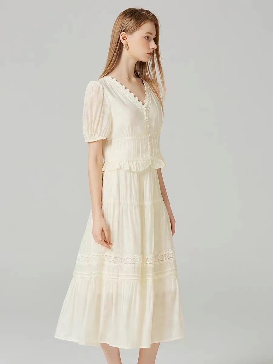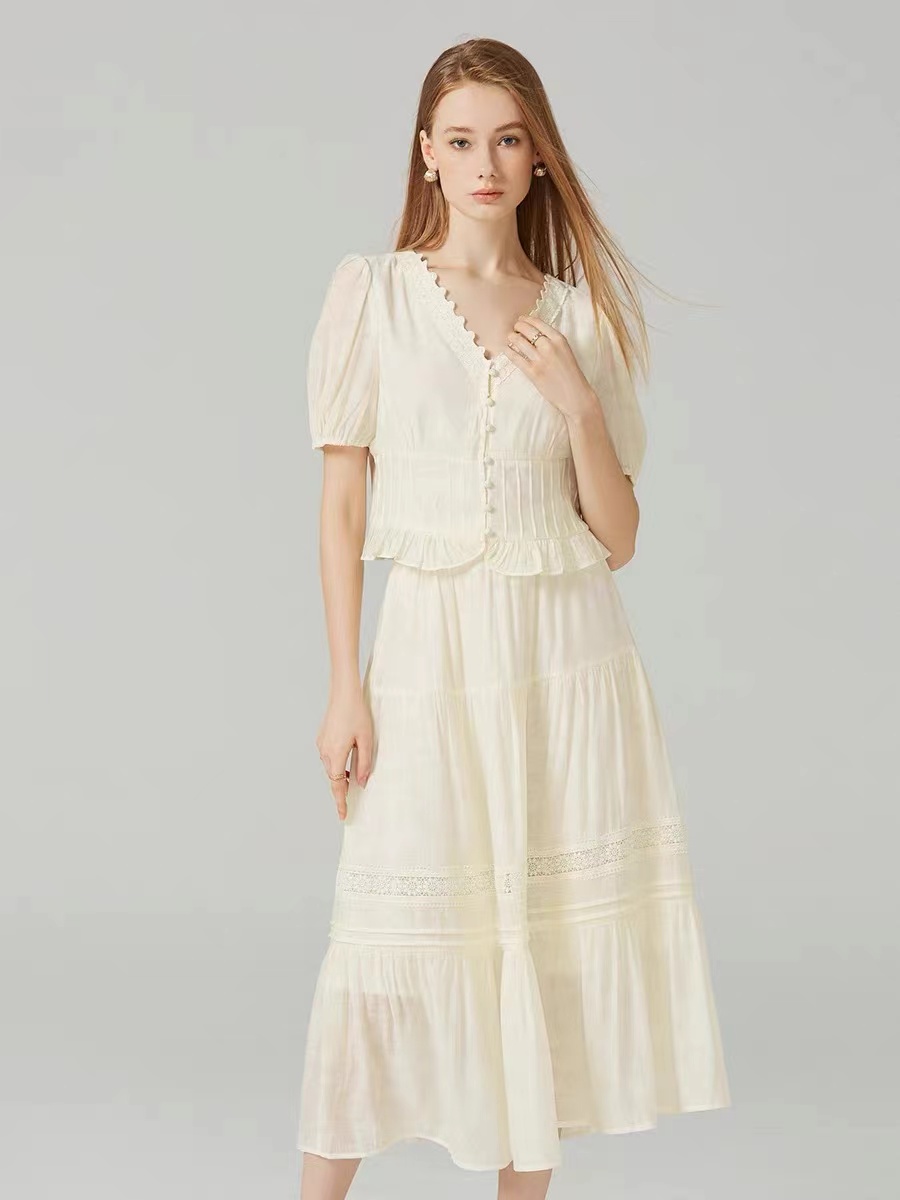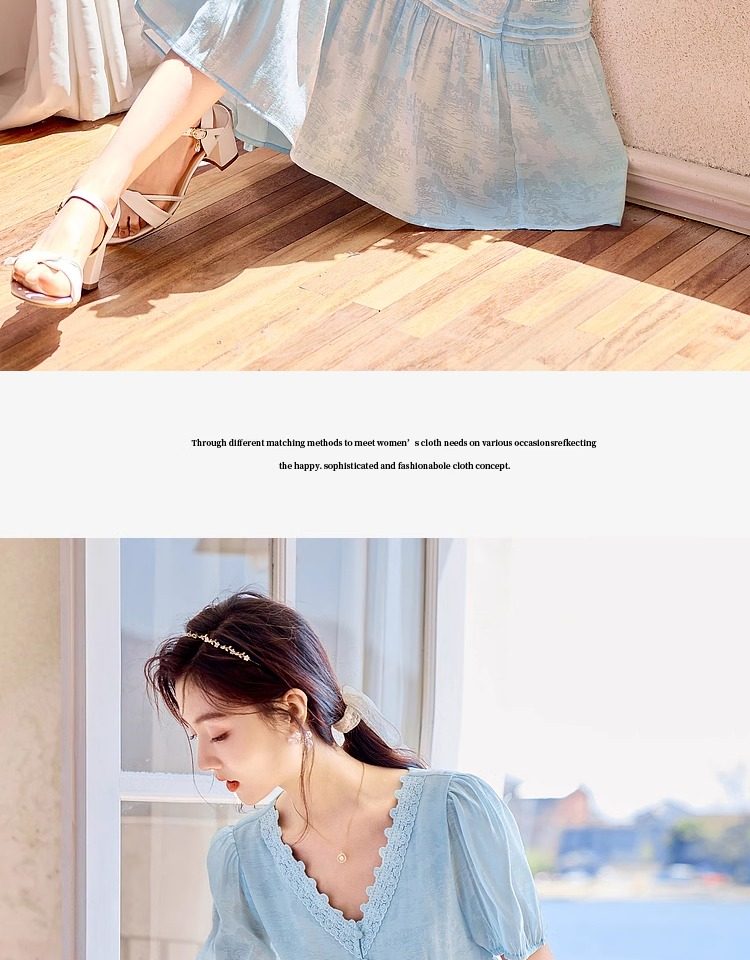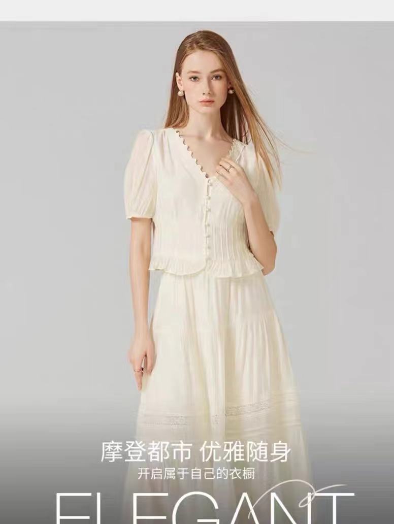 超美推荐(套装)v领25082花边设计感暗花套装女新款两件套-喜出