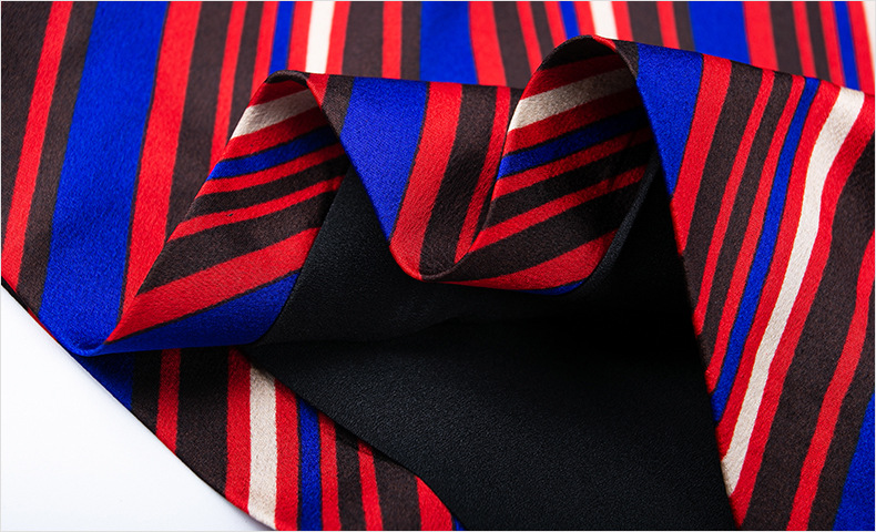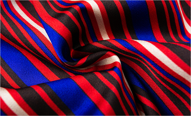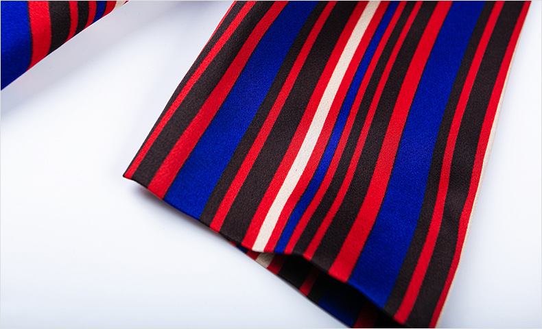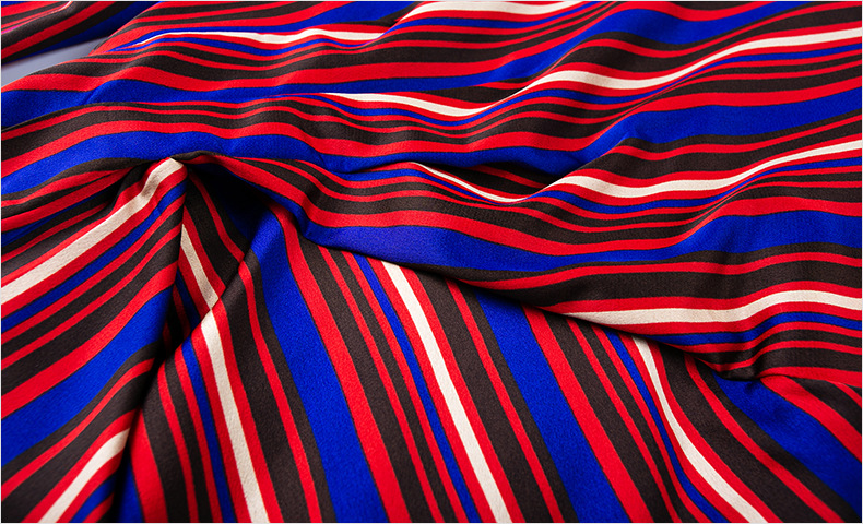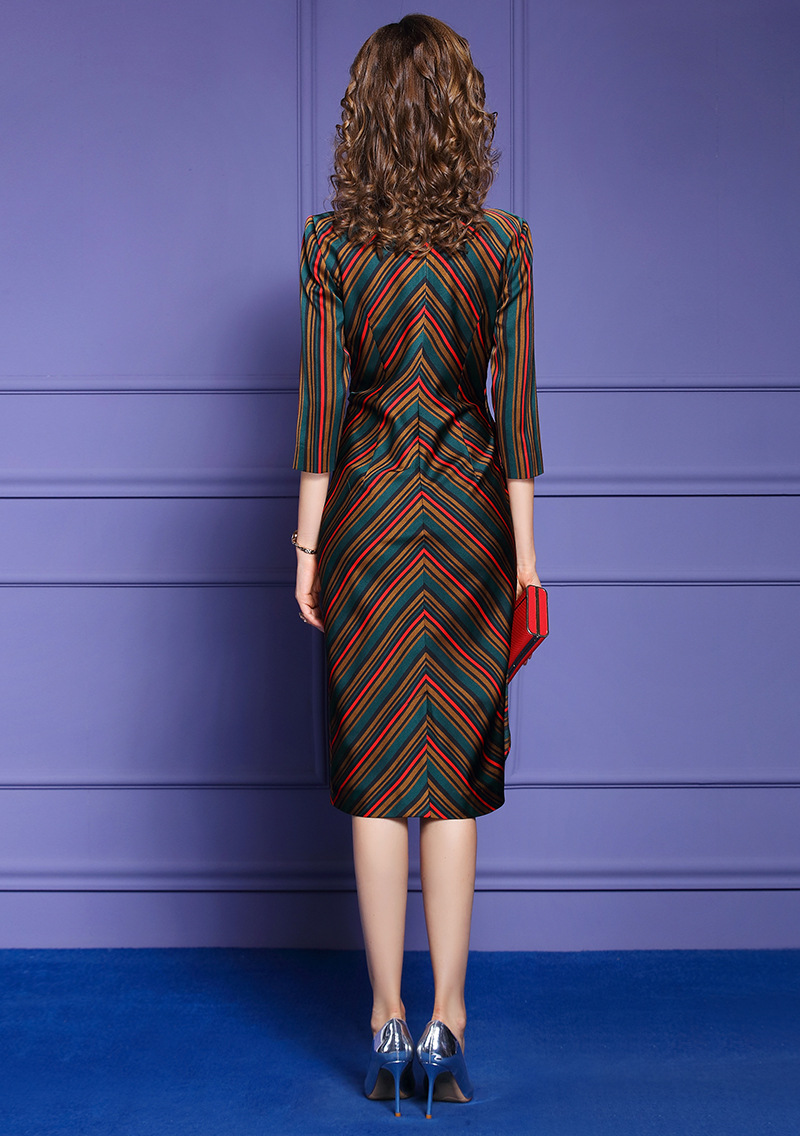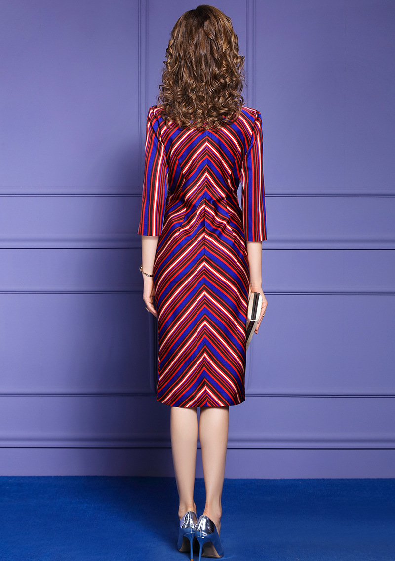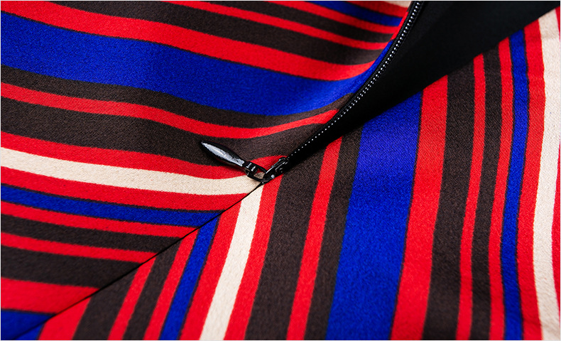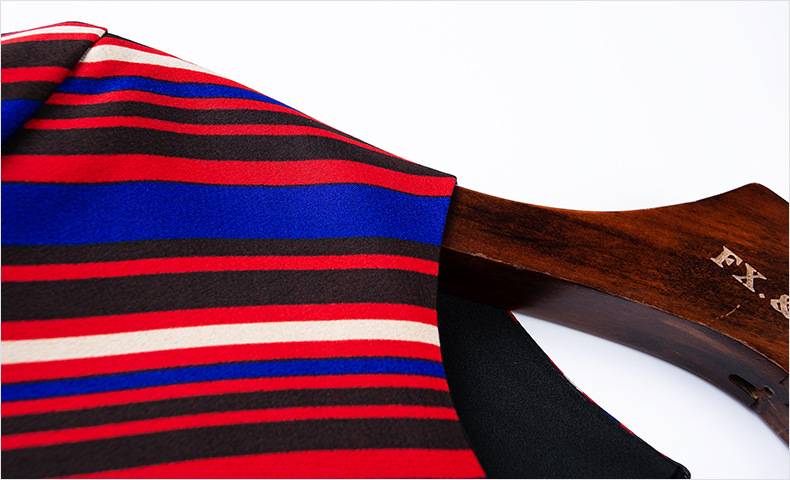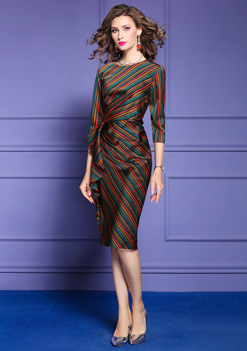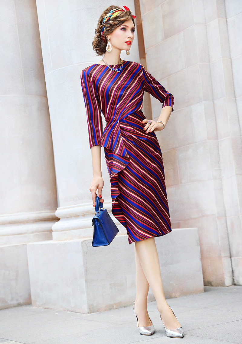 FMY-33498新款时尚名媛气质褶皱收腰圆领条纹连衣裙