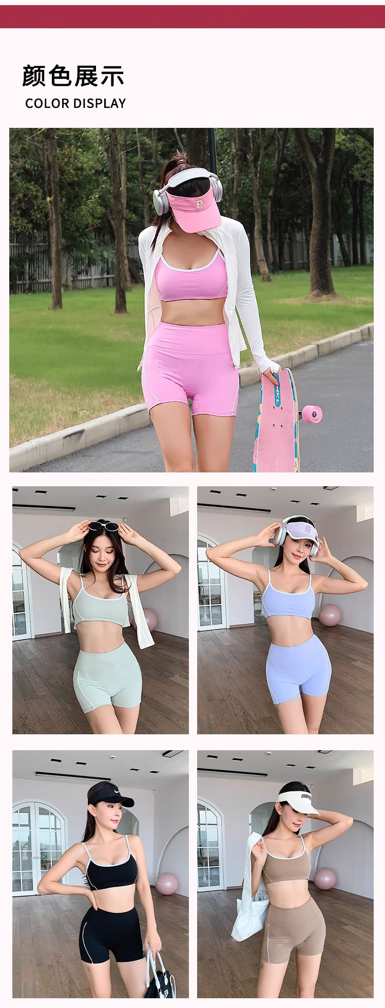 跃牌【安琪拉系列】春夏新款瑜伽服白边线条高强度高腰提臀跑步健身运动短裤DK3416