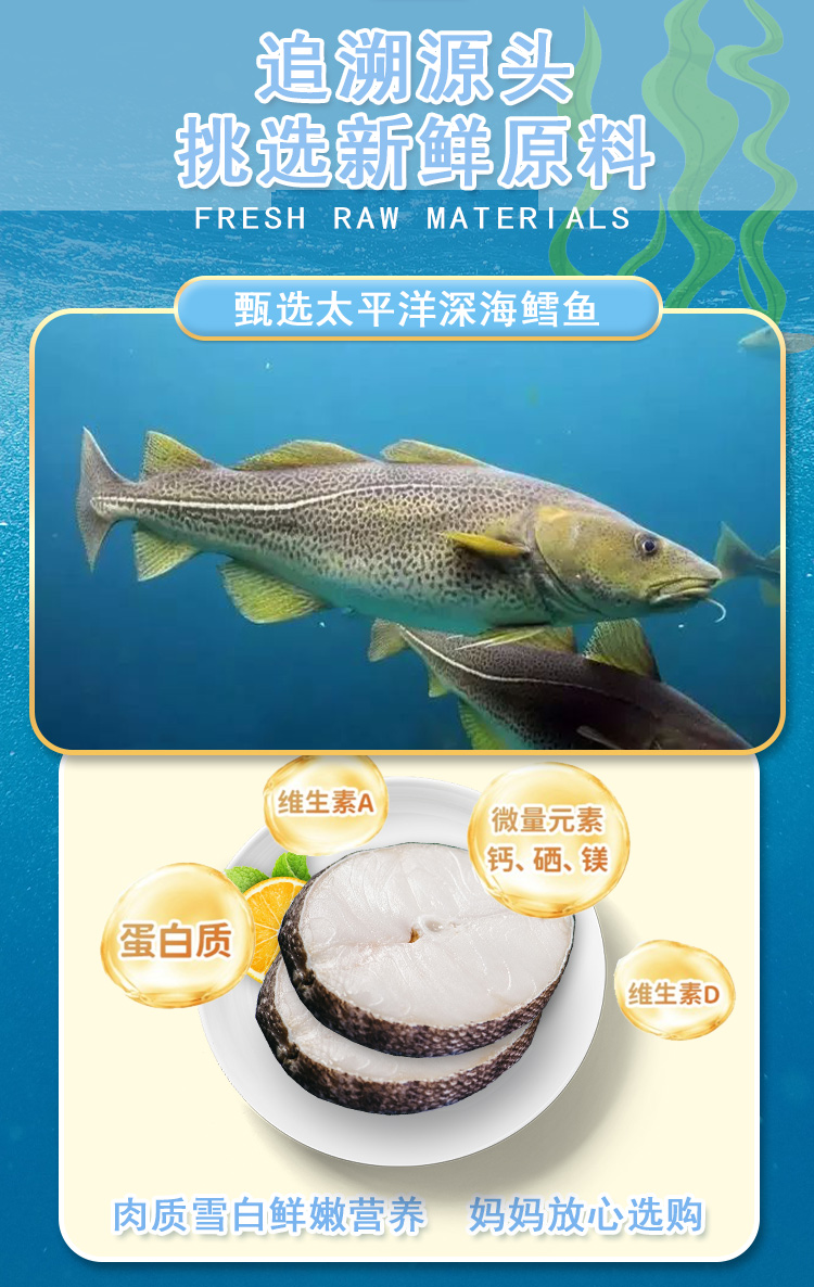 无添加剂,配料干净!采用真鳕鱼——太平洋深海鳕鱼肉,且含量≥75%。