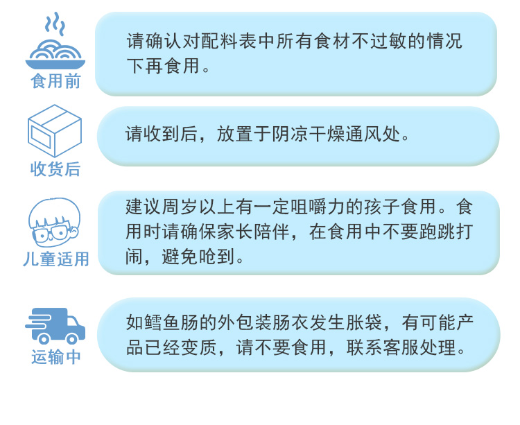 ps:本品含有鱼类、蛋类、乳、大豆及其制品,对它们过敏的宝宝不要食用哦。