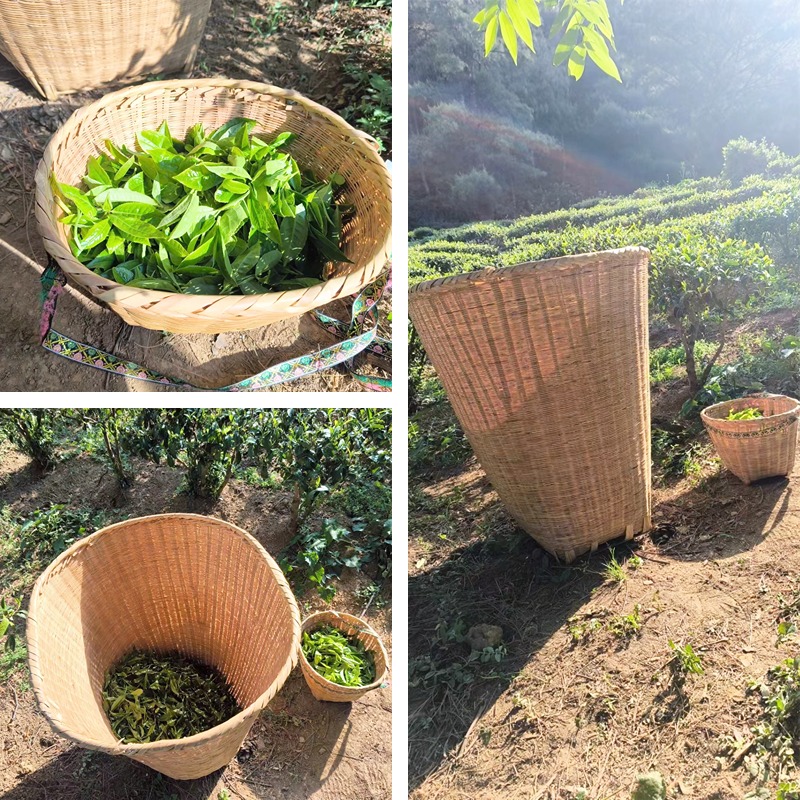 摘好的茶叶被放进洁净的竹筐里,沿着山上的小道,一人一筐背下山。