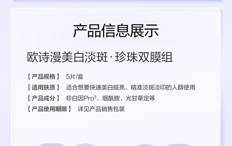 欧诗漫珍珠美白DAN斑面膜 珍白因Pro熬夜去黄暗沉提亮
