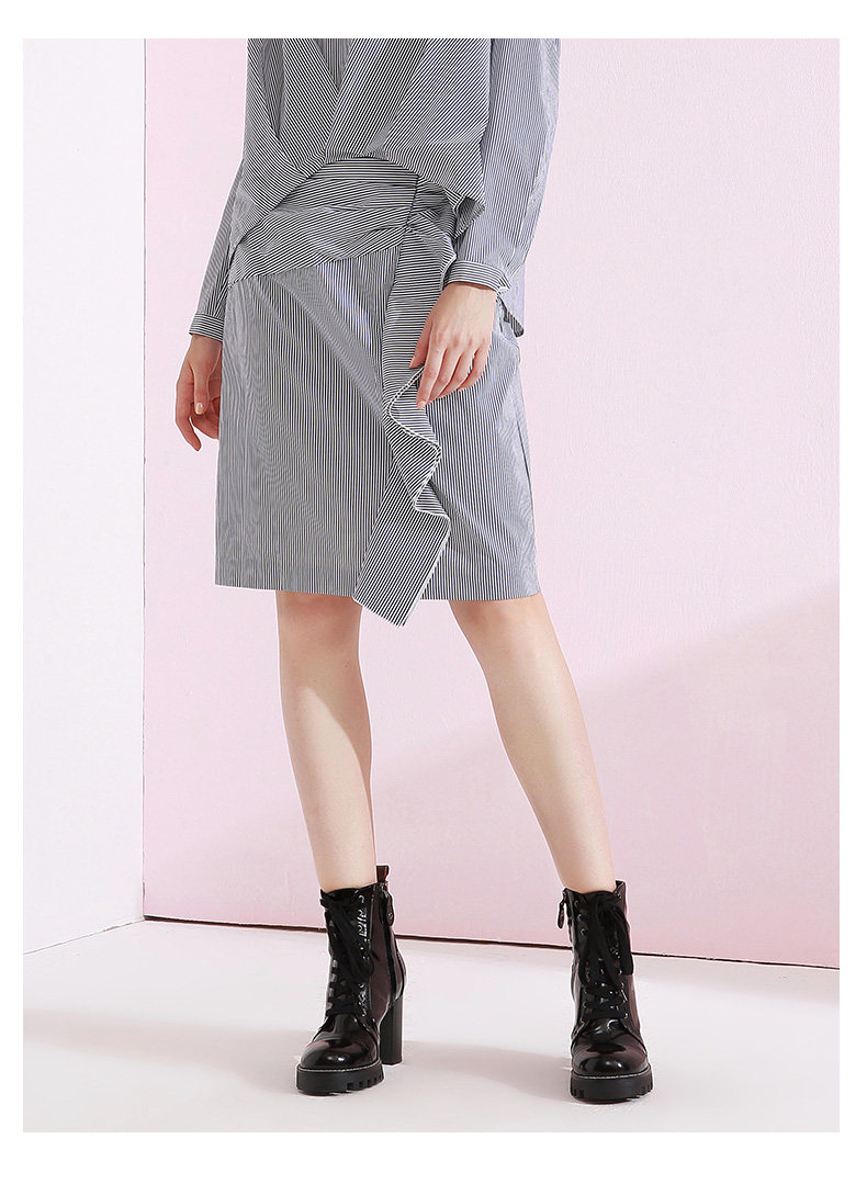 VIMAGE纬漫纪秋季荷叶边不规则裙拼接气质百搭半身裙V1006601