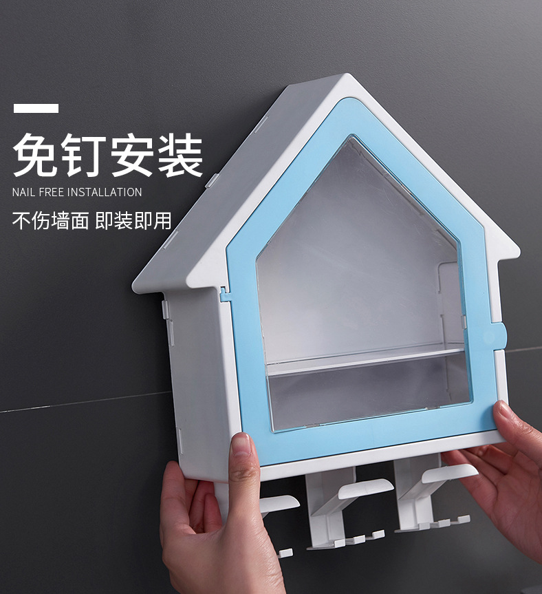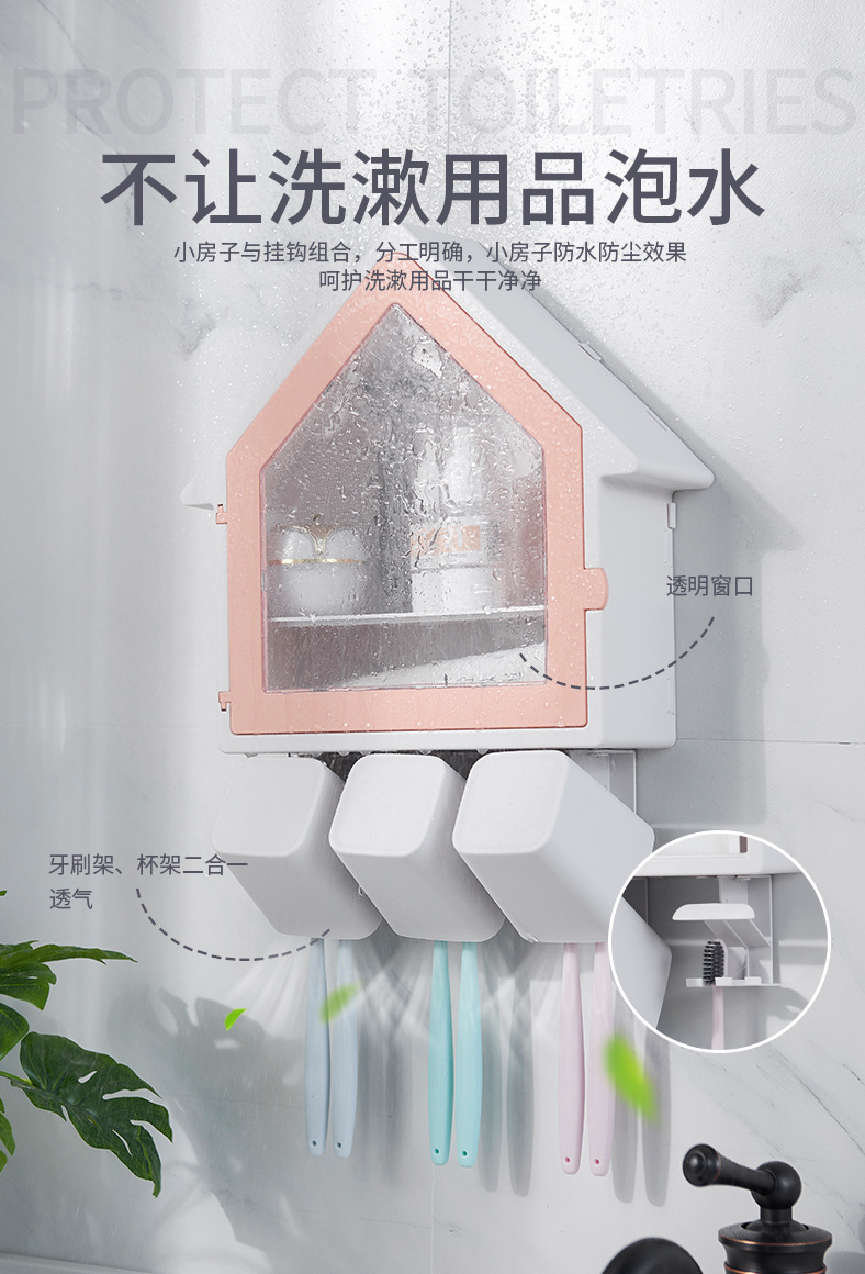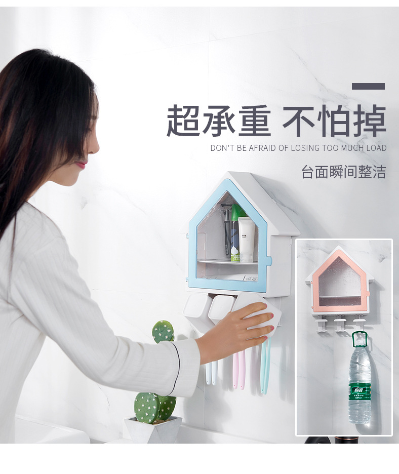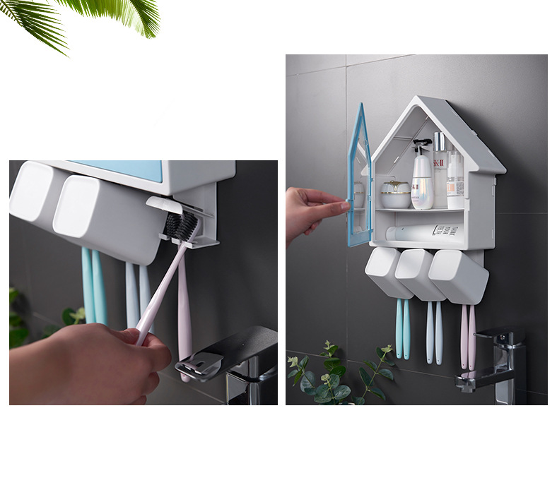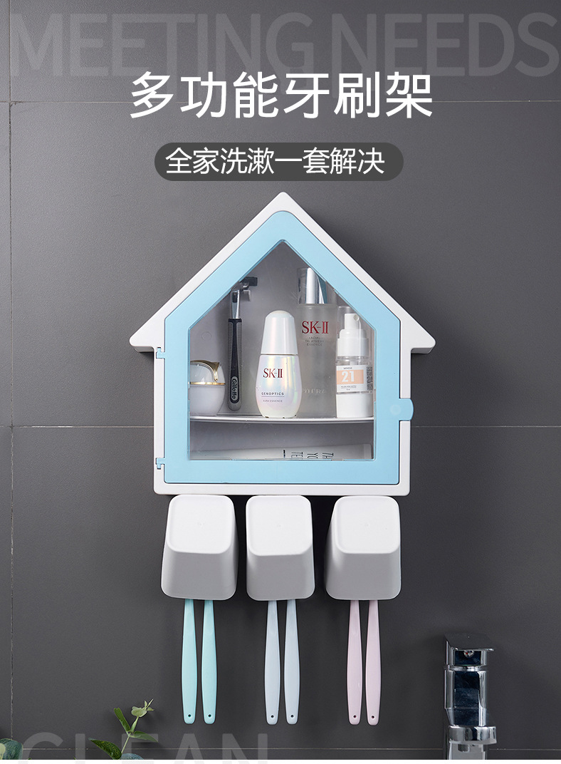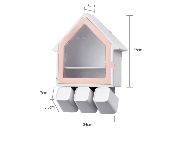 SY-创意壁挂式小房子牙刷架多功能三口之家洗漱杯套装
