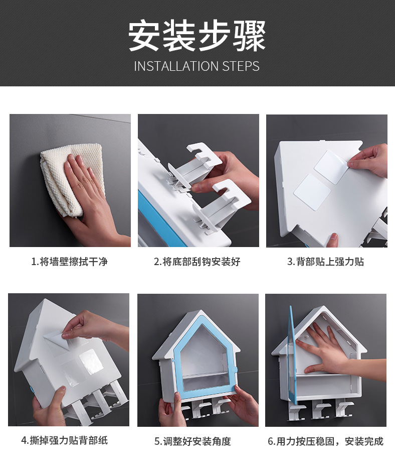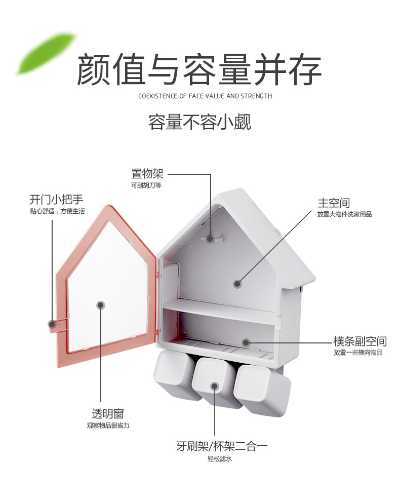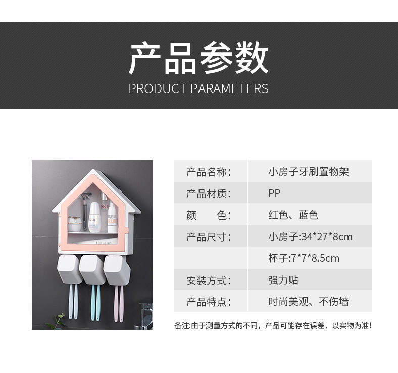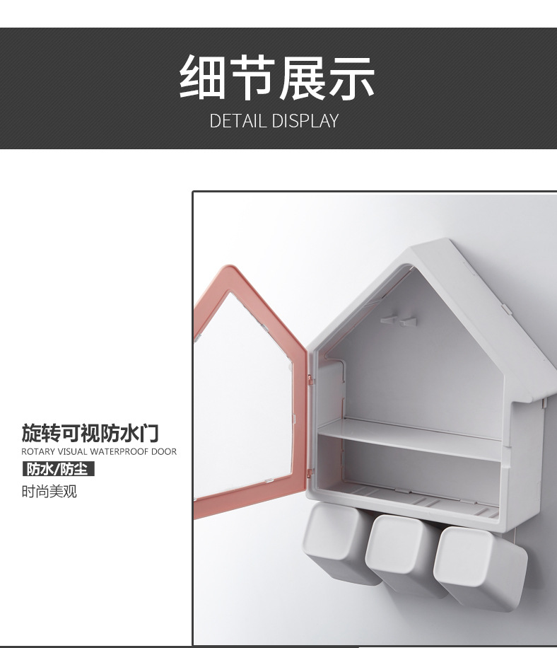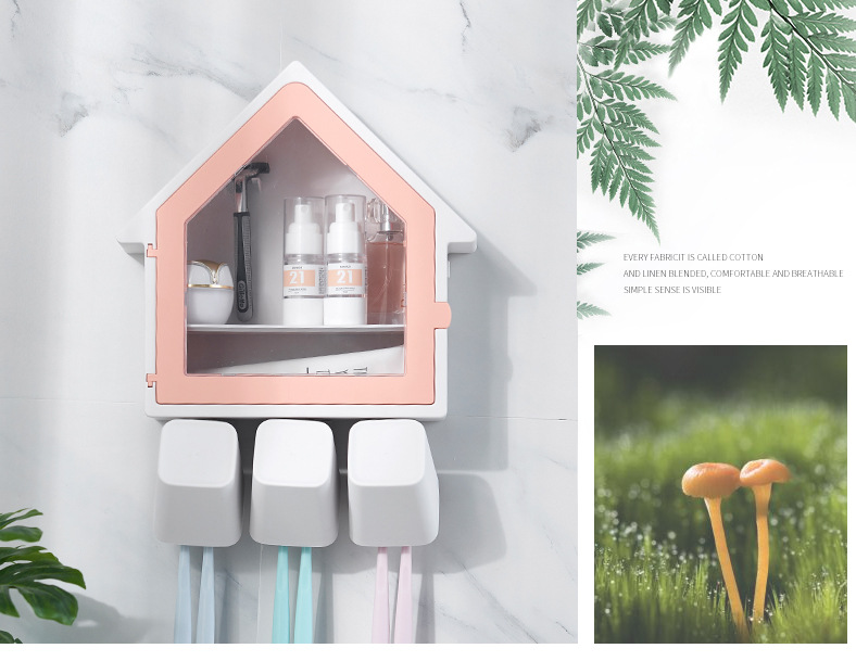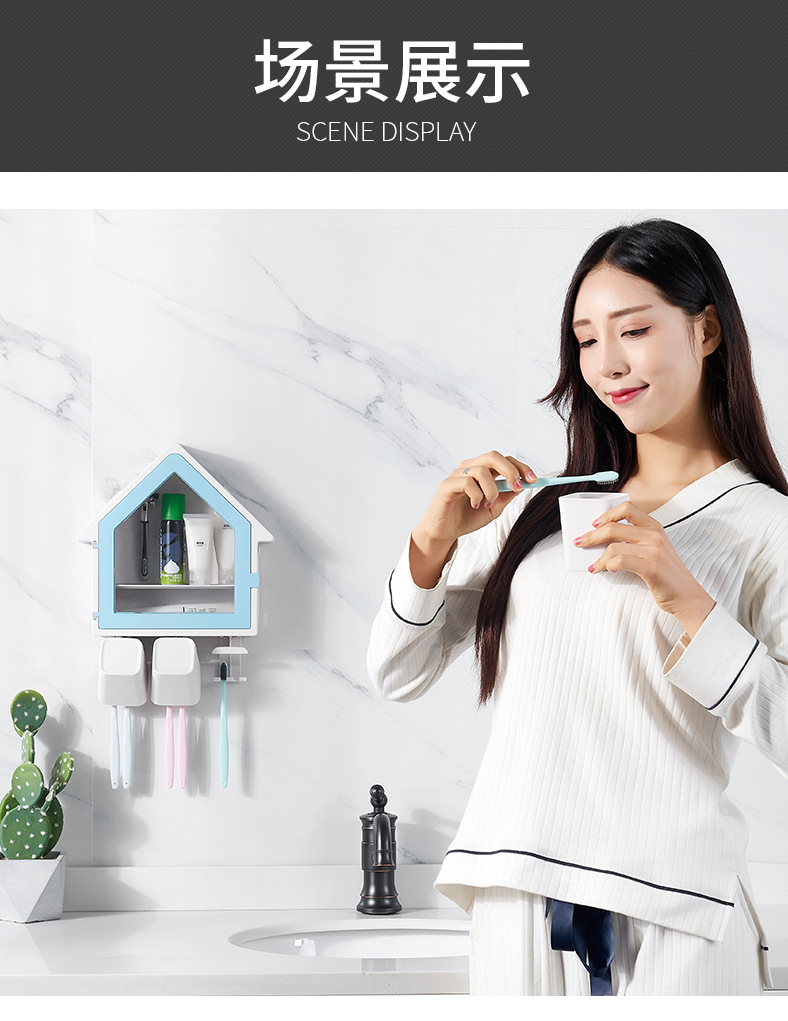 SY-创意壁挂式小房子牙刷架多功能三口之家洗漱杯套装