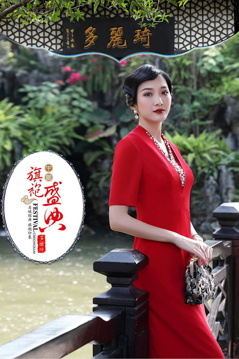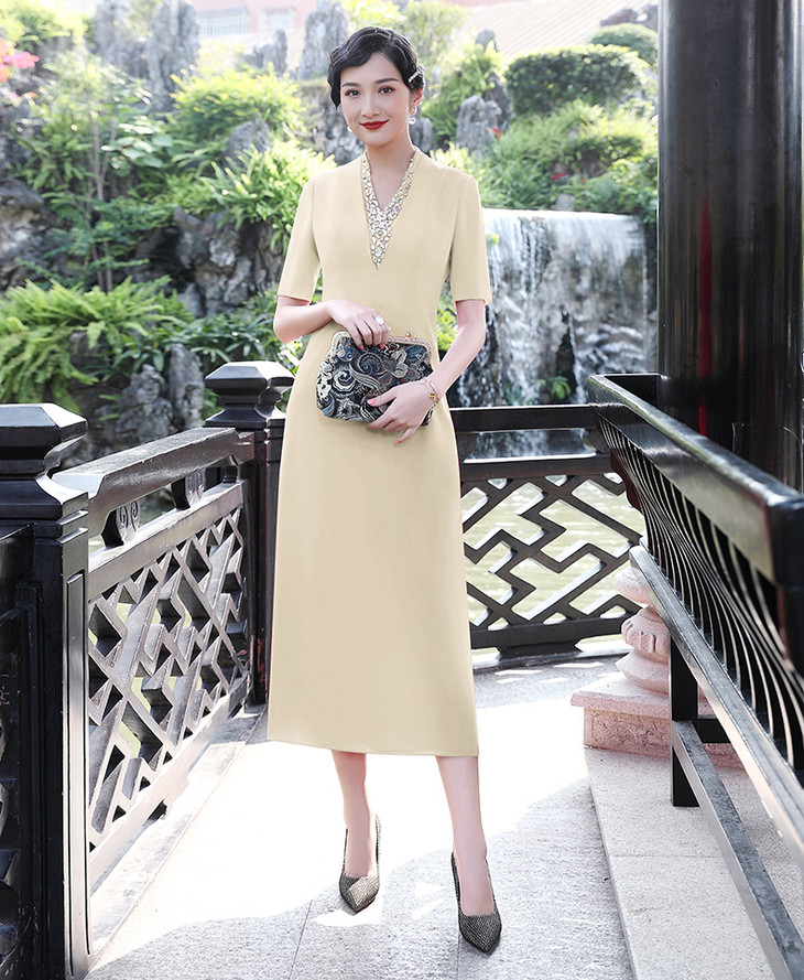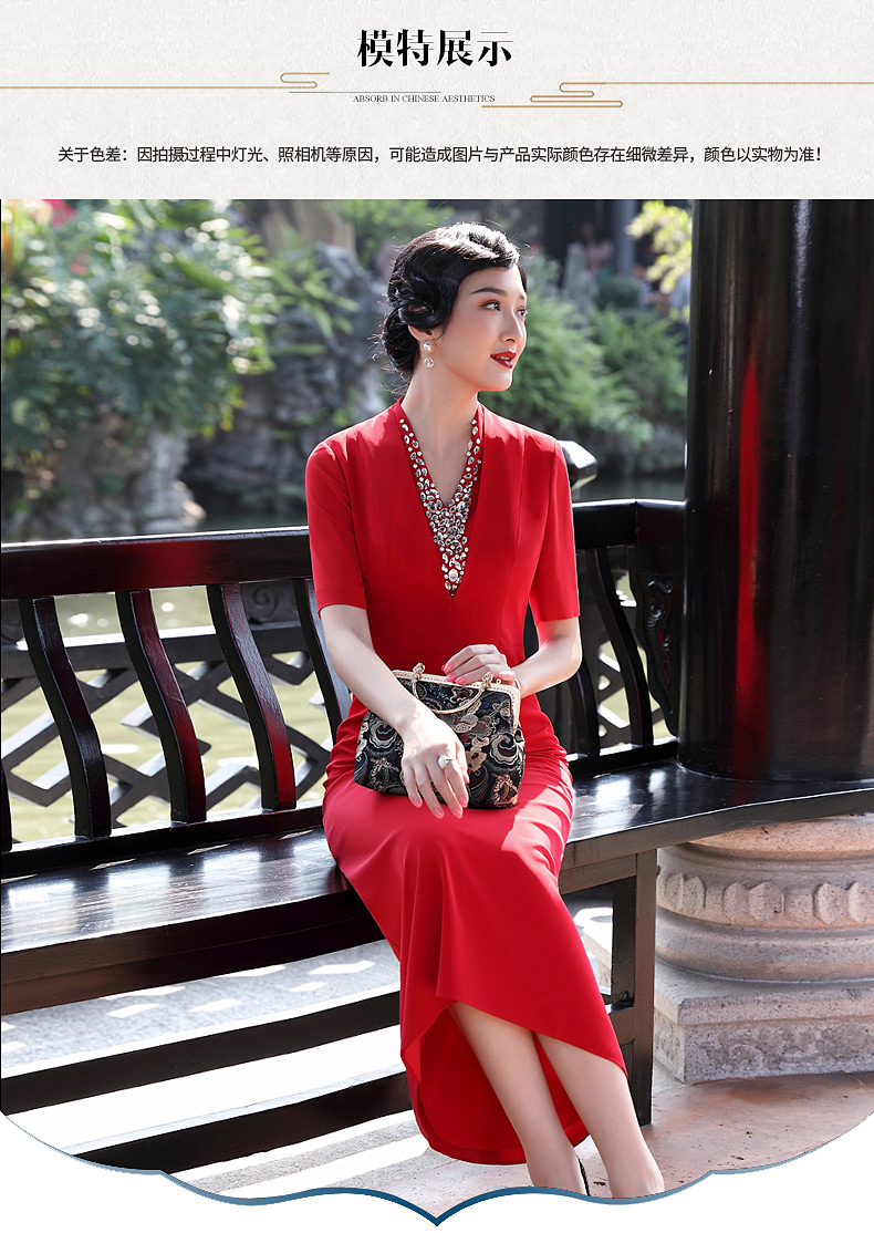 DLQ-A2008新款优雅气质钉珠礼服裙