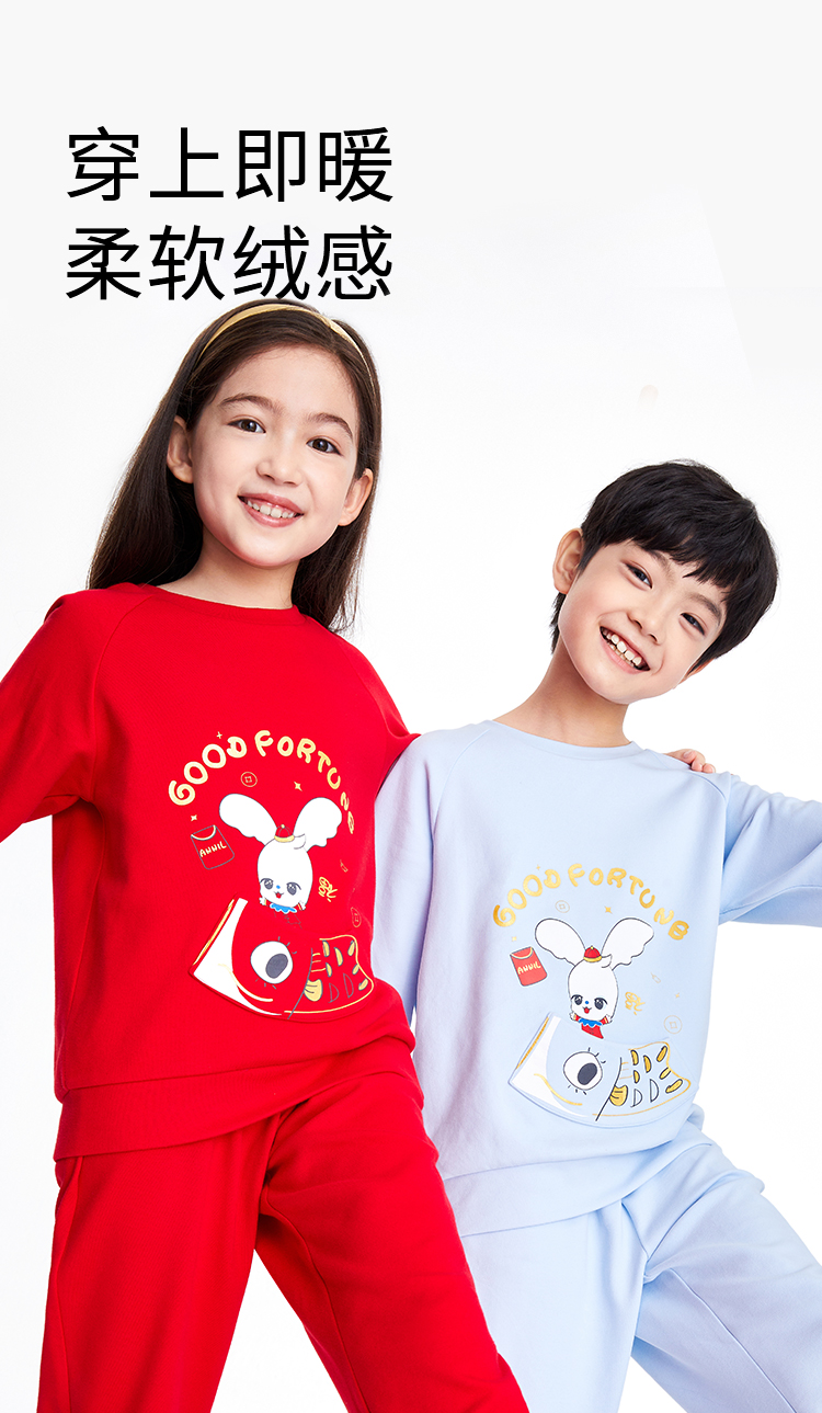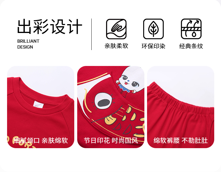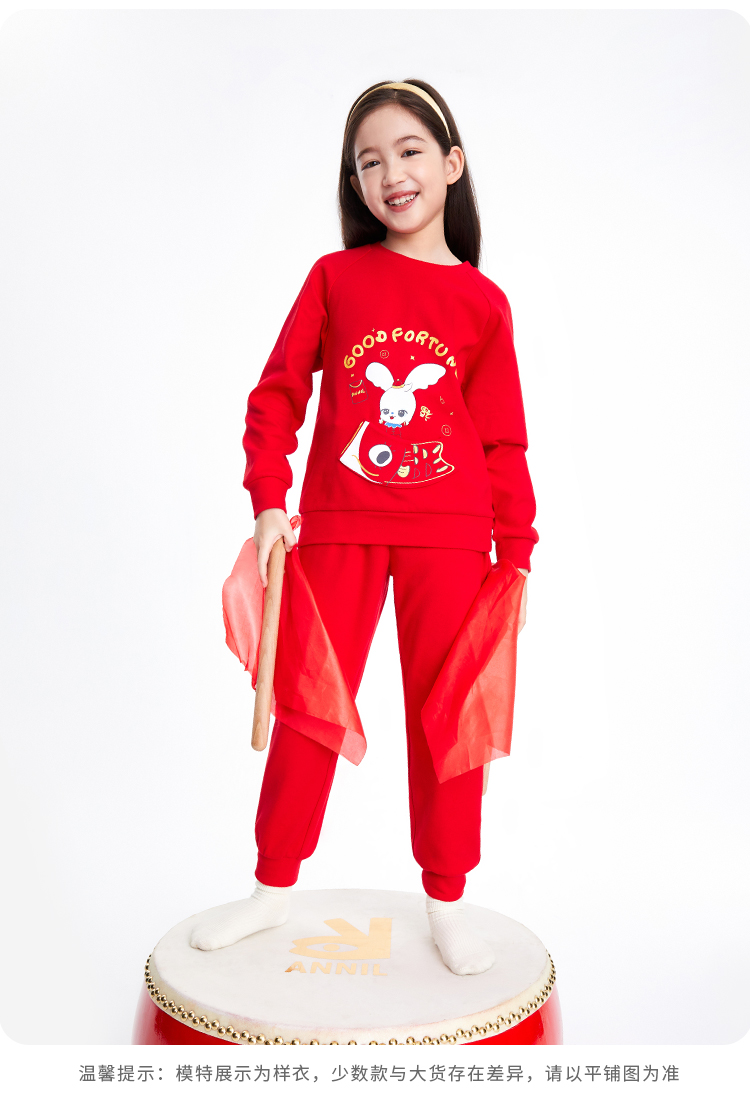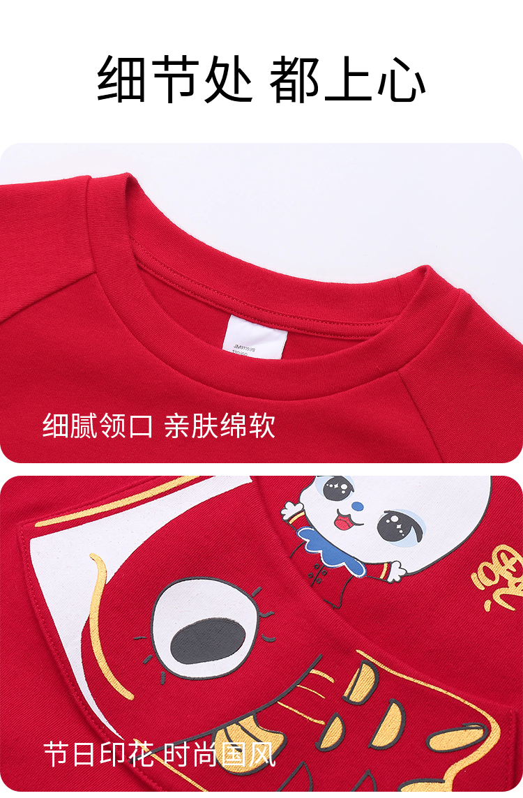 男童女童长袖家居服套装红色拜年服安奈儿童装JM311598